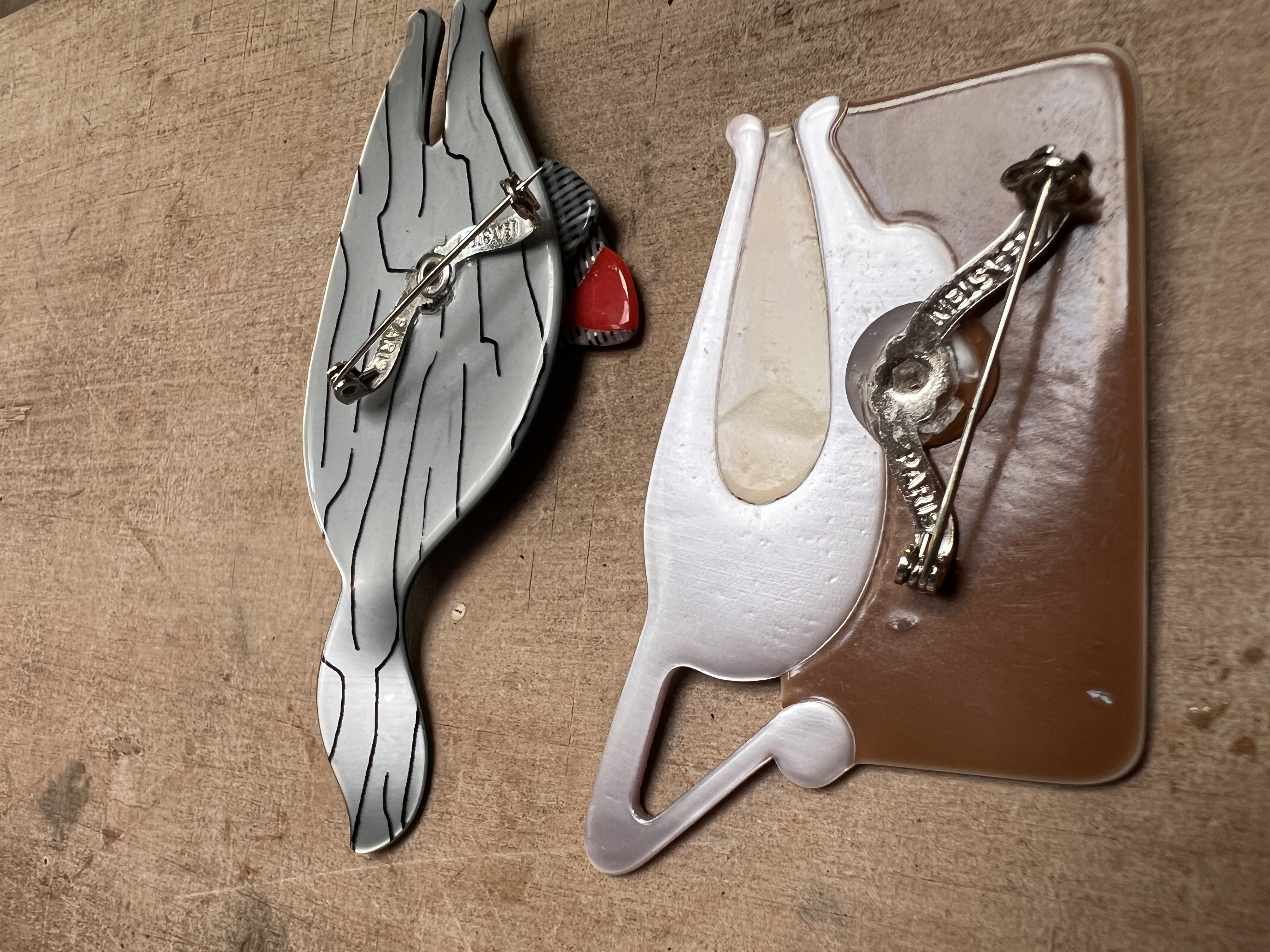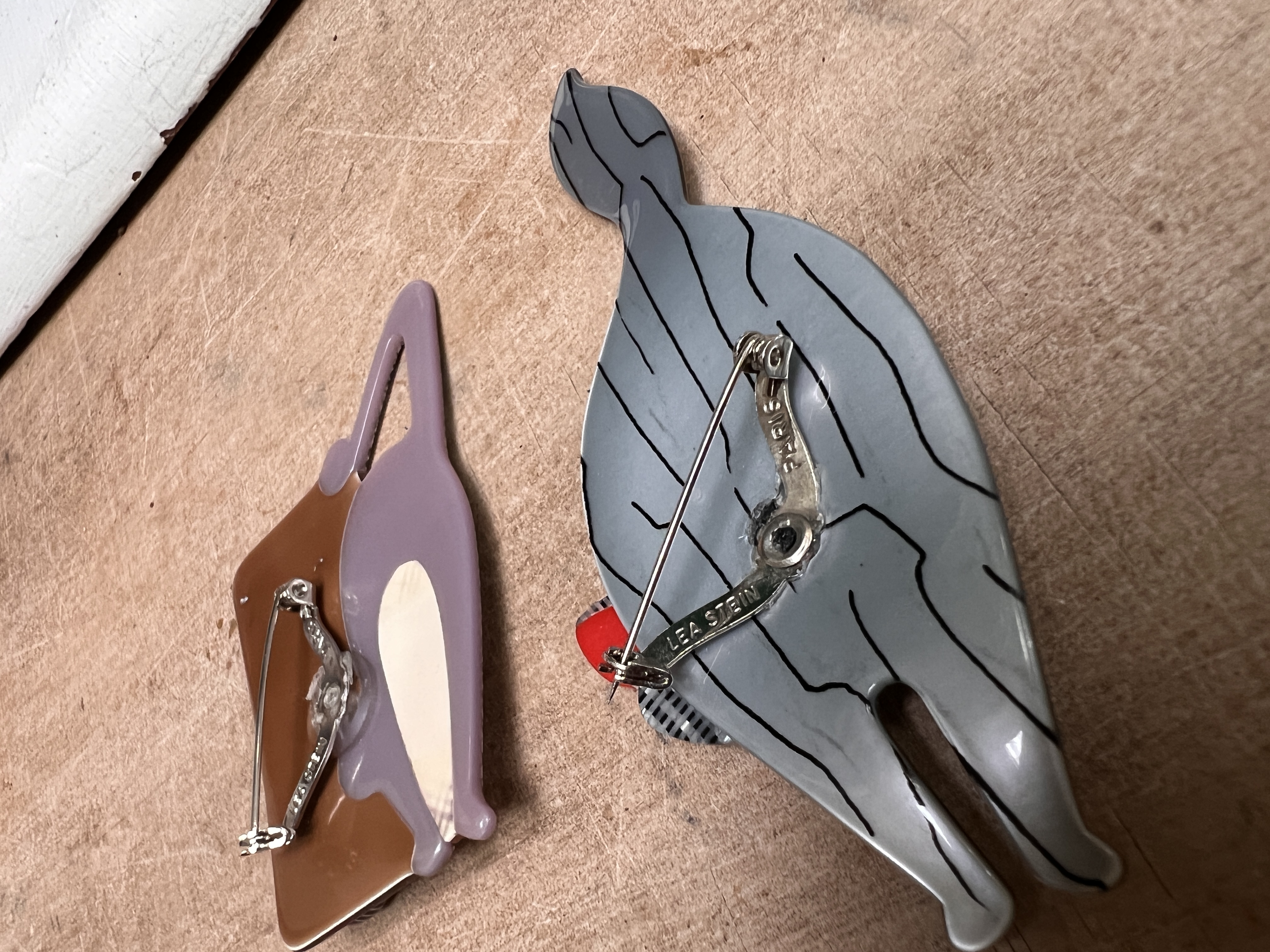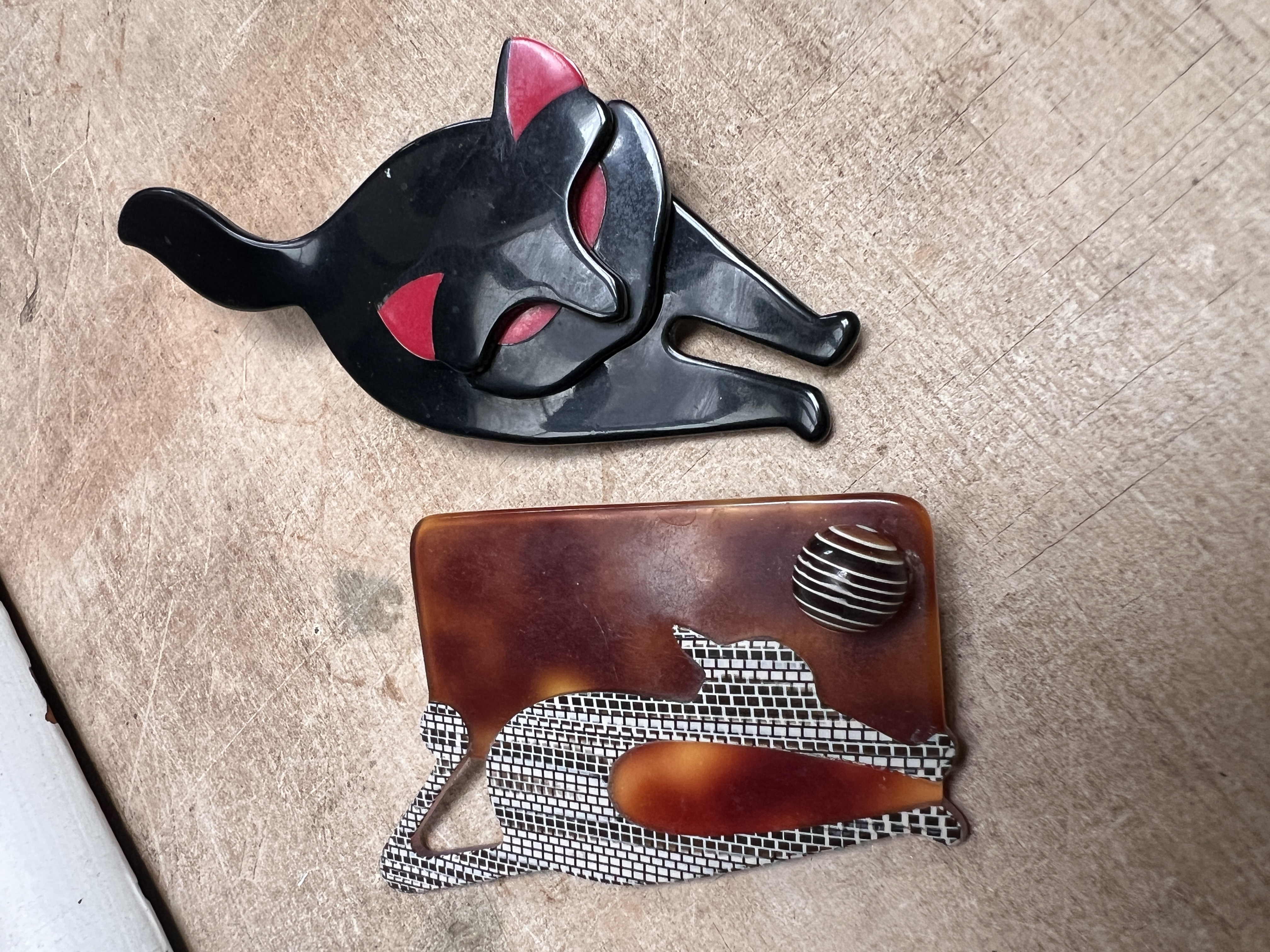 Lot 38: Two Lea Stein Art Deco cat brooches, Paris.