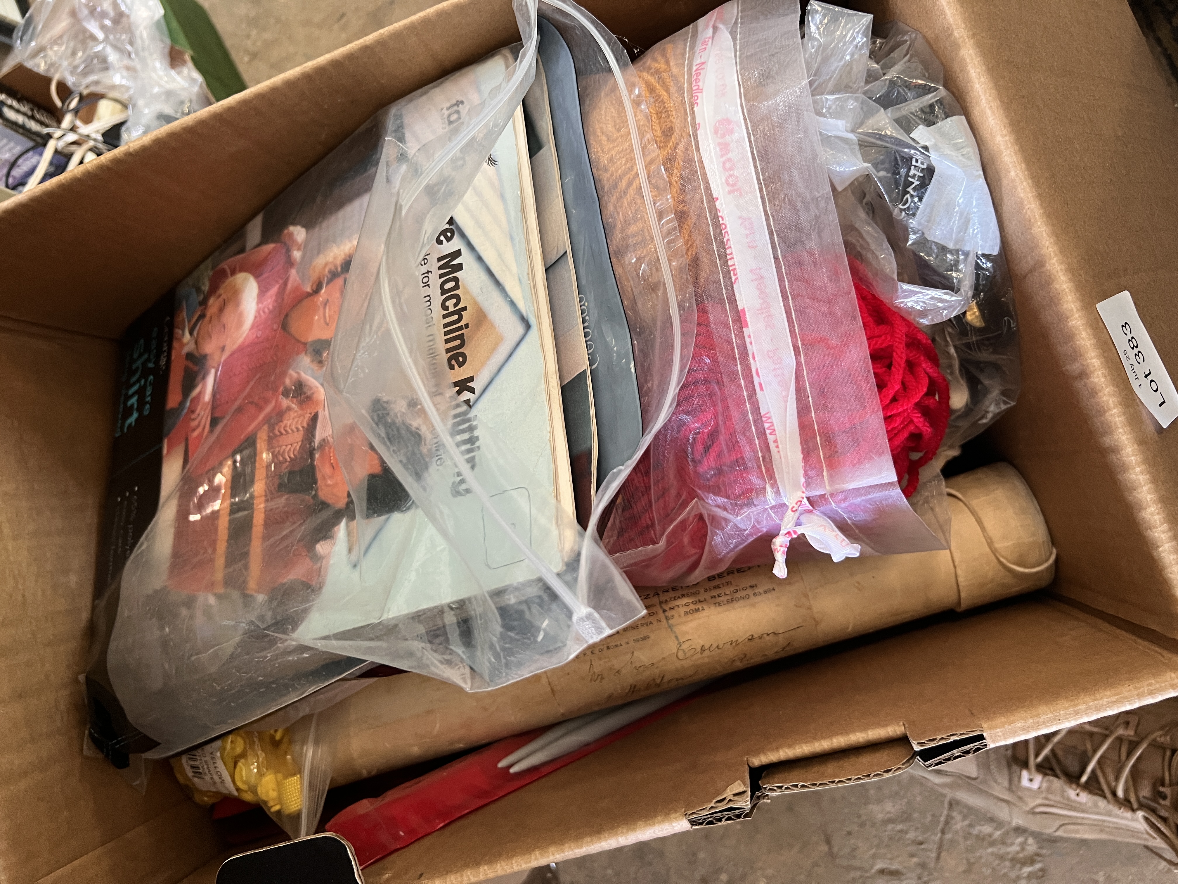 A selection of knitting and sewing accessories.