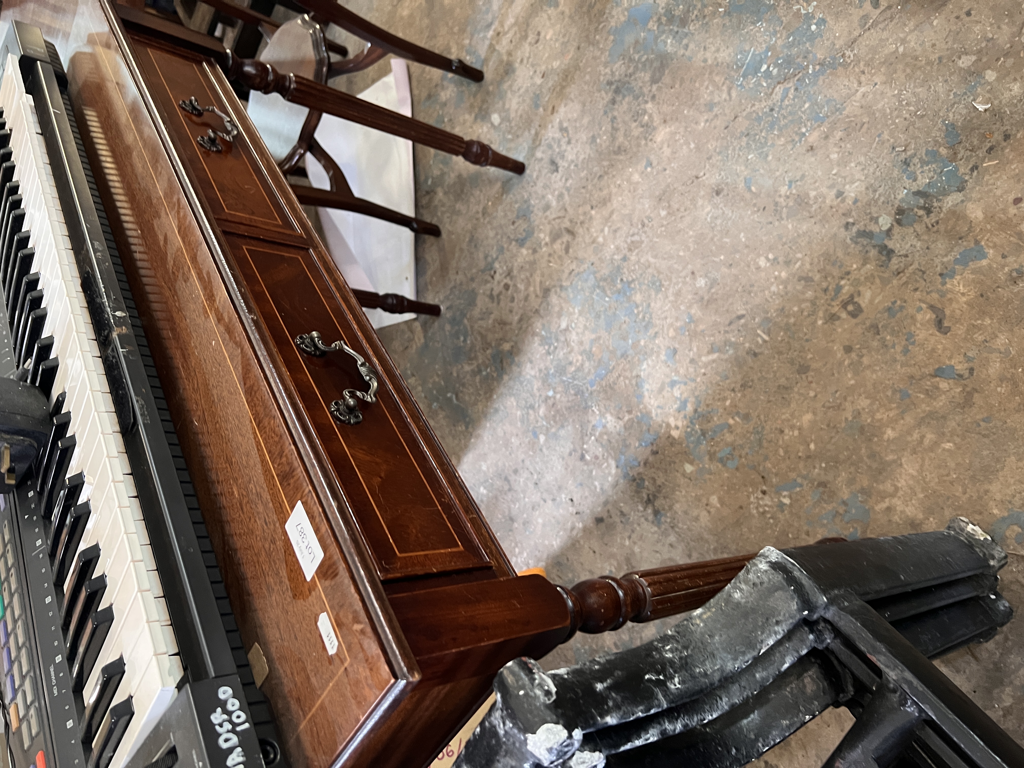A reproduction console table. 75m tall, 100cm wide, 42cm deep.