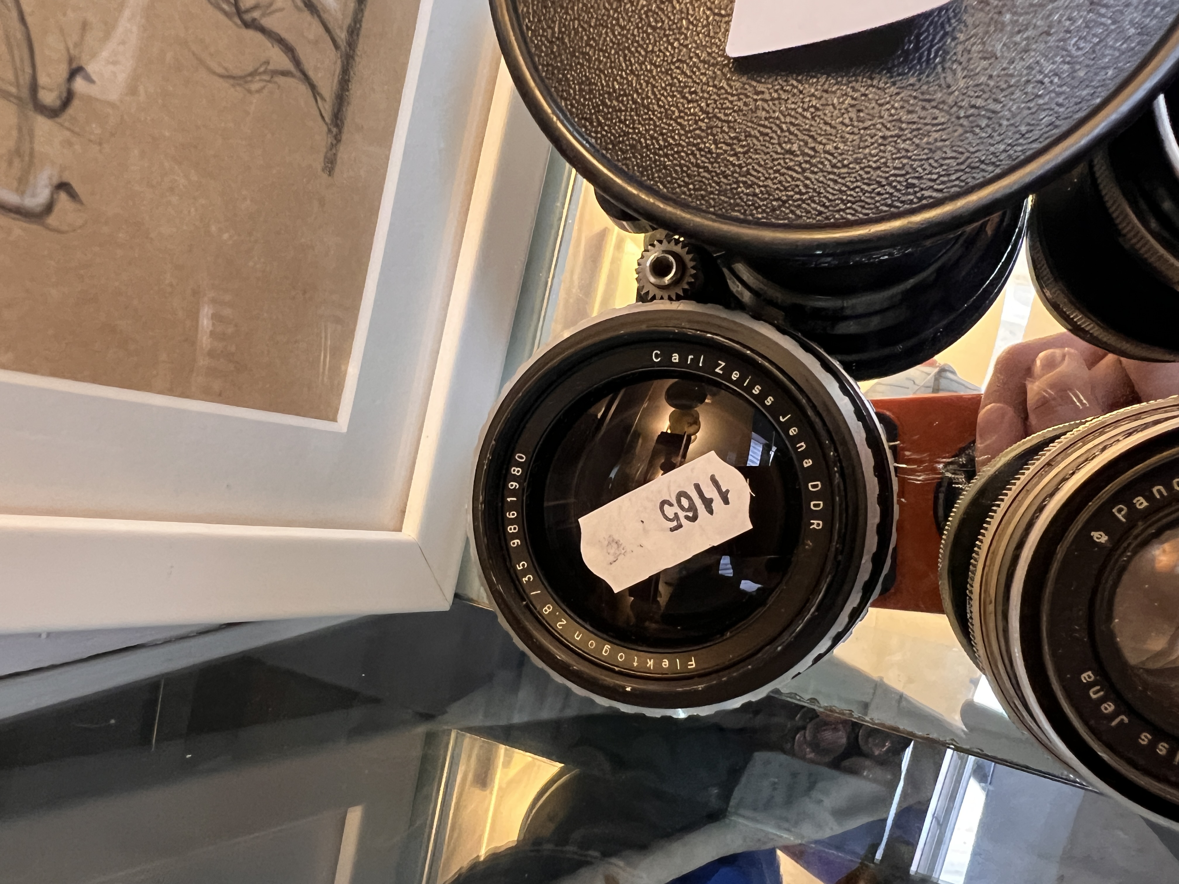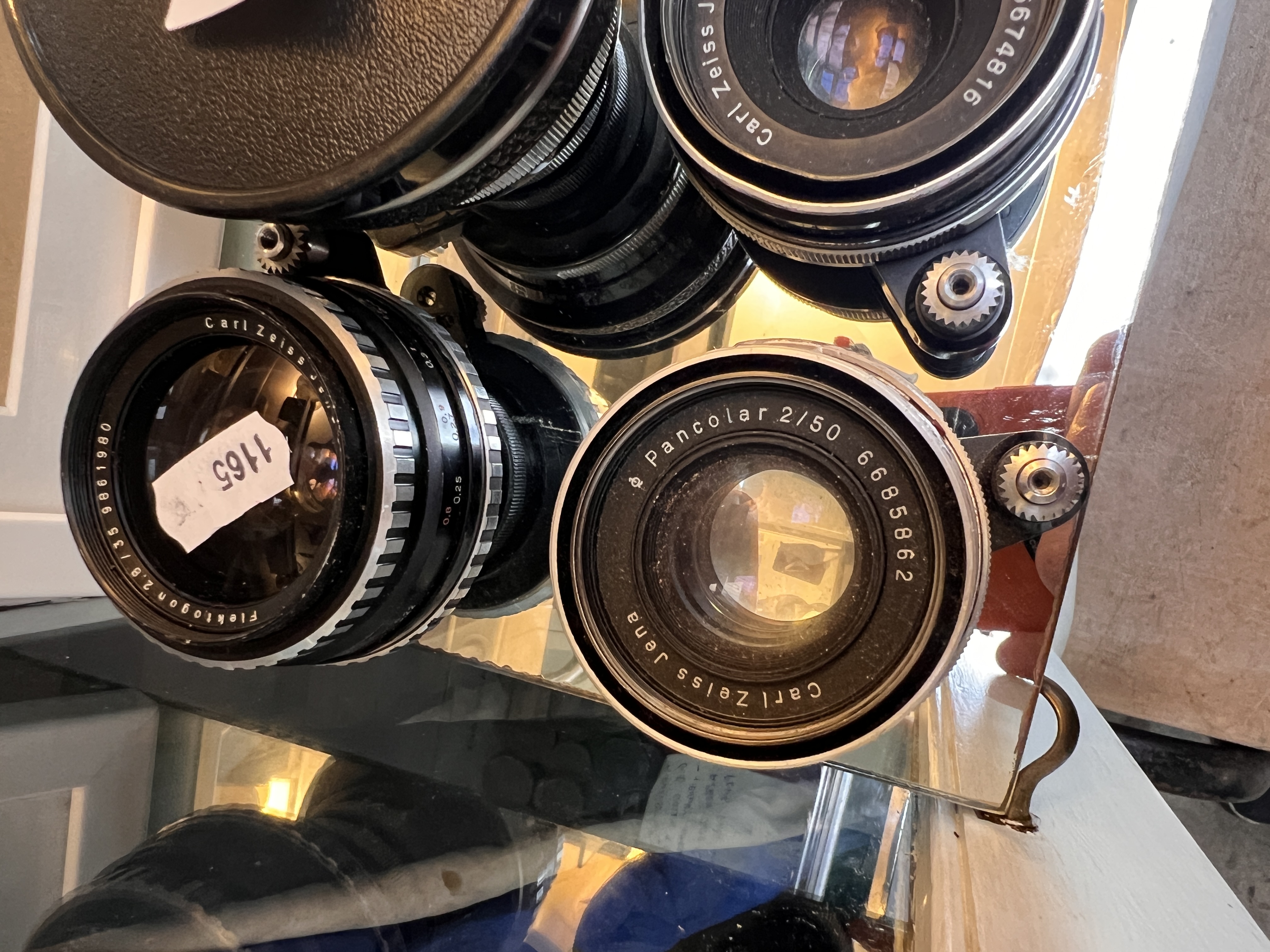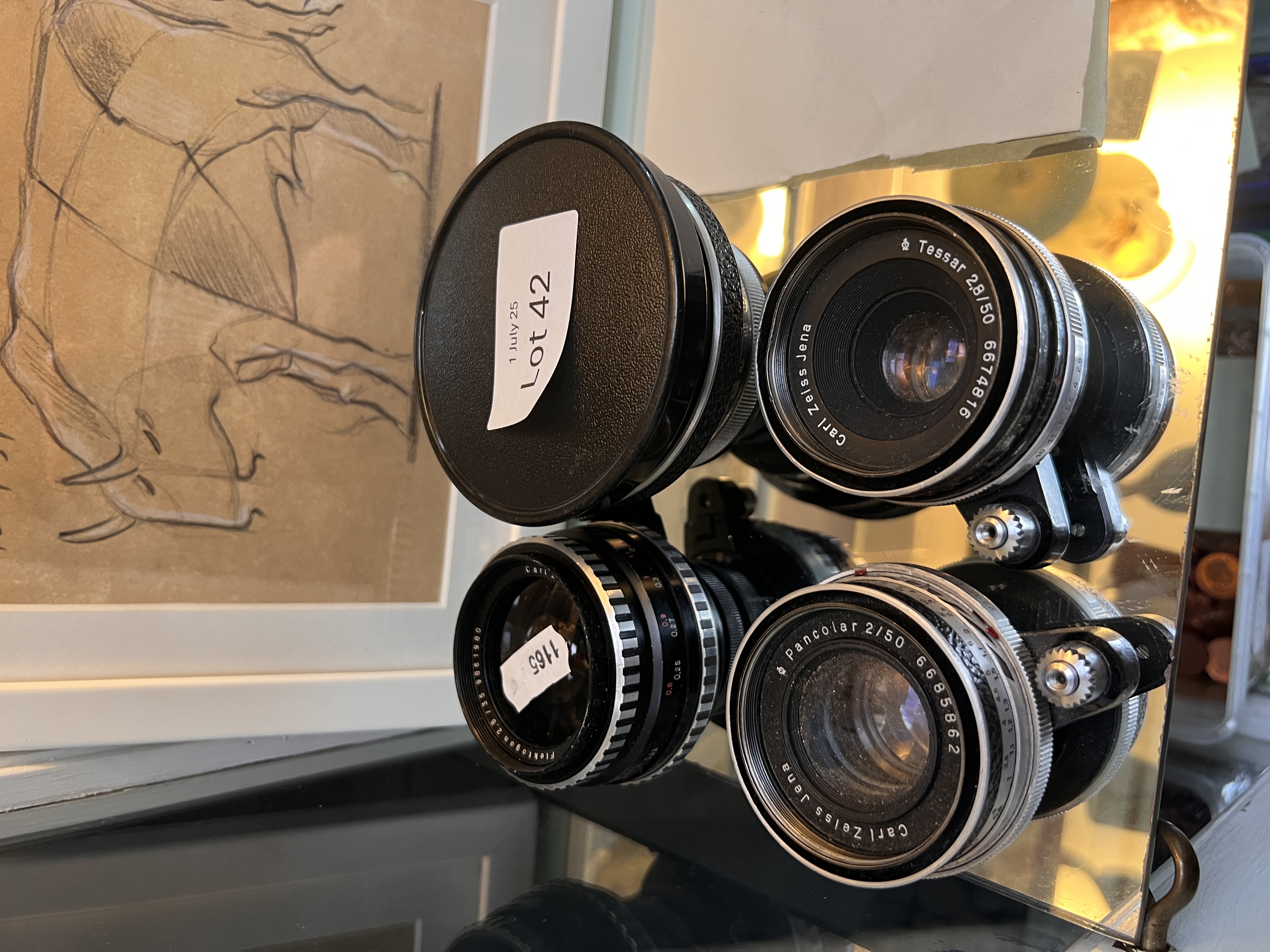 Four Carl Zeiss Jenna photographic camera lens. Tessar, Pancolar, Flektogon.