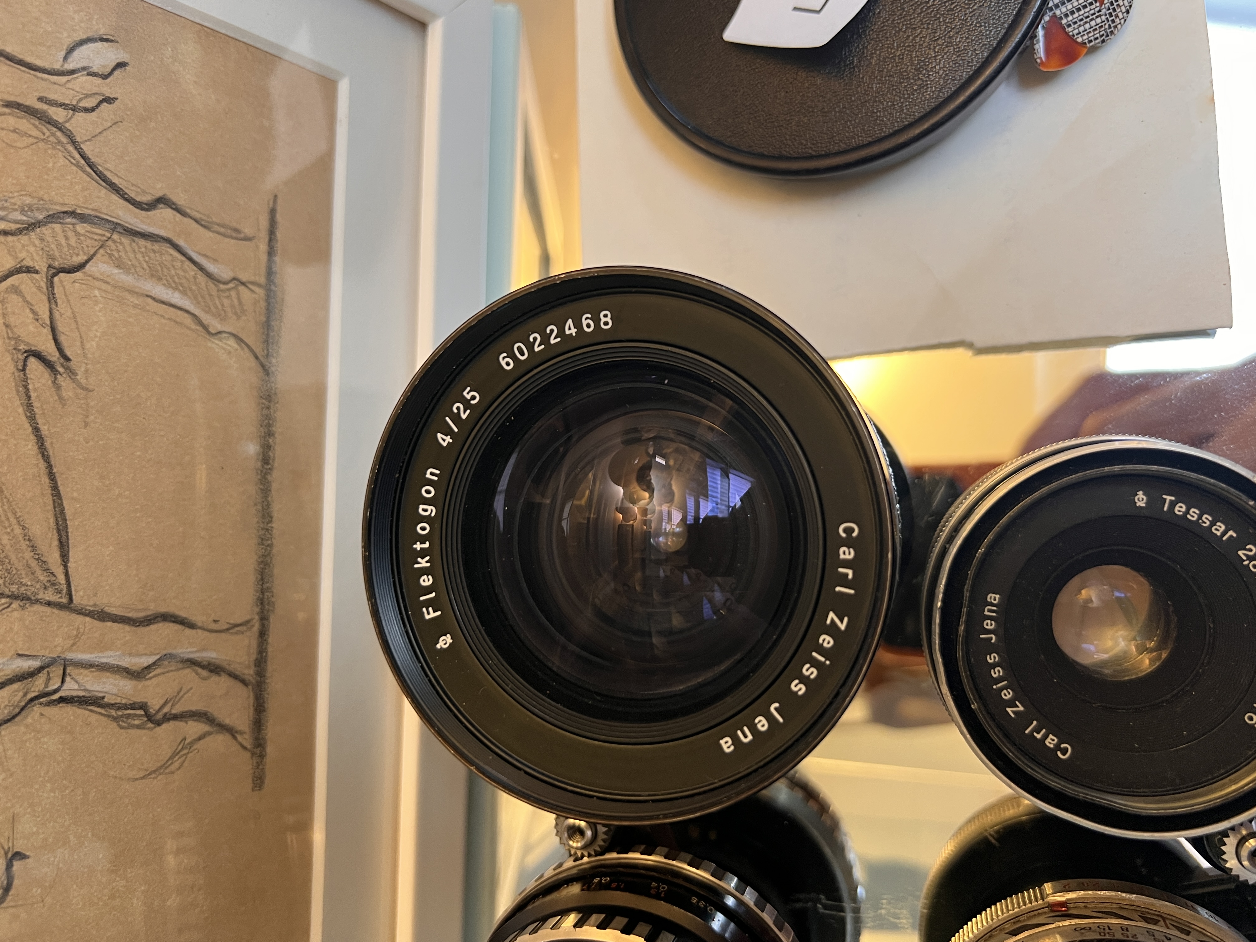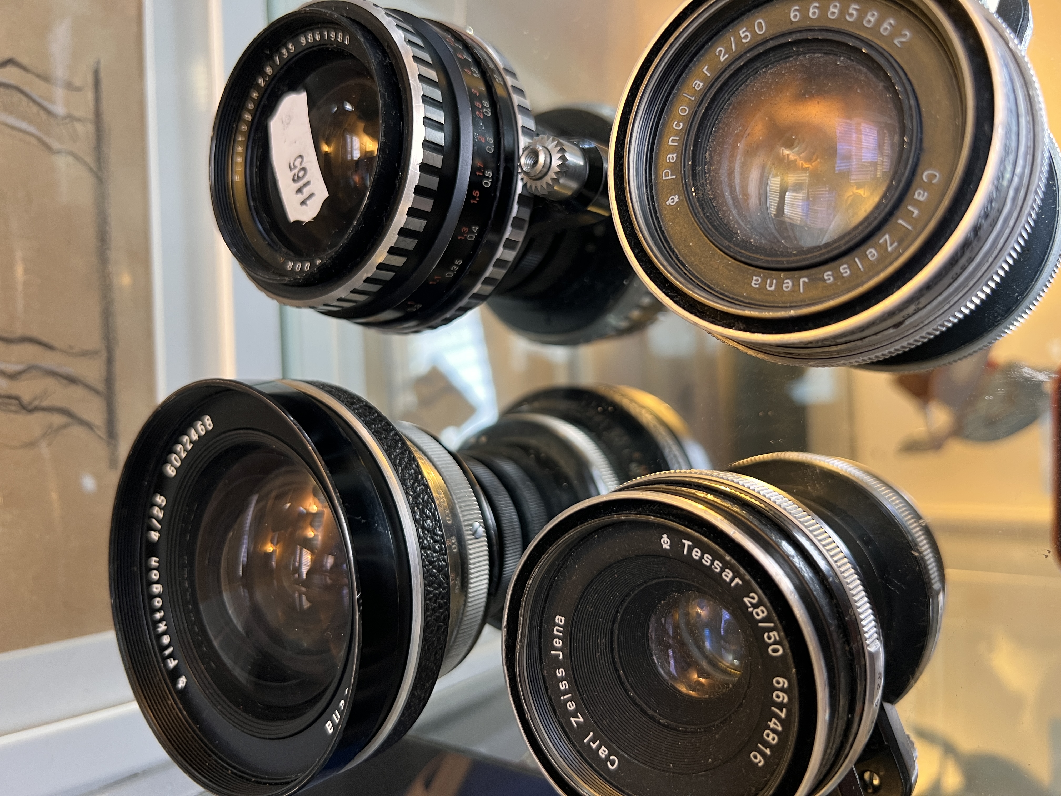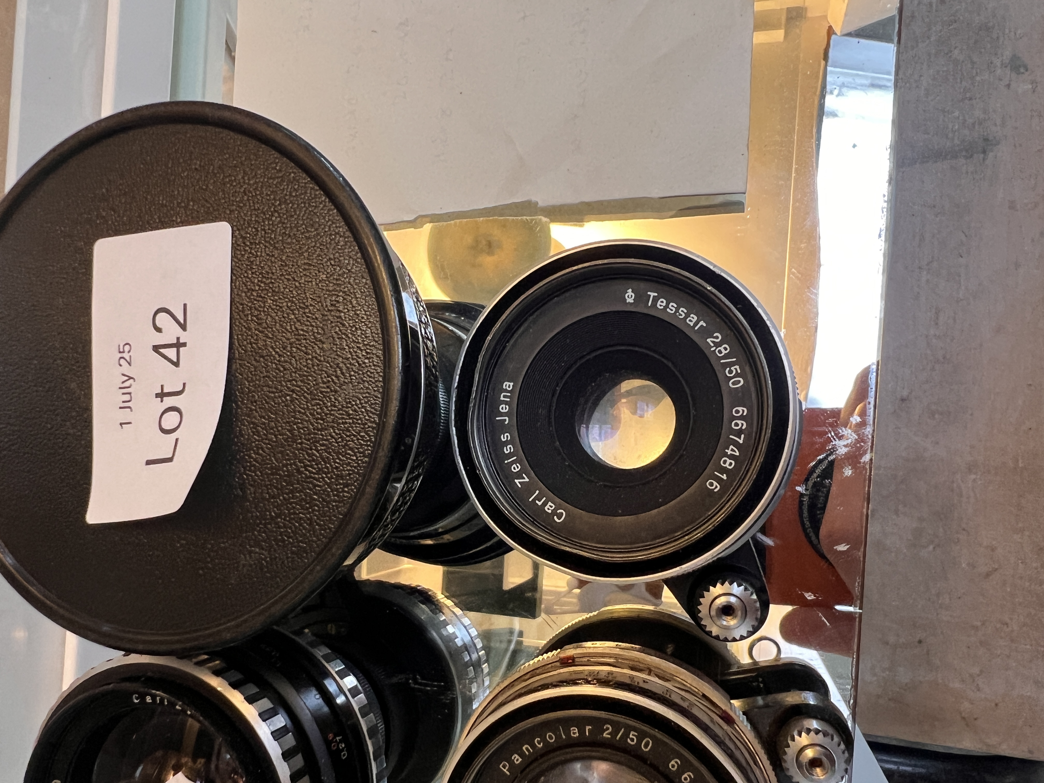 Four Carl Zeiss Jenna photographic camera lens. Tessar, Pancolar, Flektogon.