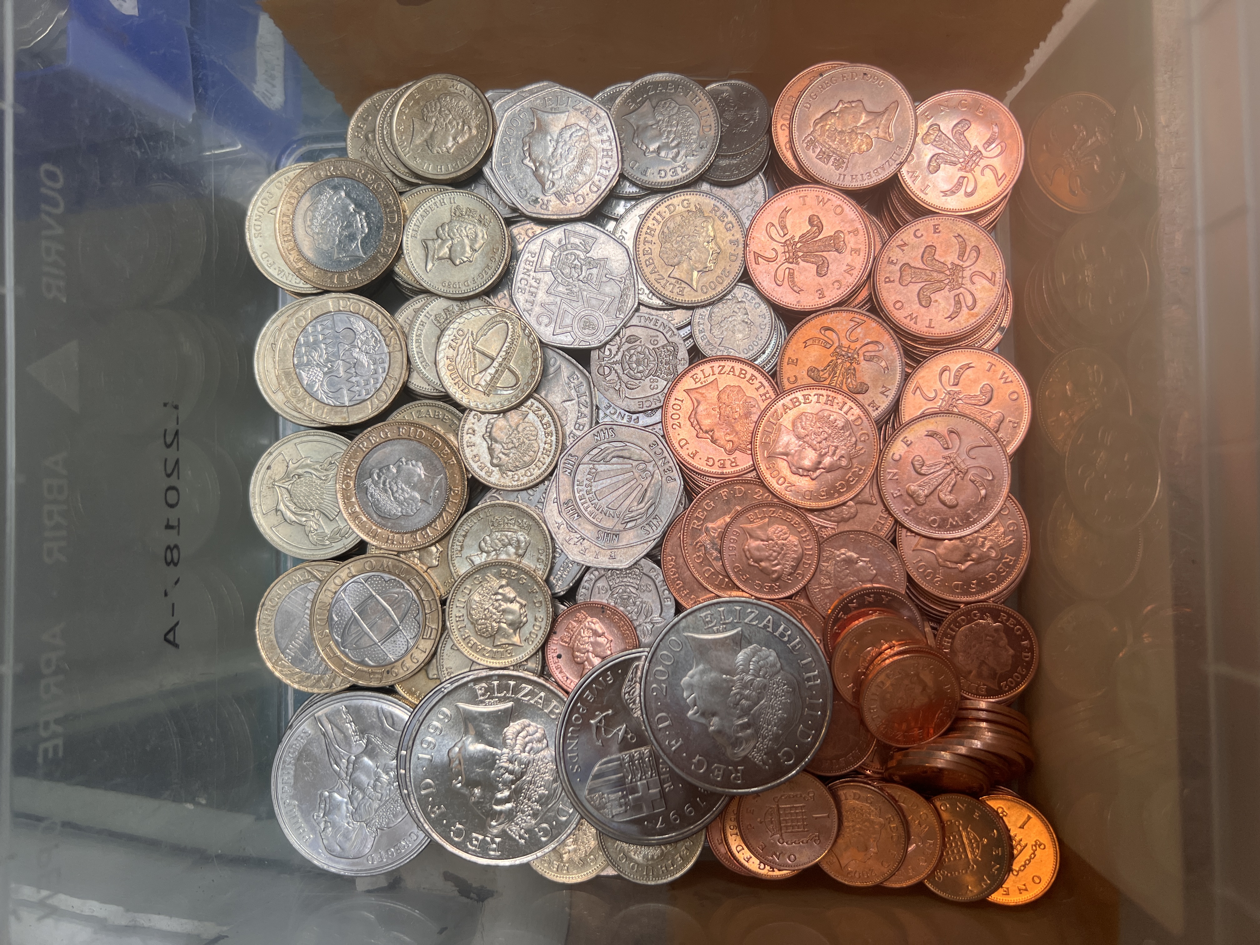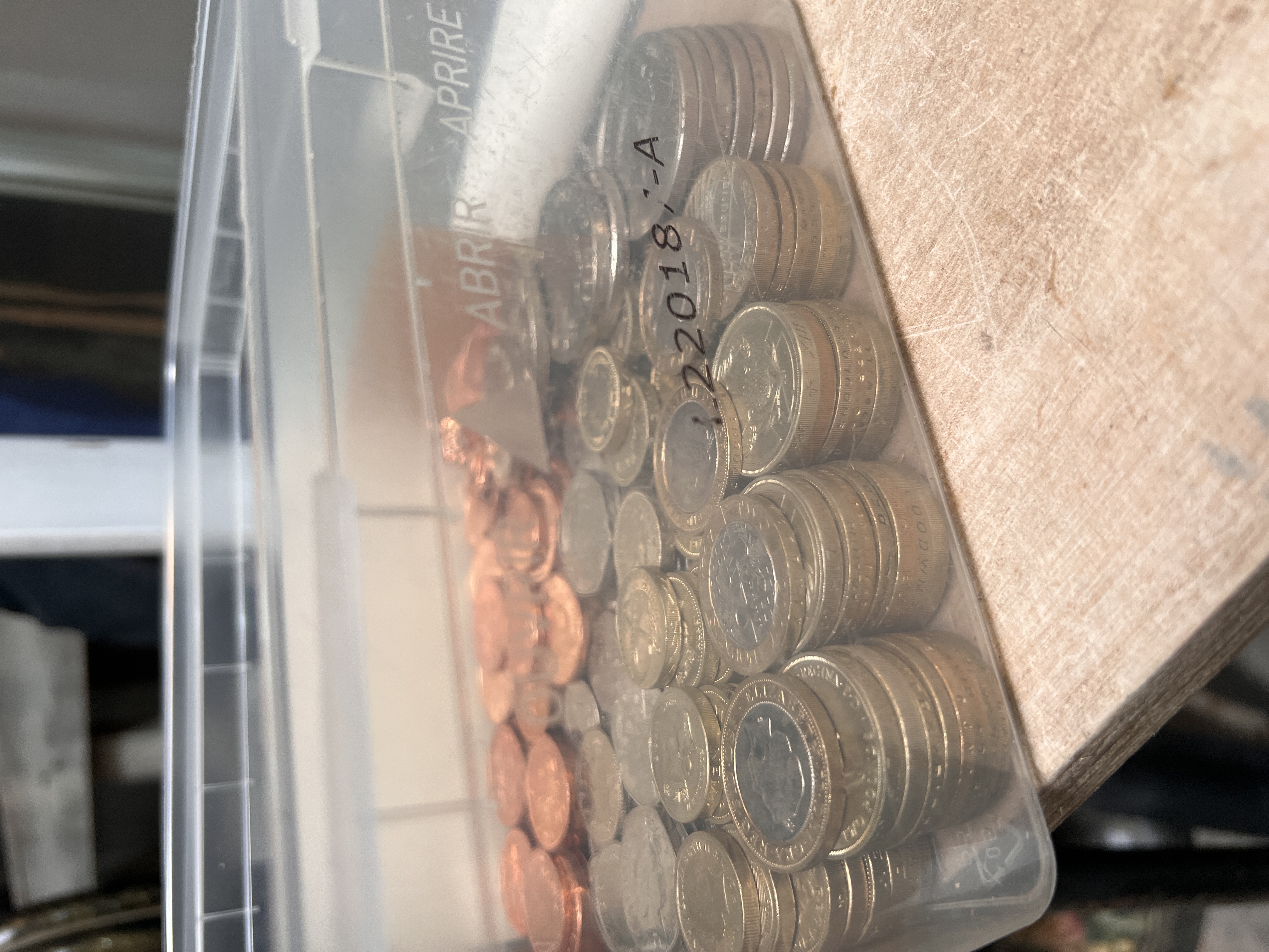 A large selection of current collectable UK coins and currency, including 50 pence. Aprox £200 face value.