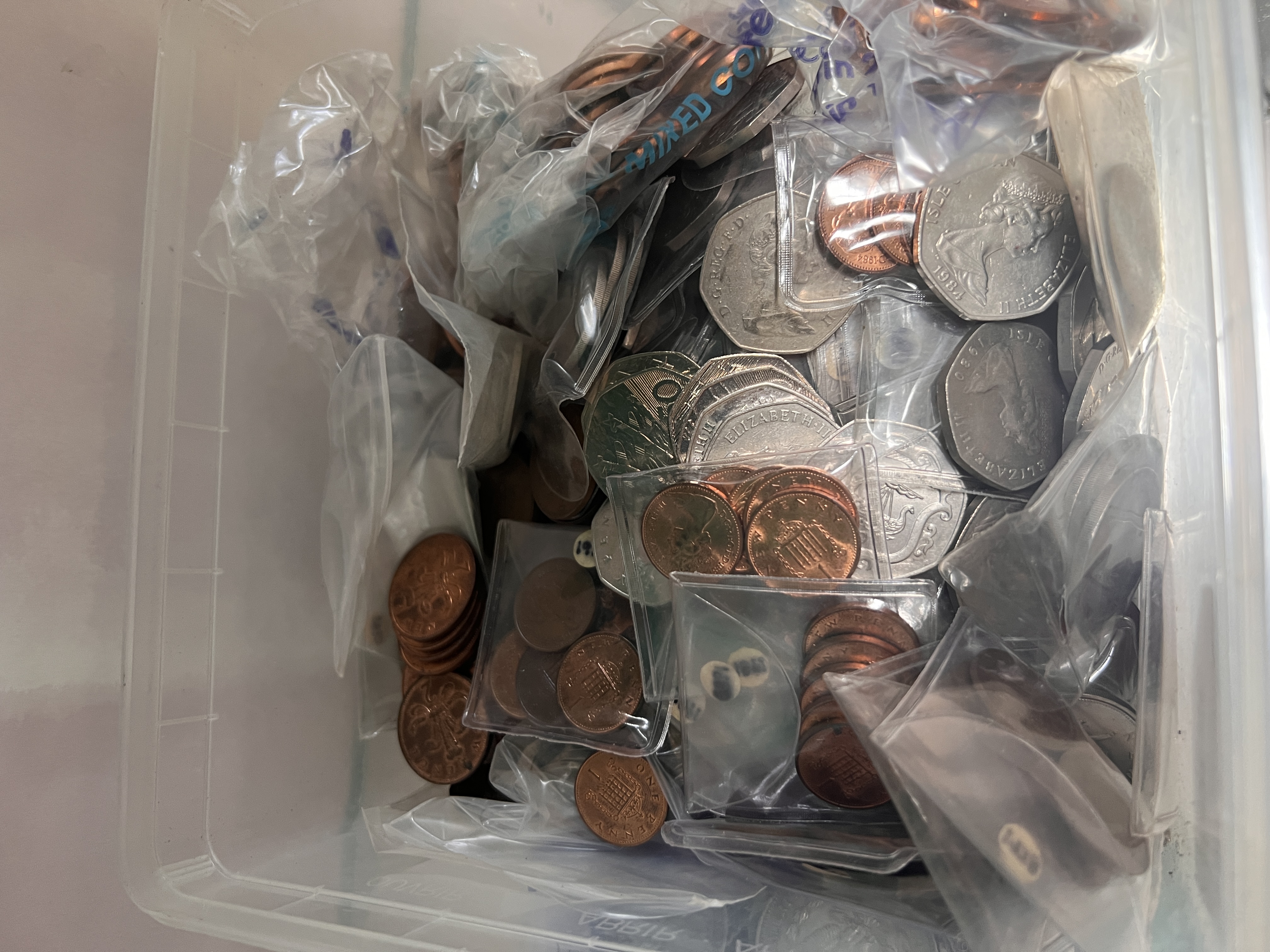 A collection of early UK decimal coins.