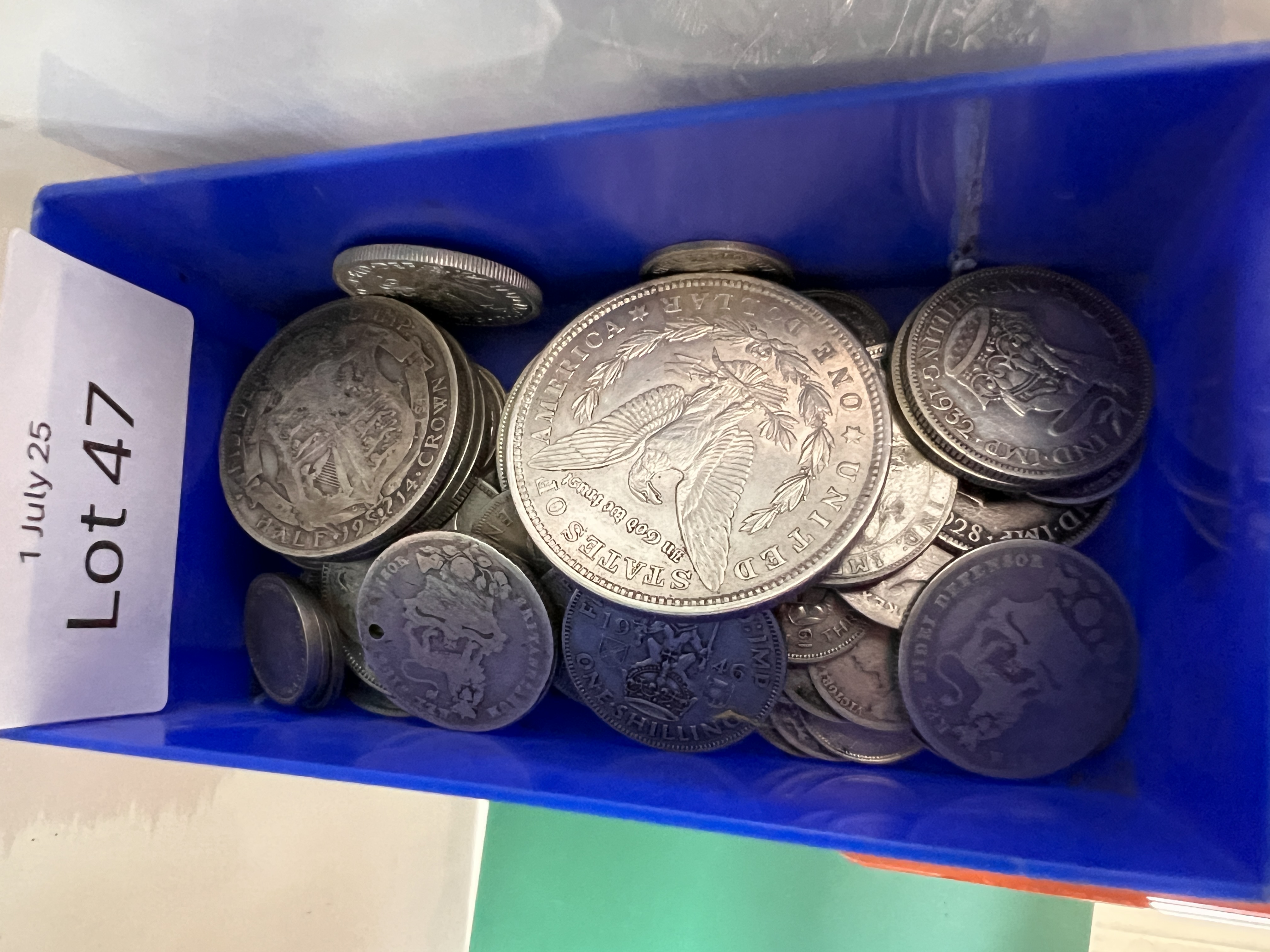 A collection of GB silver coins and an American Morgan Dollar 1921.