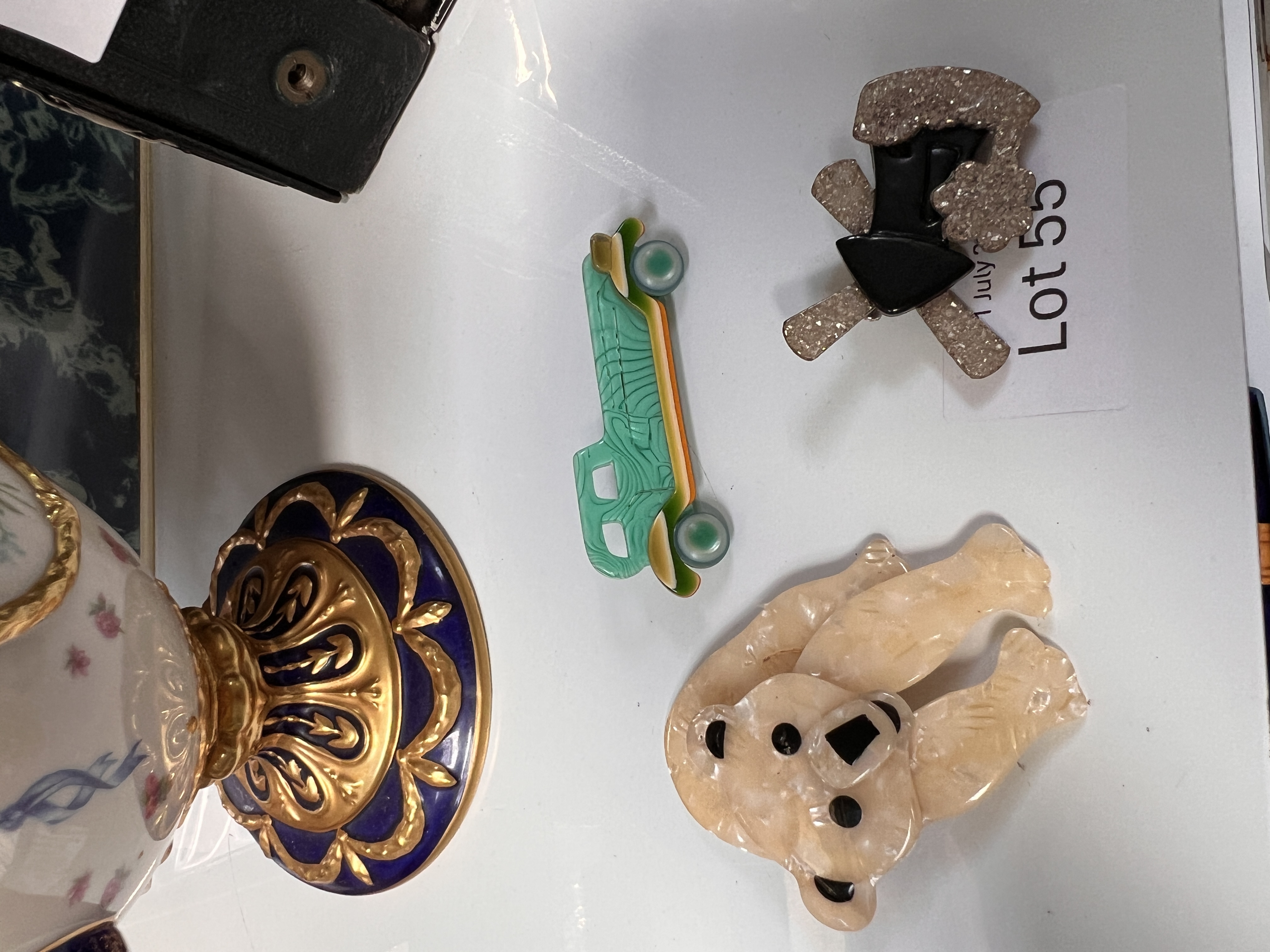 Lot 55: Three Lea Stein Art Deco brooches, Paris. Including...