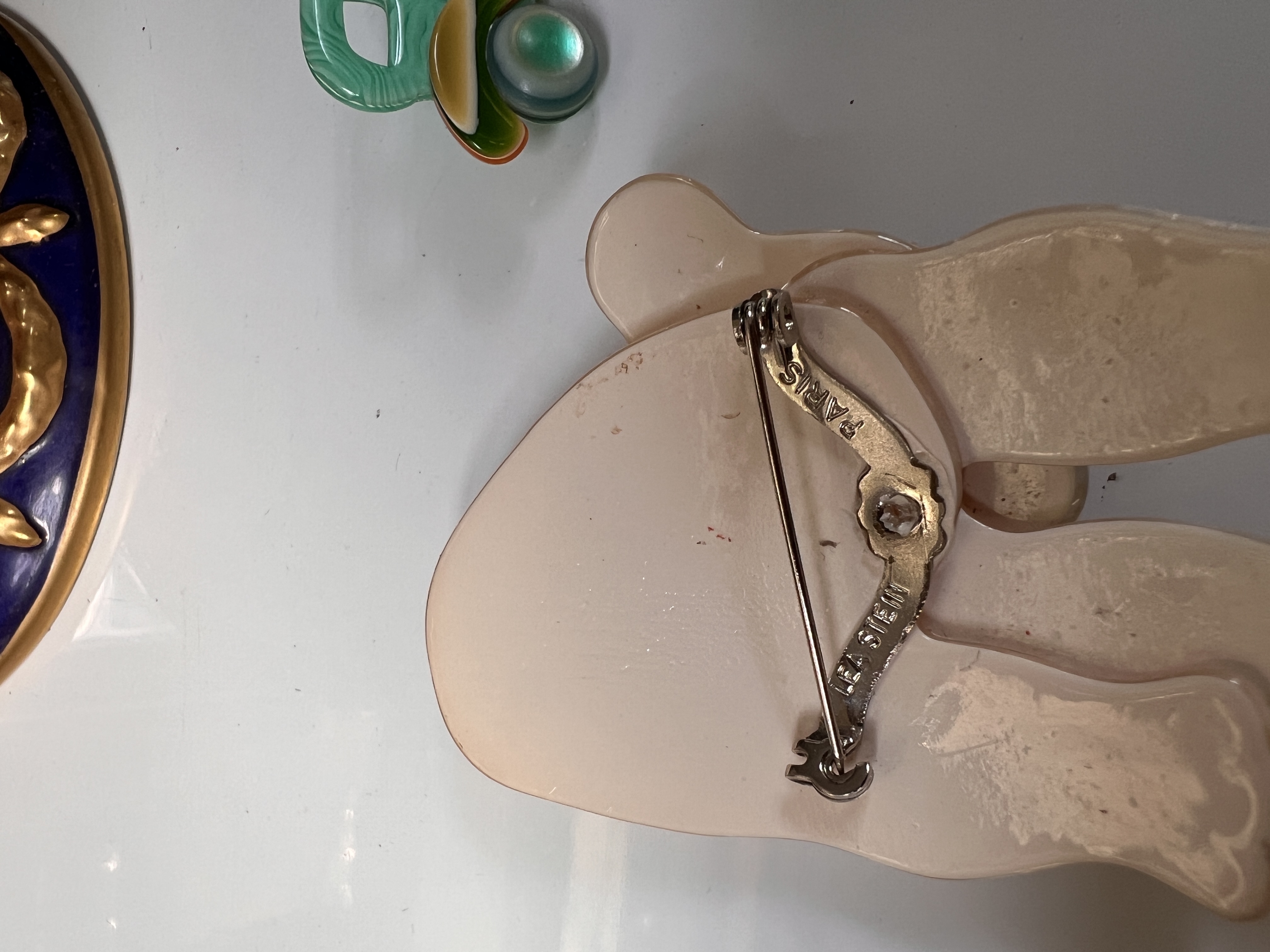 Three Lea Stein Art Deco brooches, Paris. Including Polar Bear, Classic Car and Windmill.