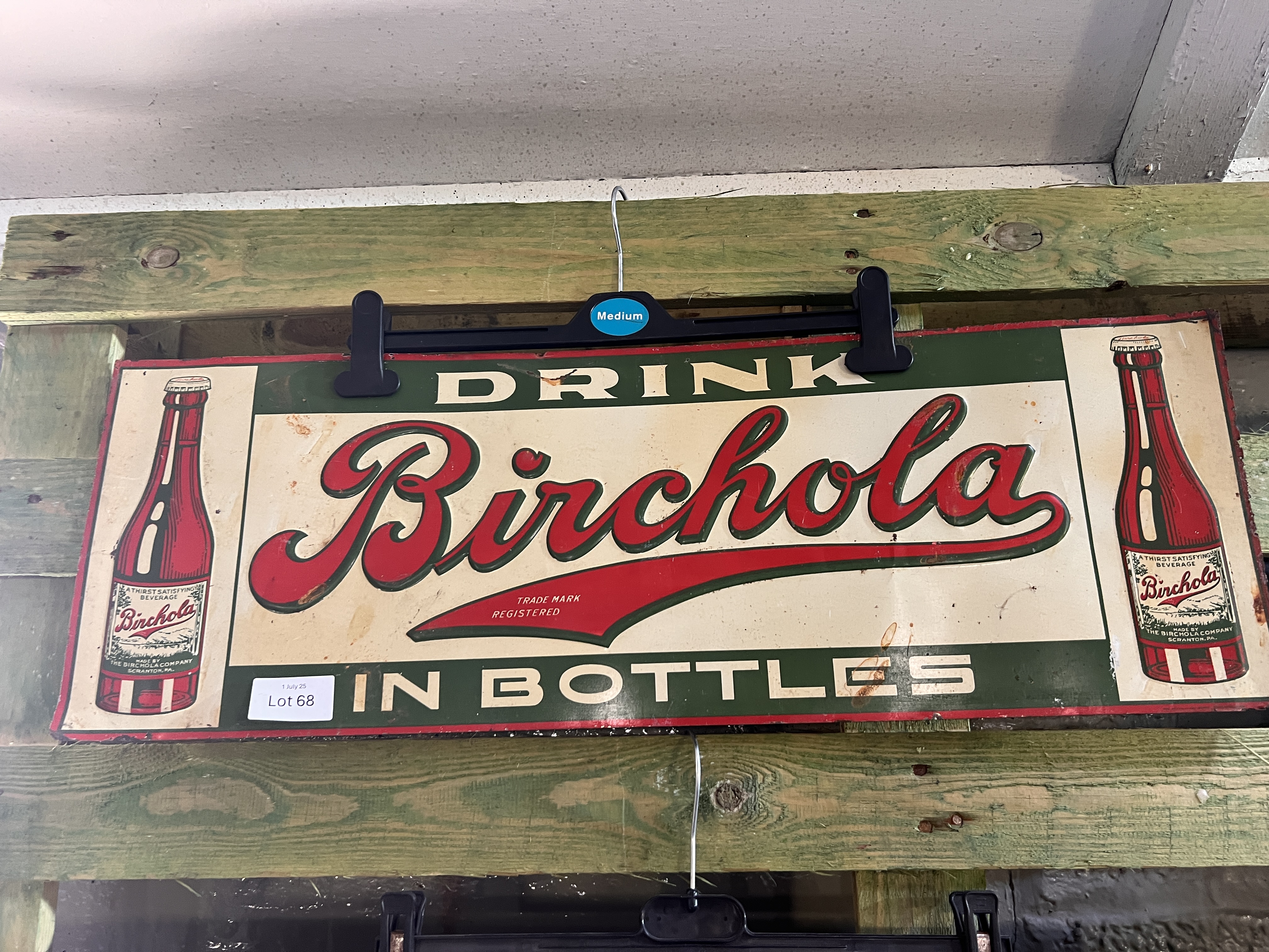 A vintage Birchola beverage pressed metal advertising sign. 70cm long.