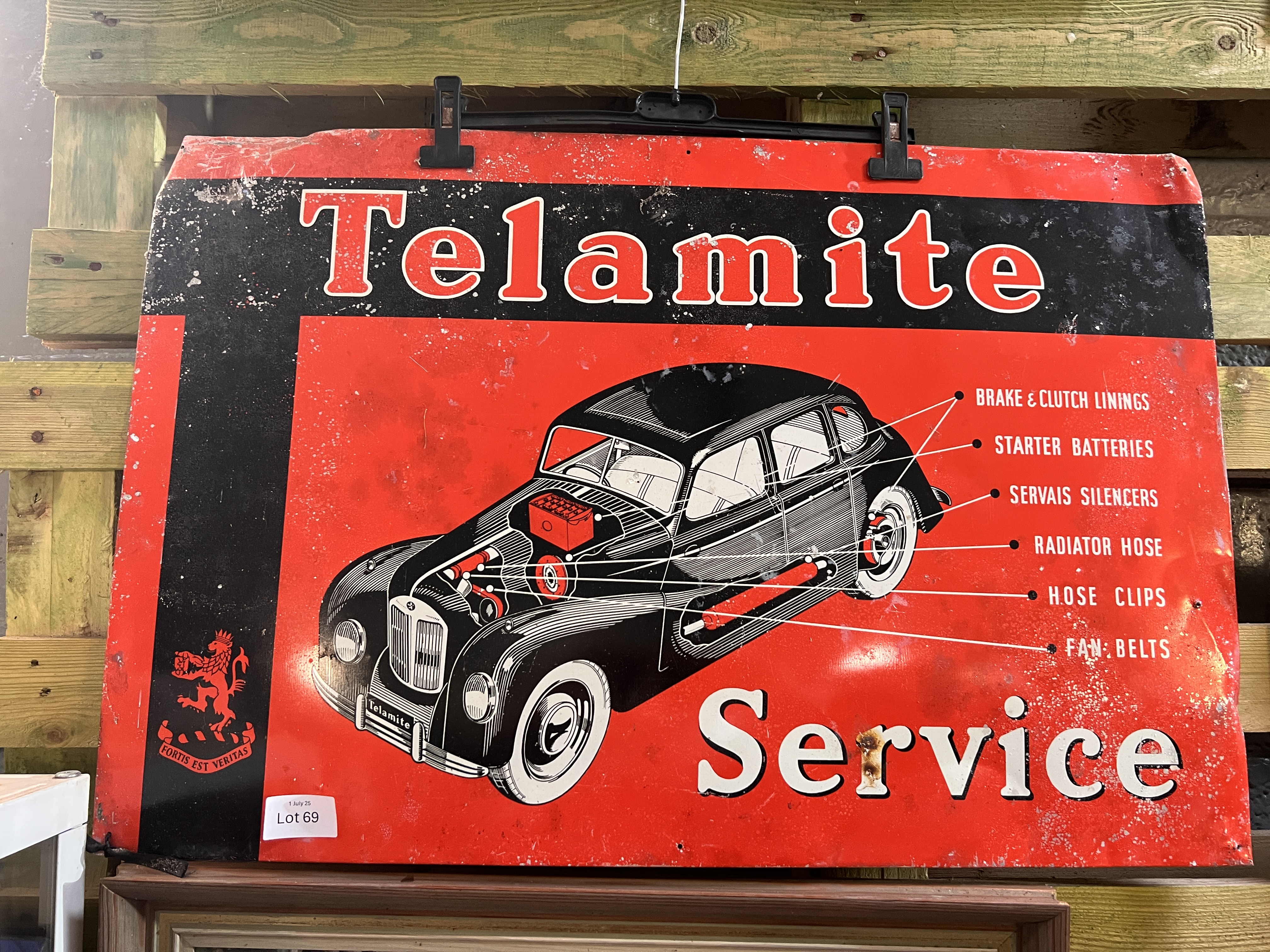 A vintage Telamite service advertising sign metal depicting motor car. 75cm x 50cm
