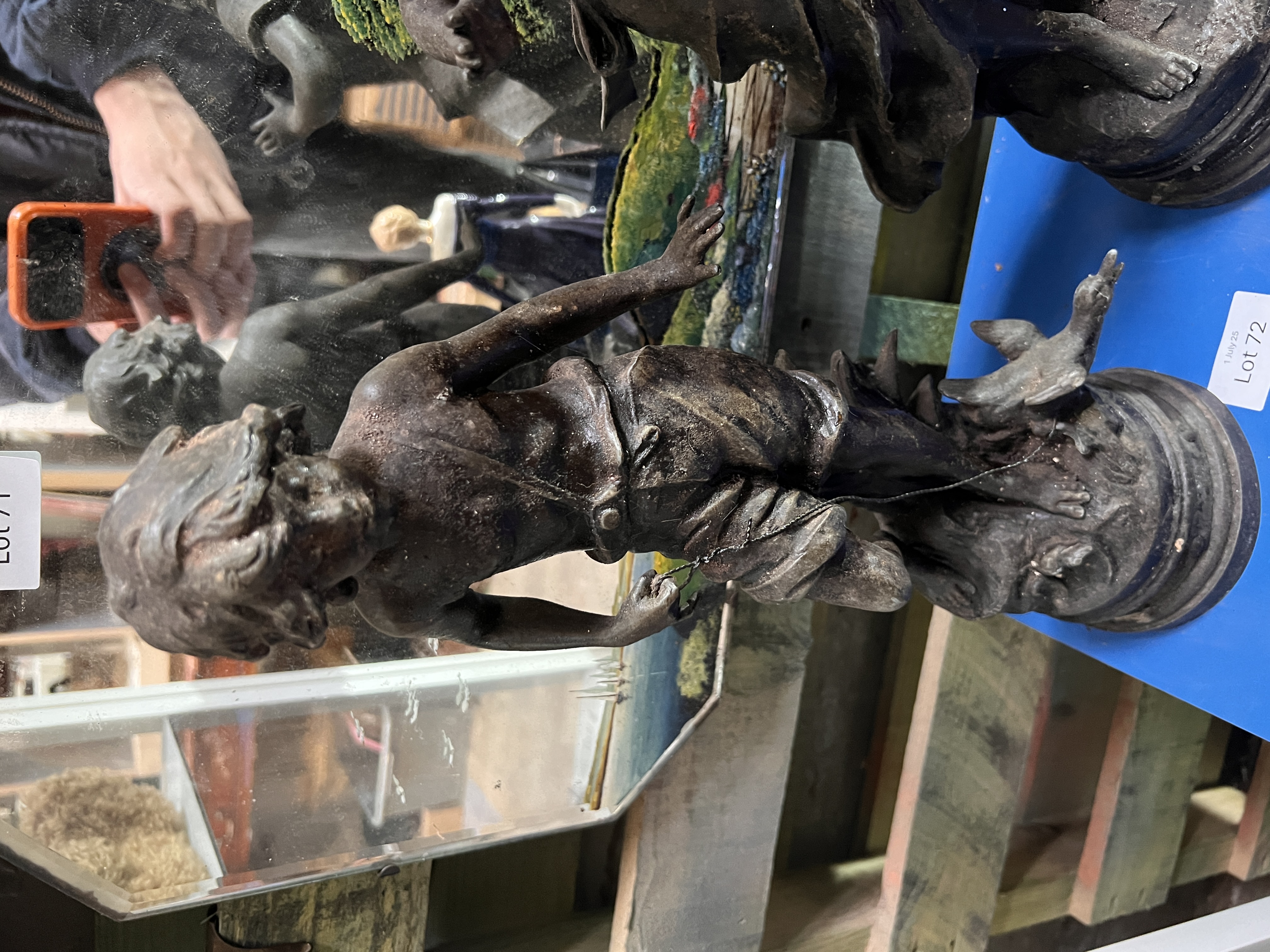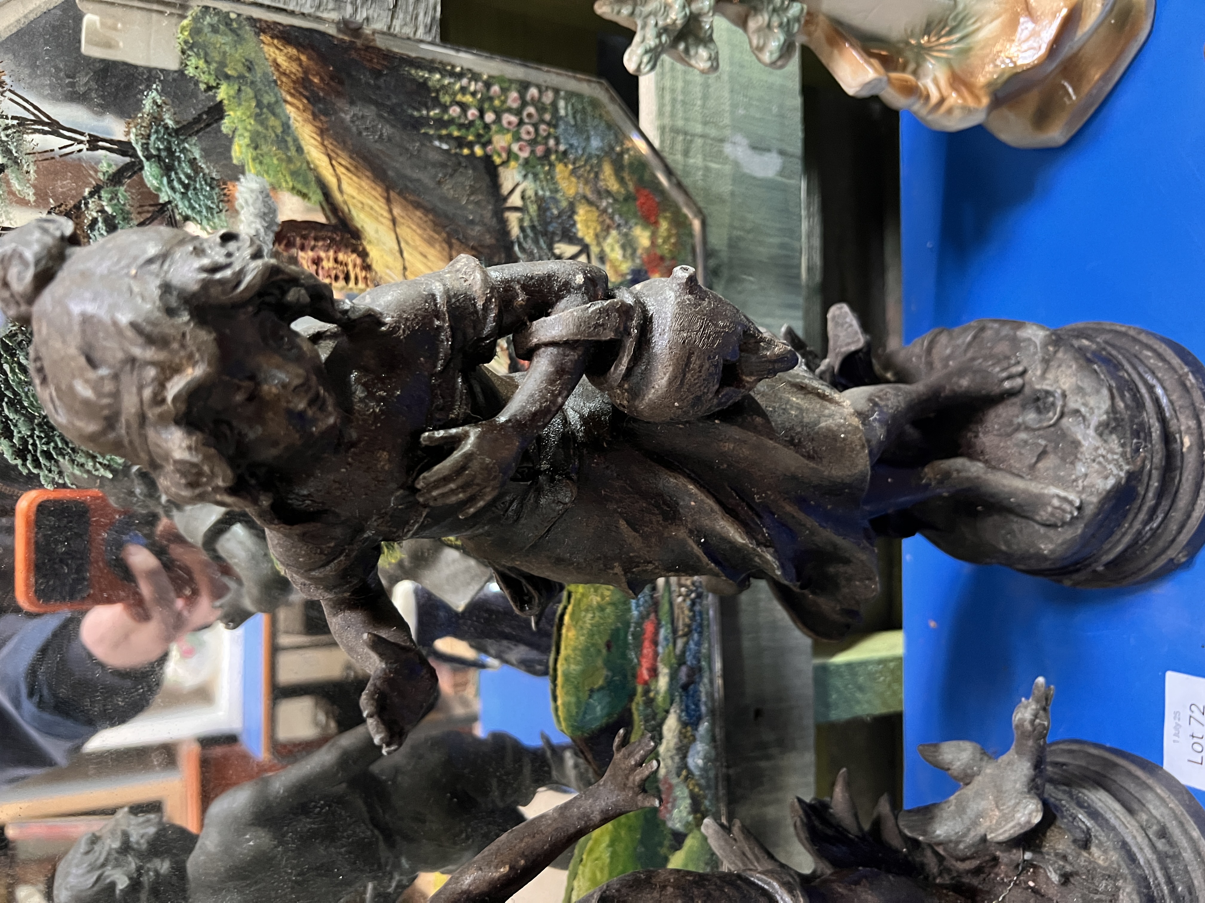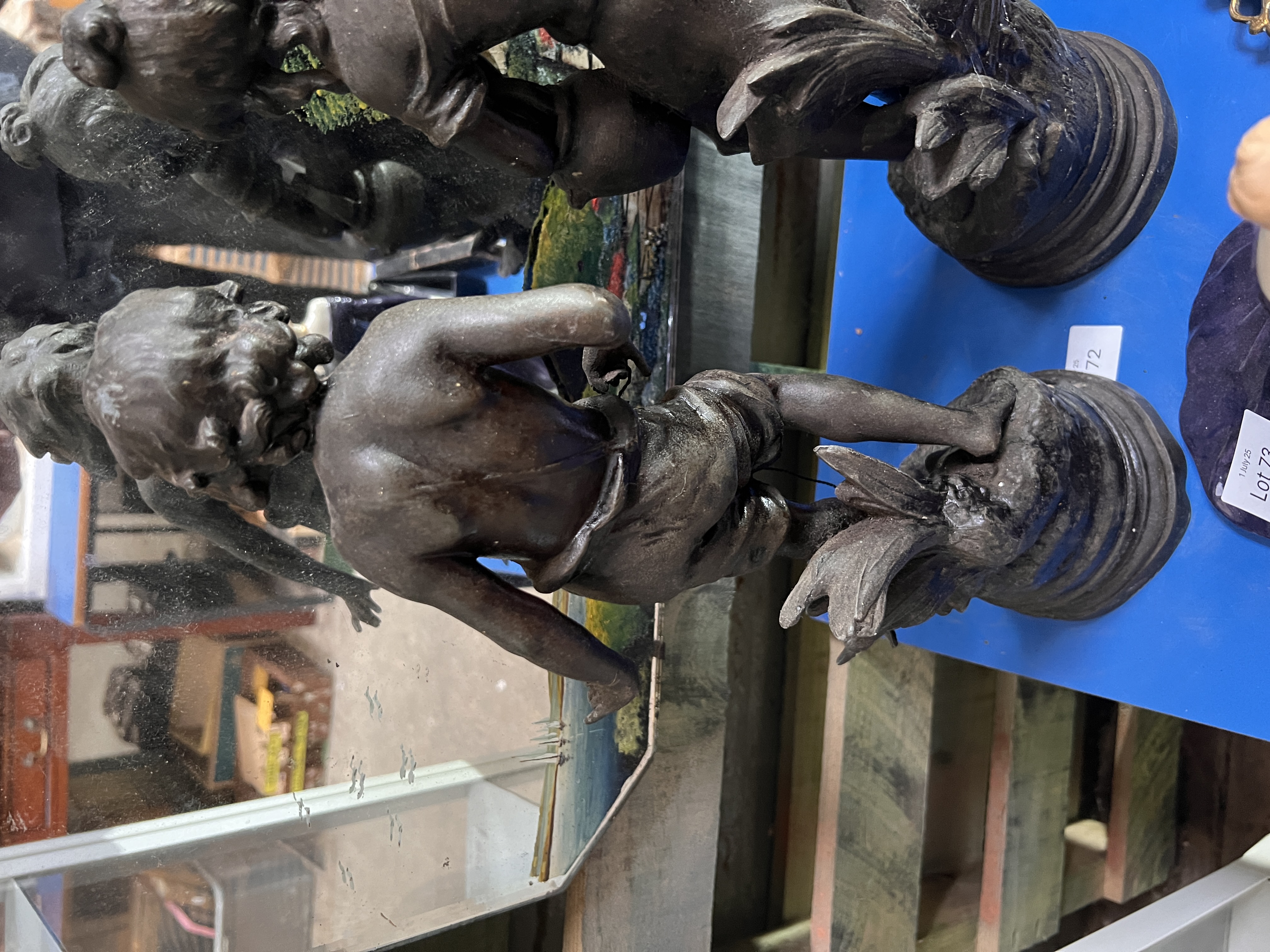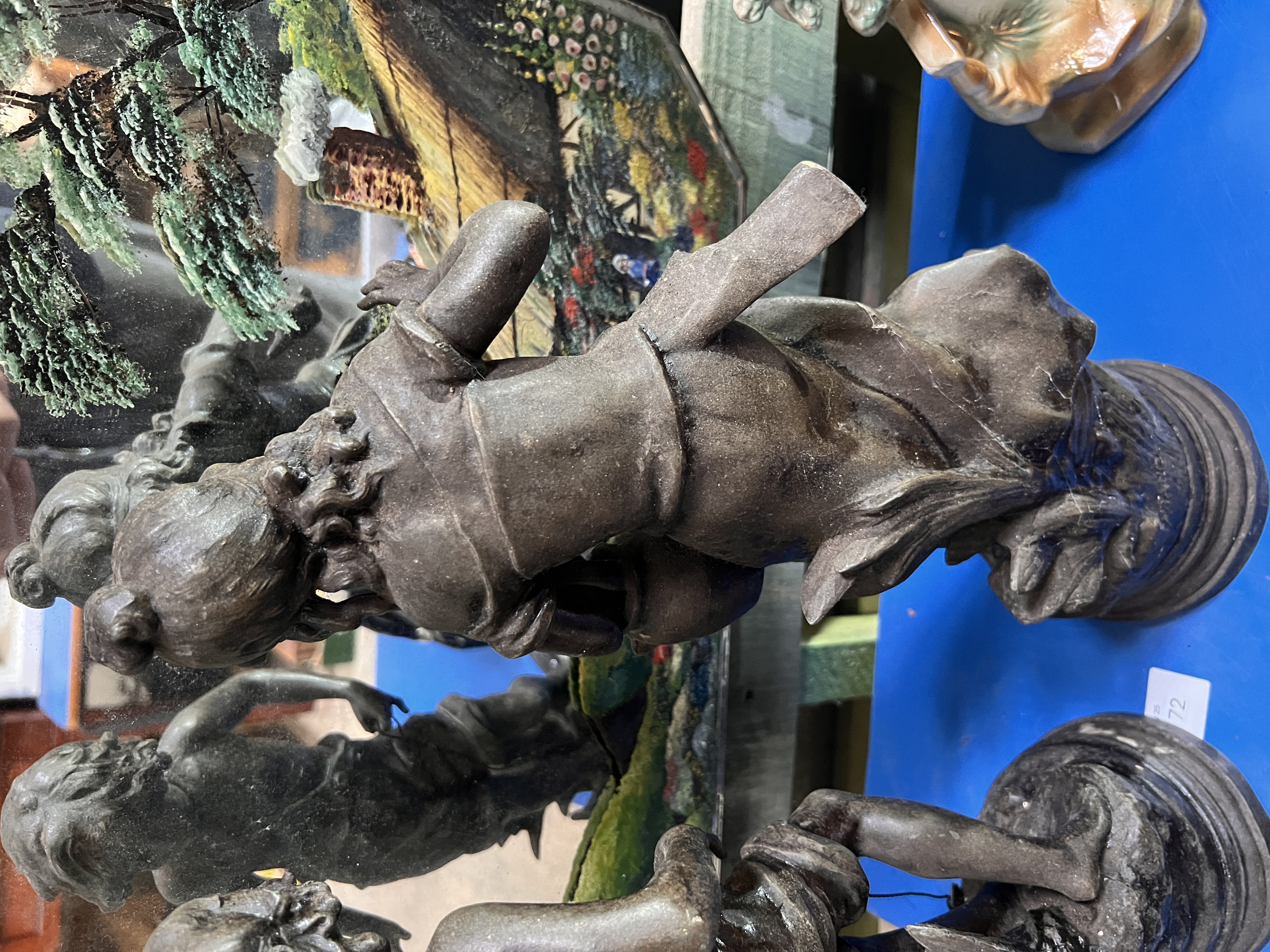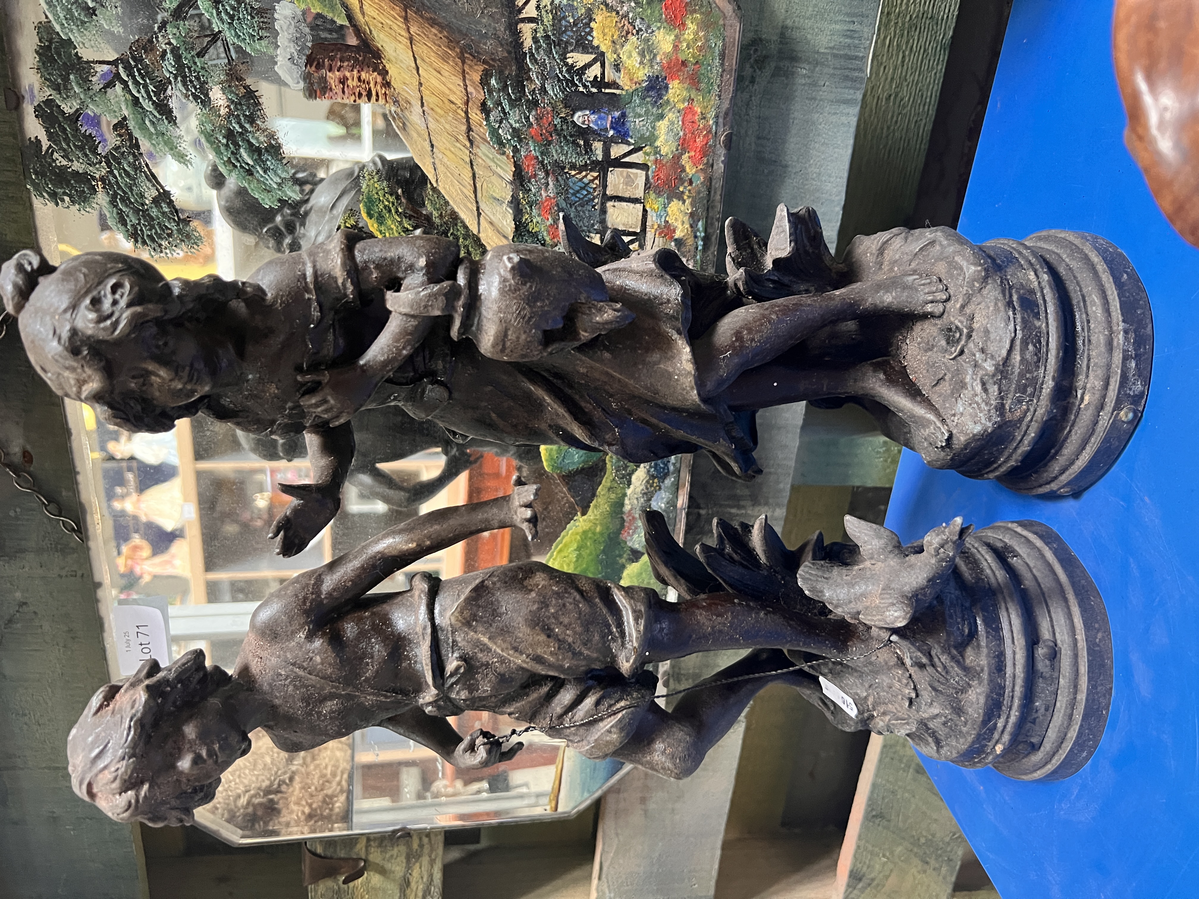 A pair of Victorian bronzed spelter figures of boy and girl. 42cm.