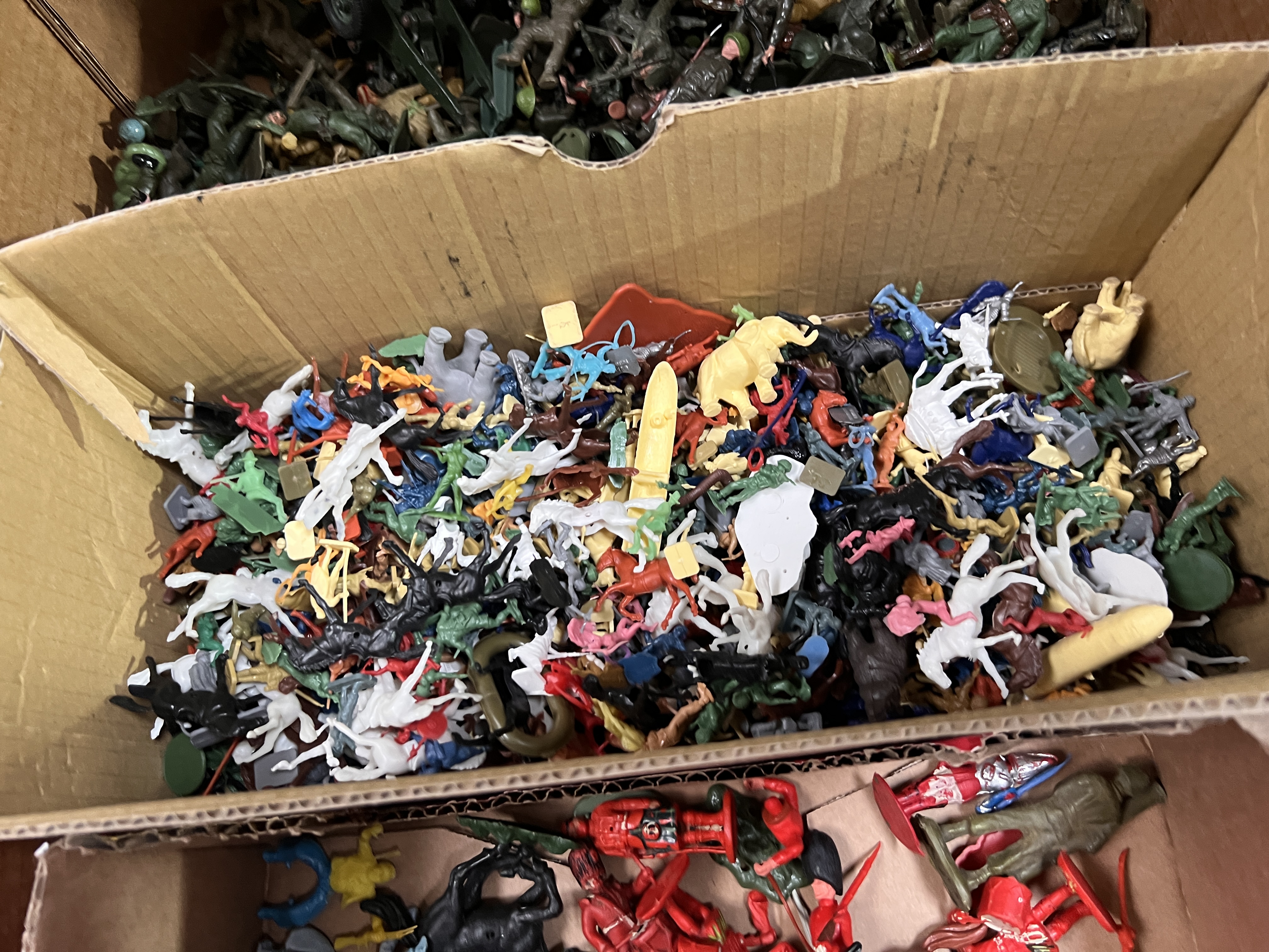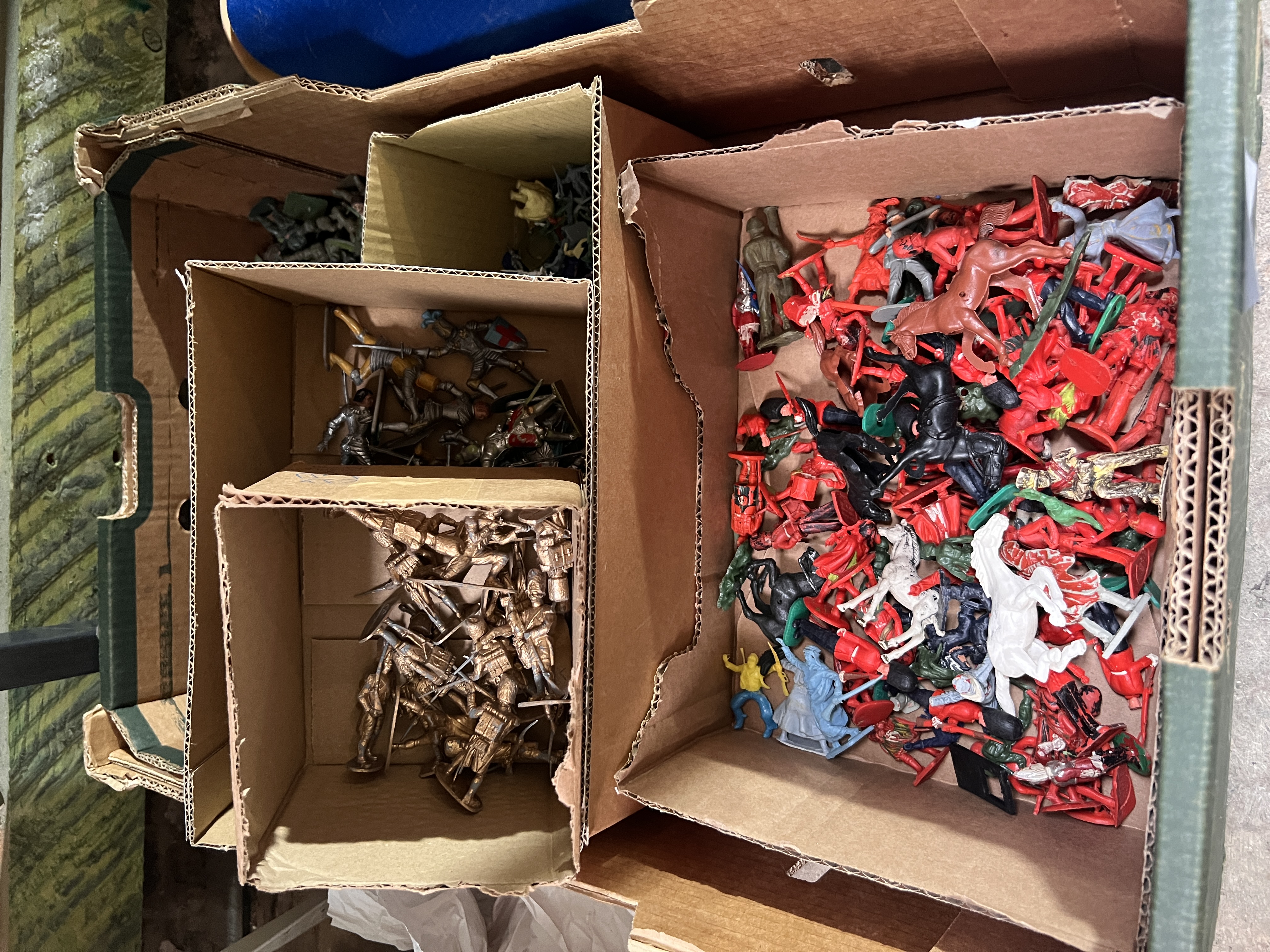 A large selection of Timpo, Britains and Airfix miniature plastic soldiers and knights.