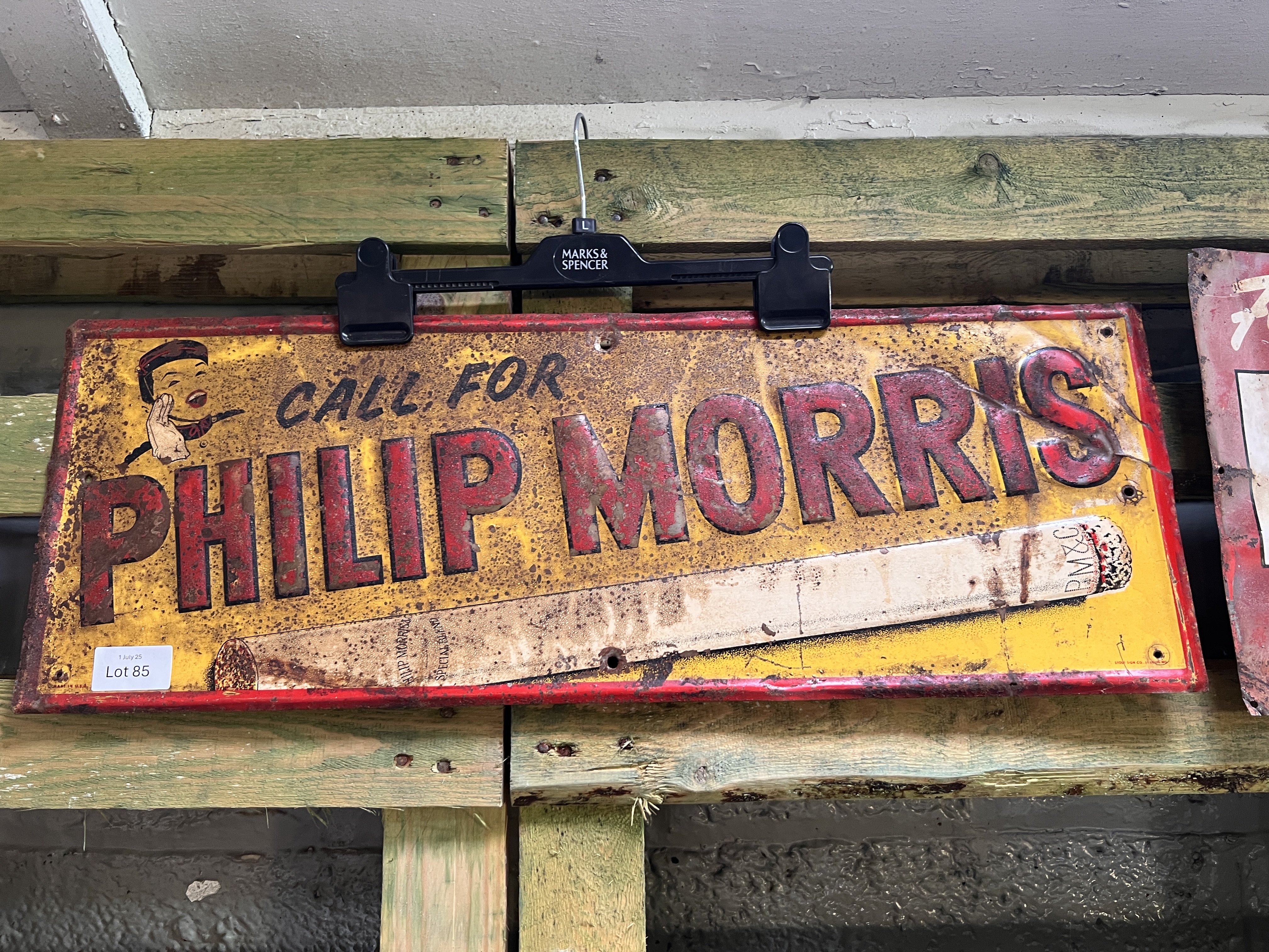 A vintage Phillip Morris pressed metal advertising sign. 70cm long.