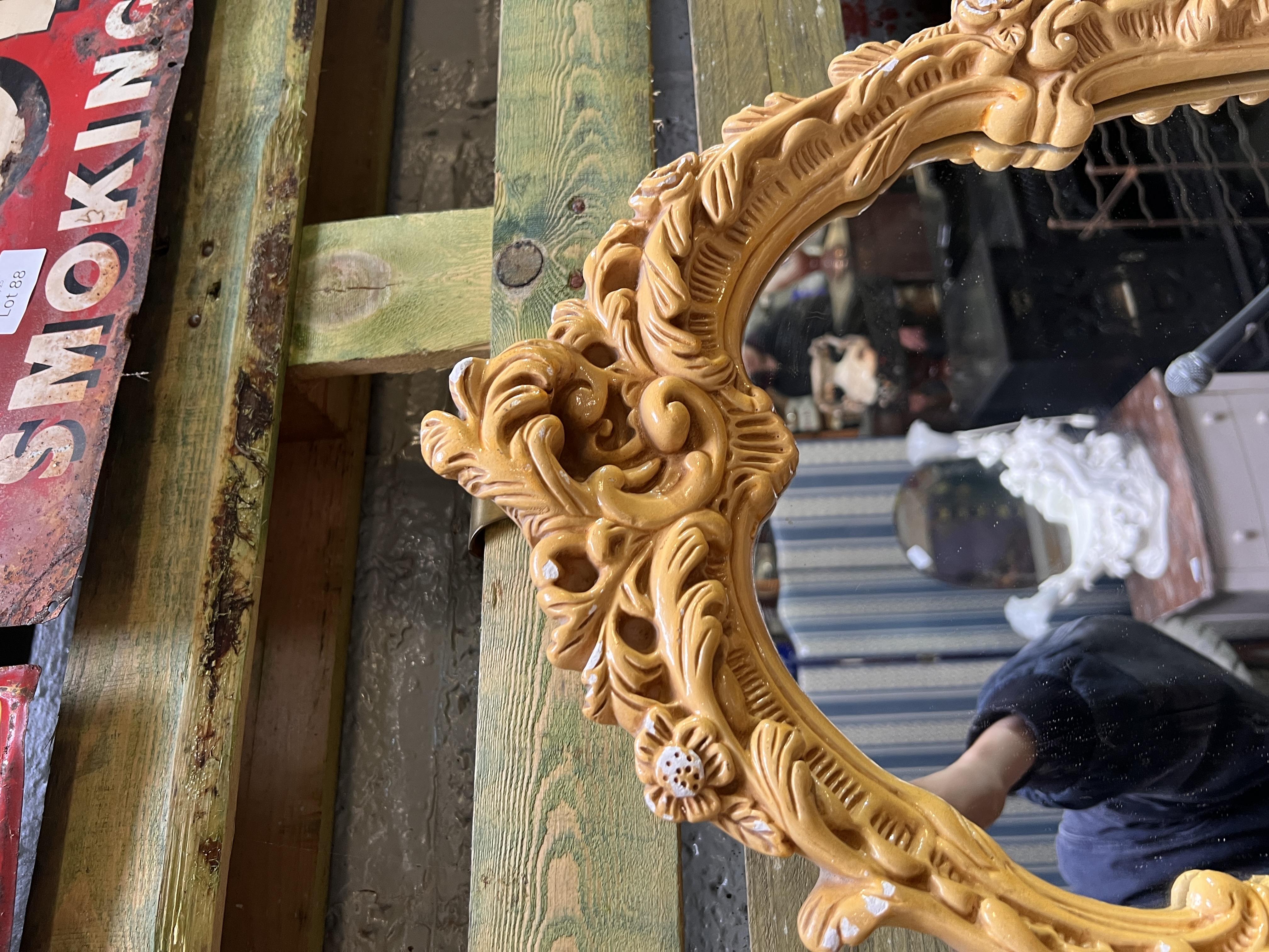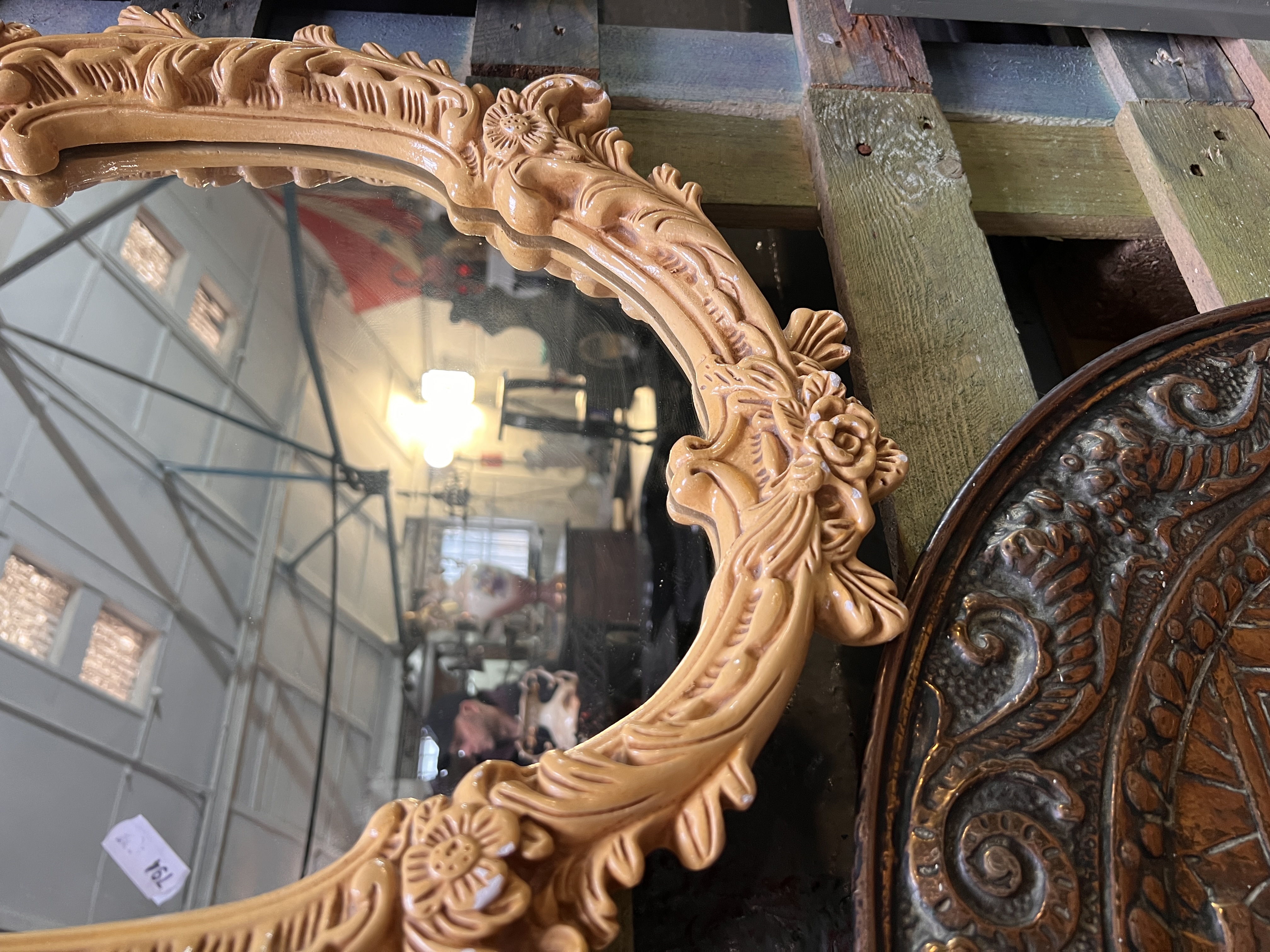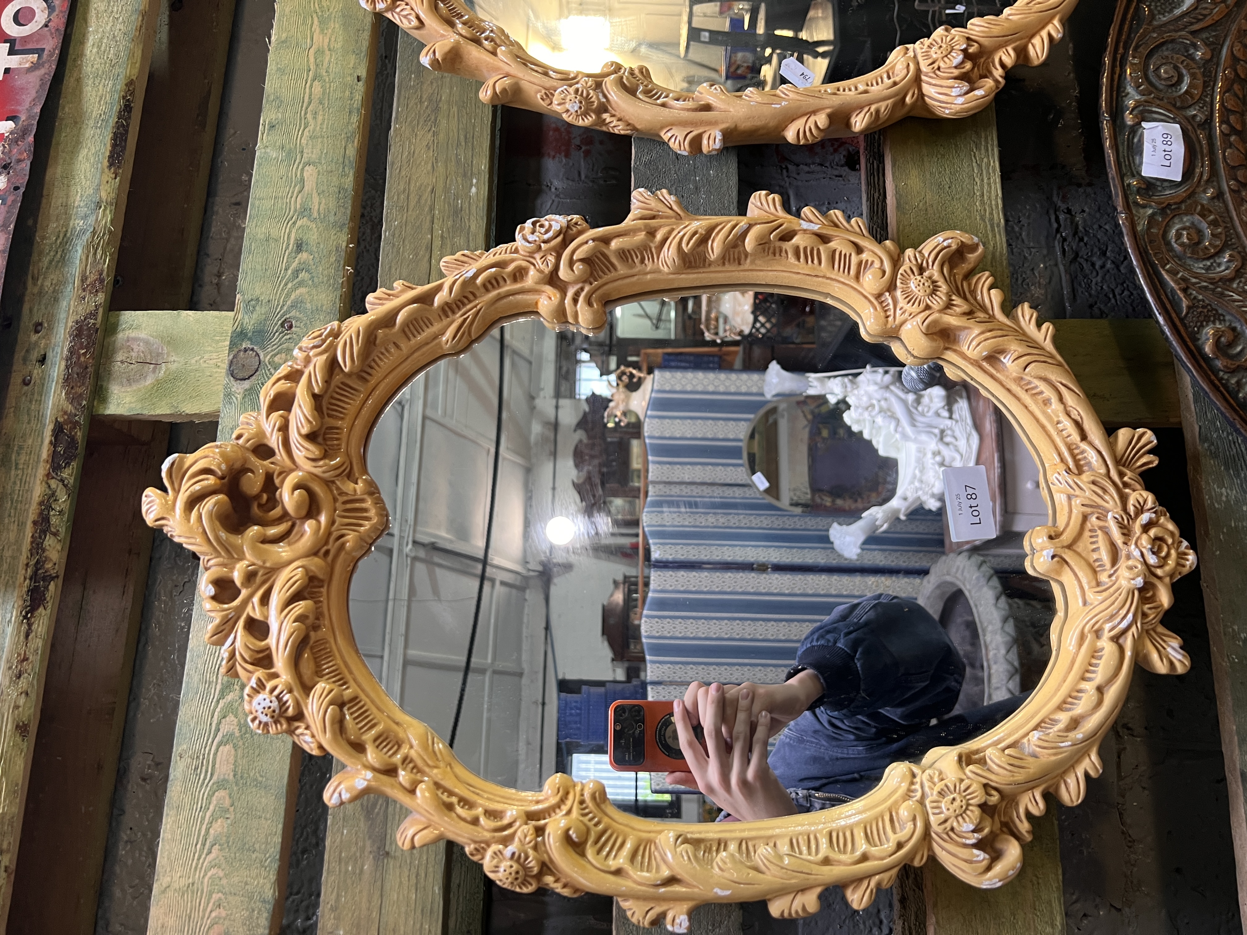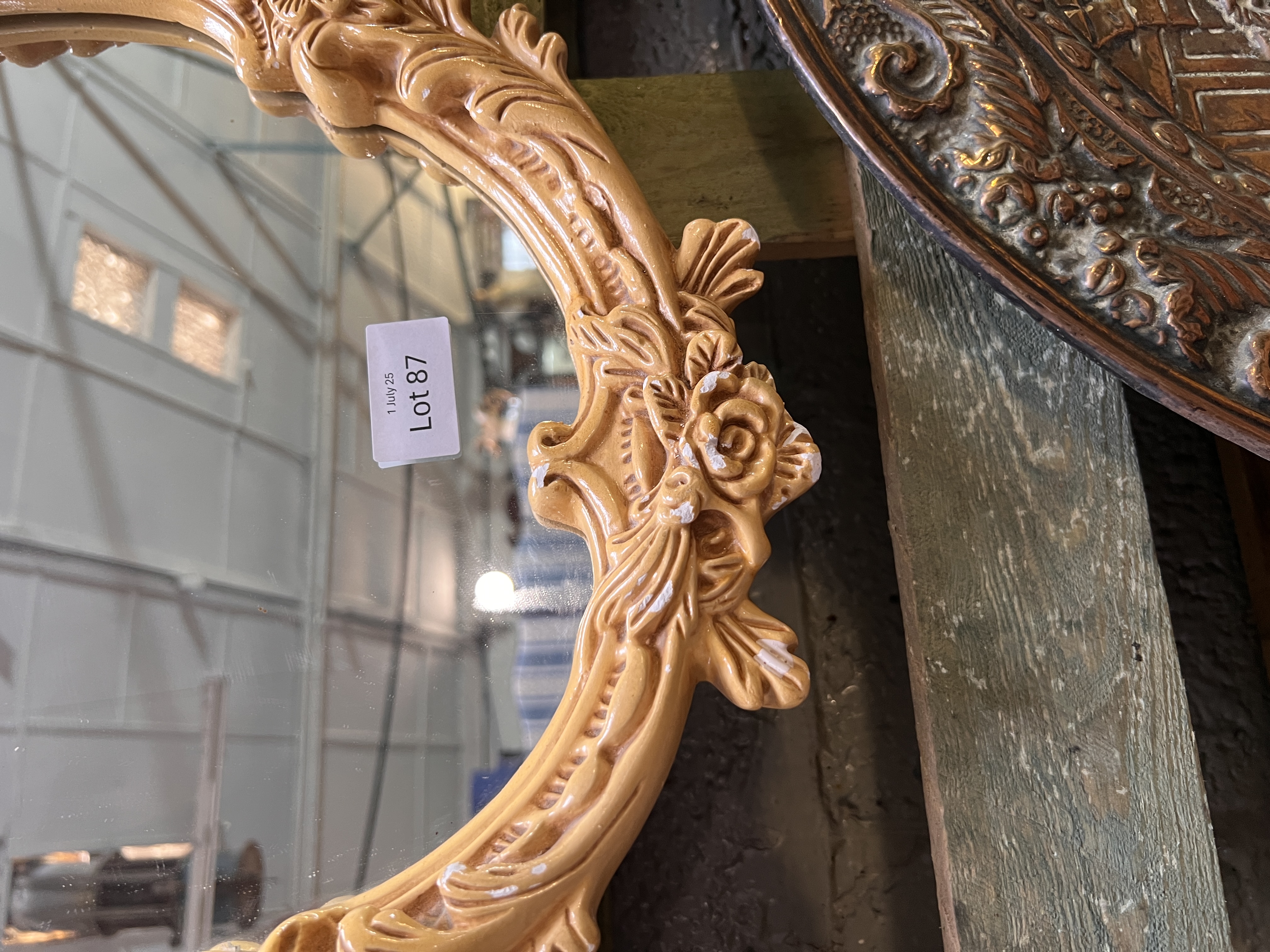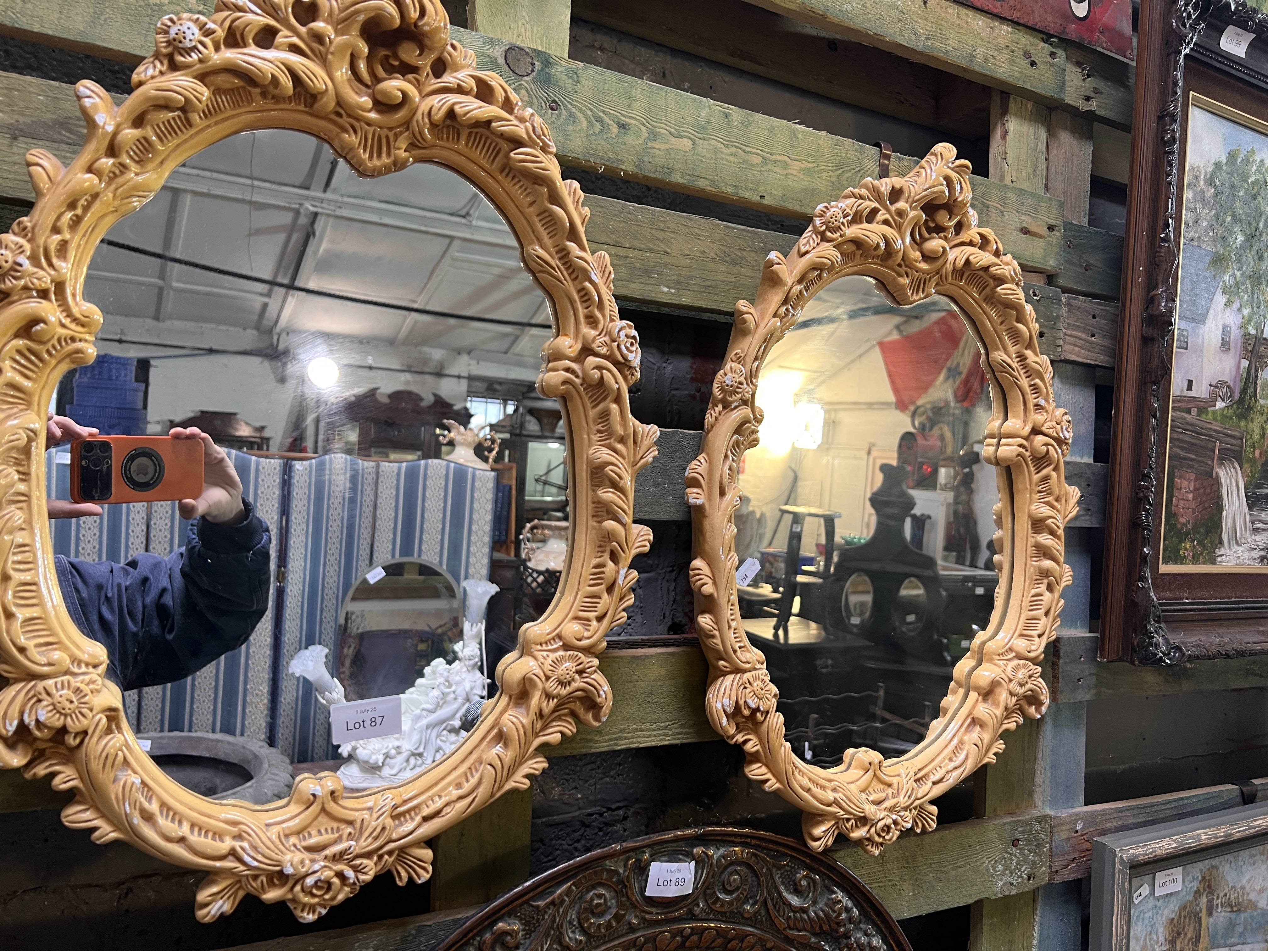 A pair of mid century chalkware framed mirrors.