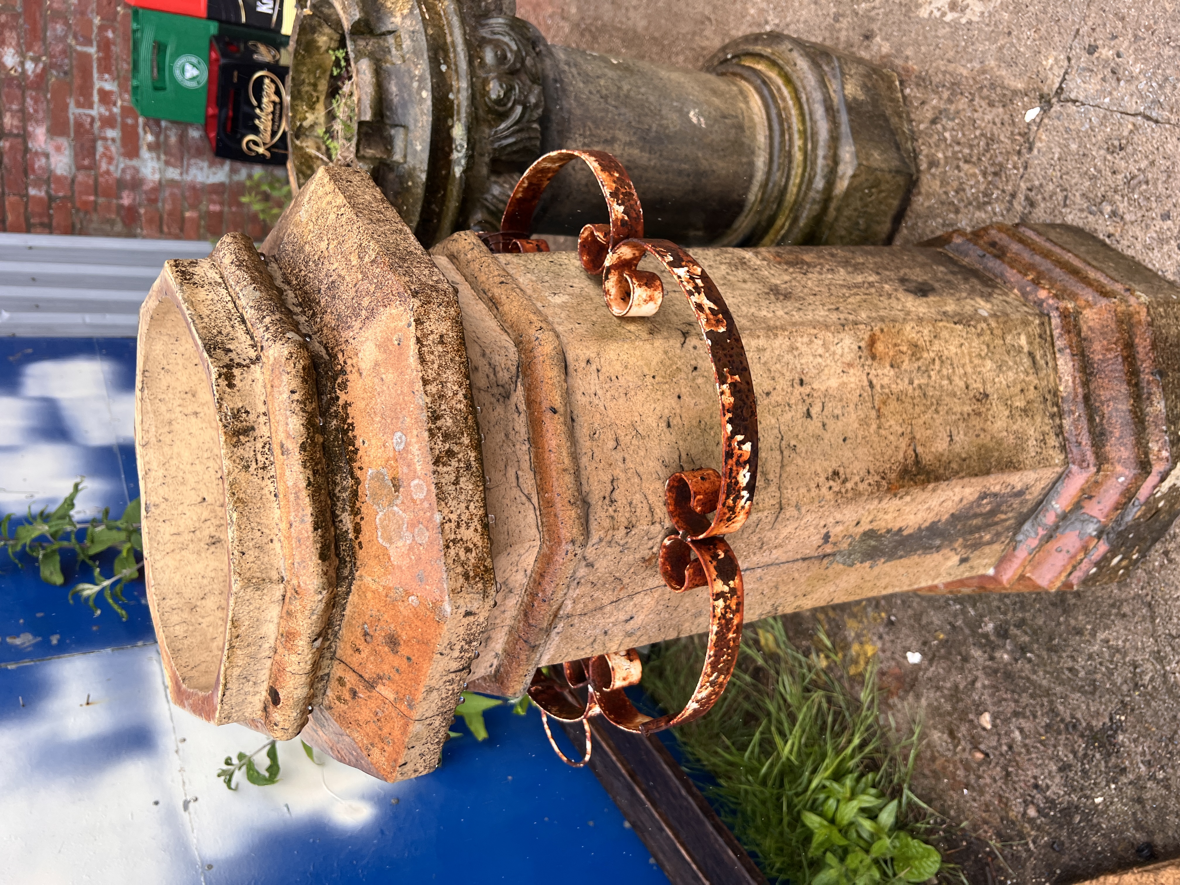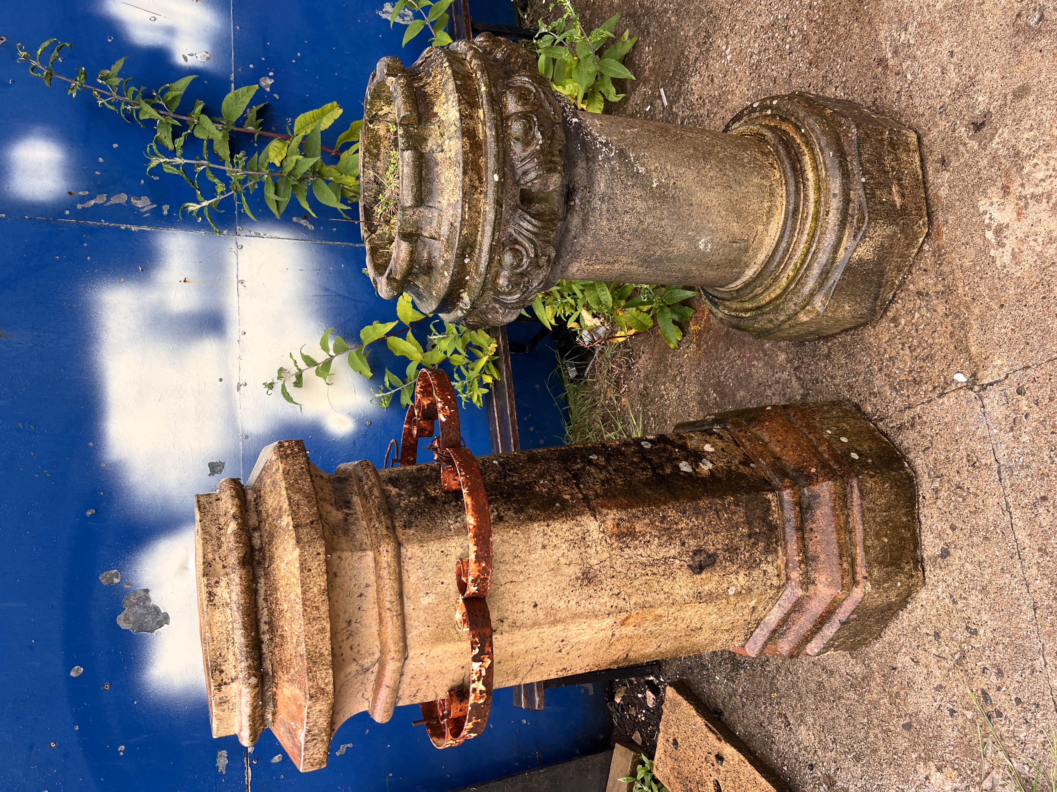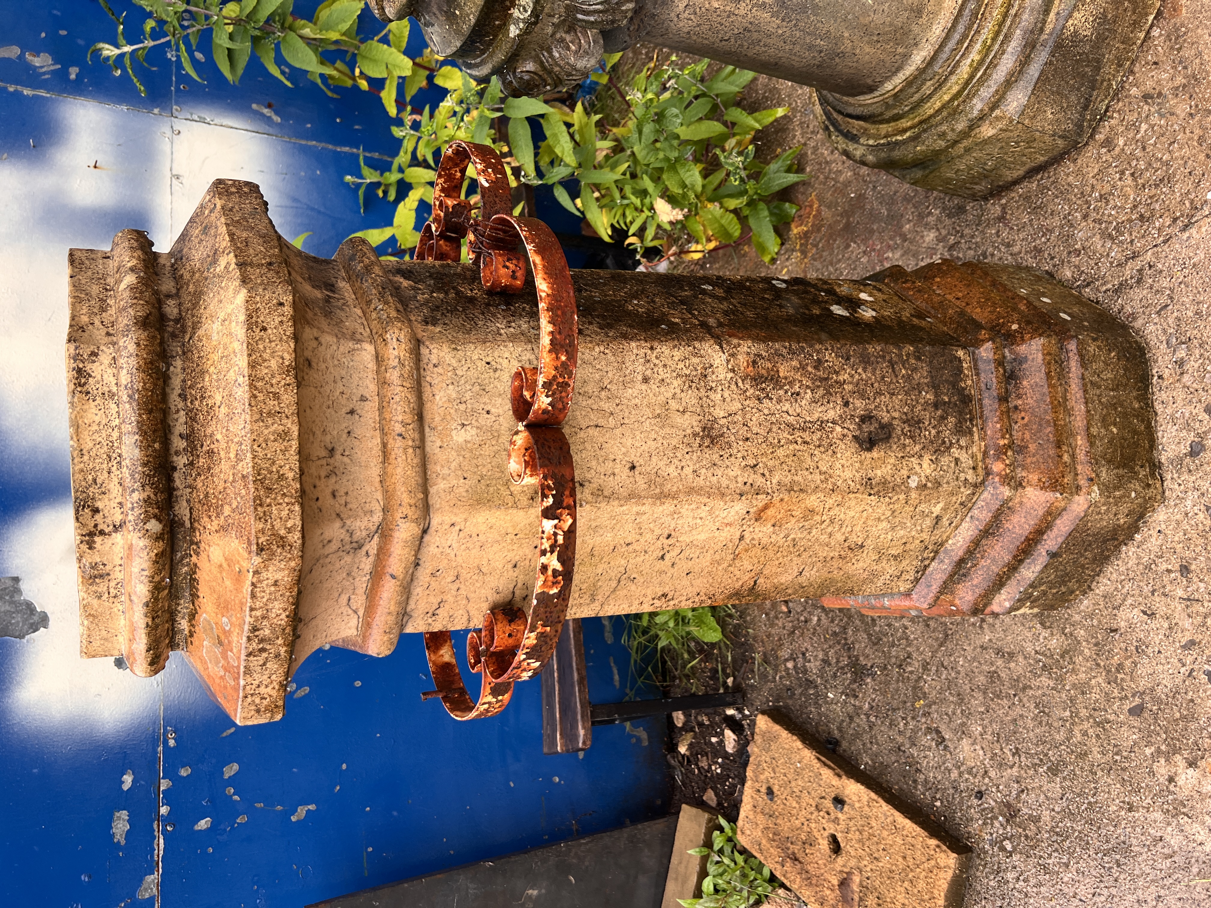 Two large architectural chimney pots, one having had repair. Largest pot 114cm tall.