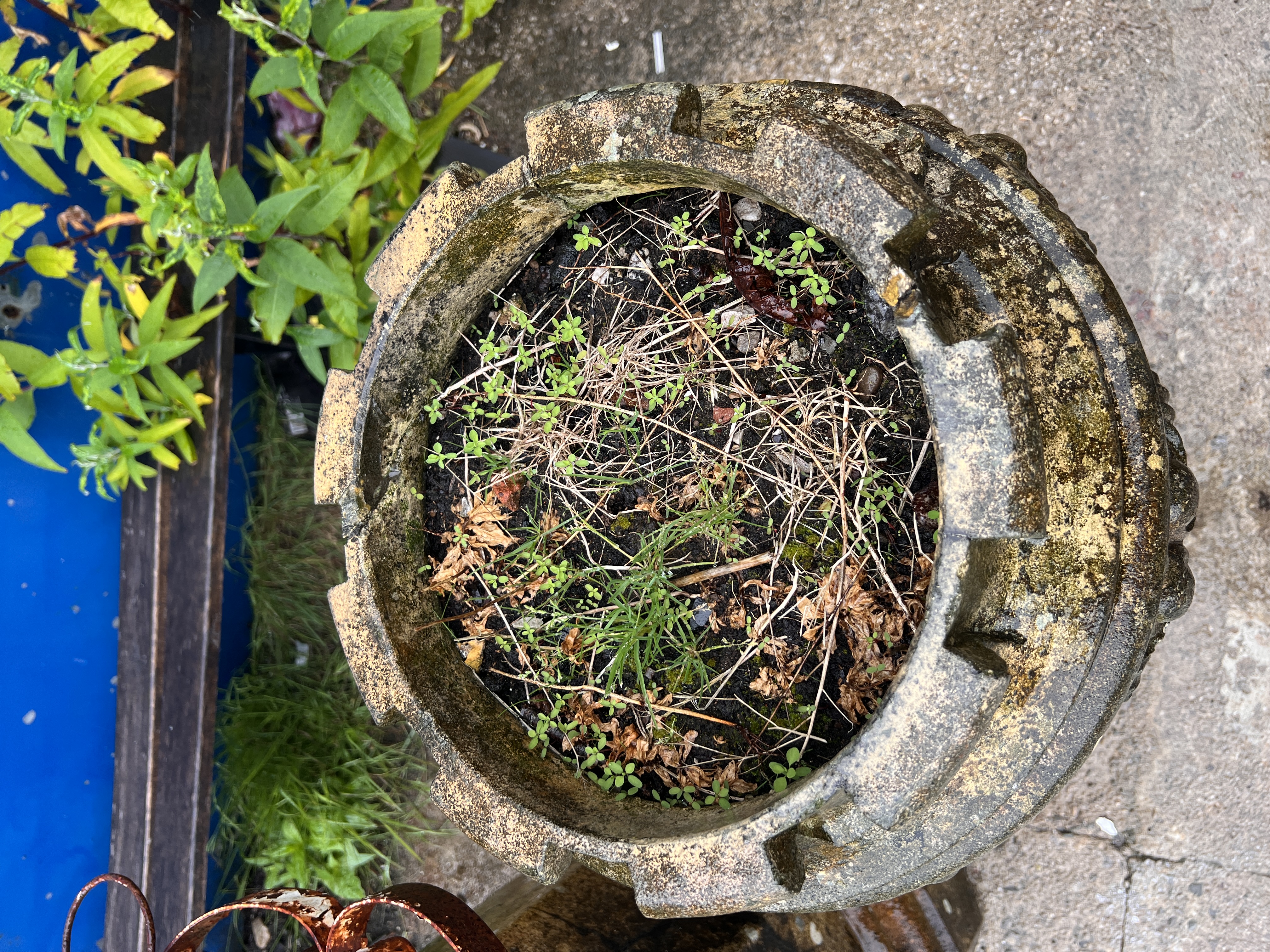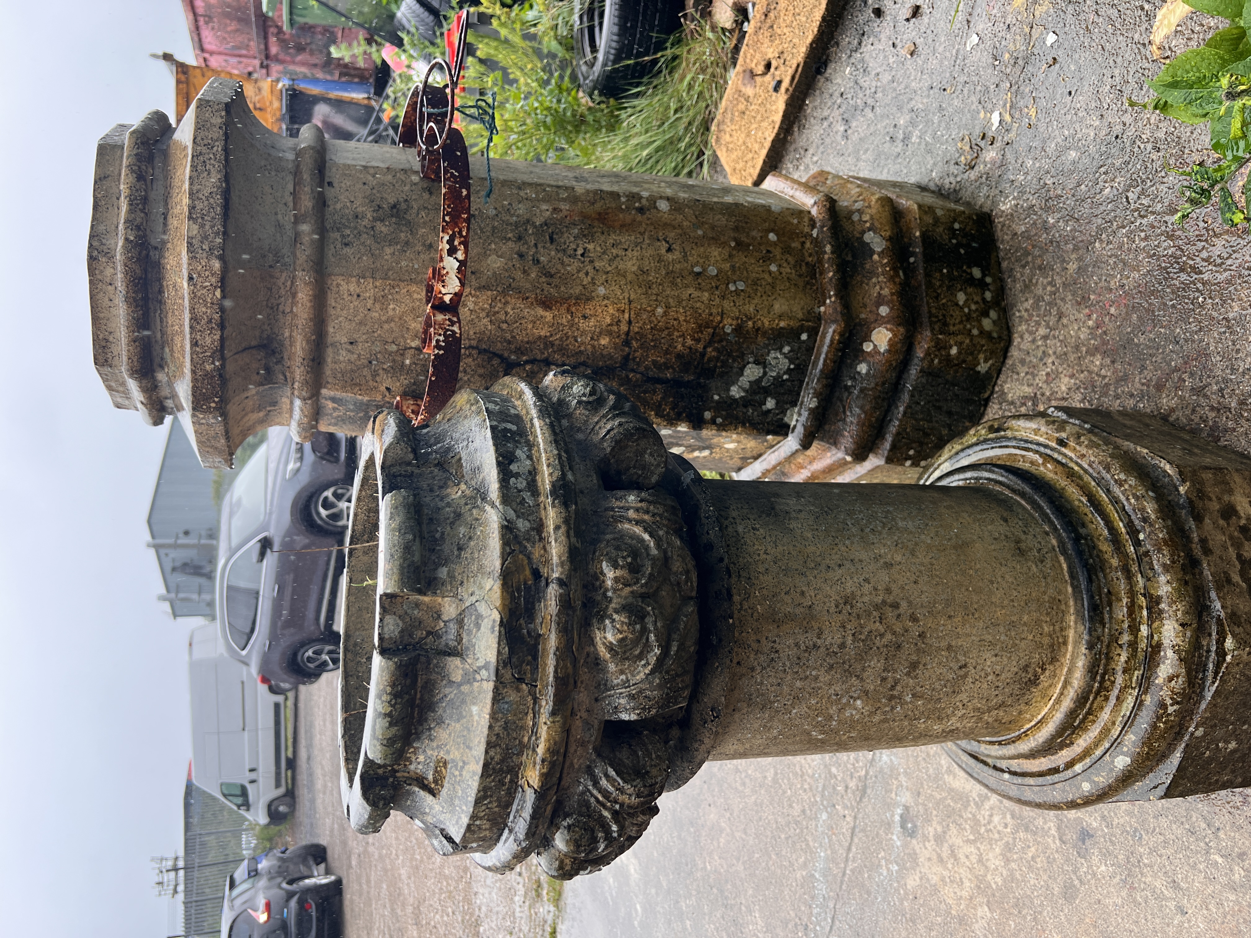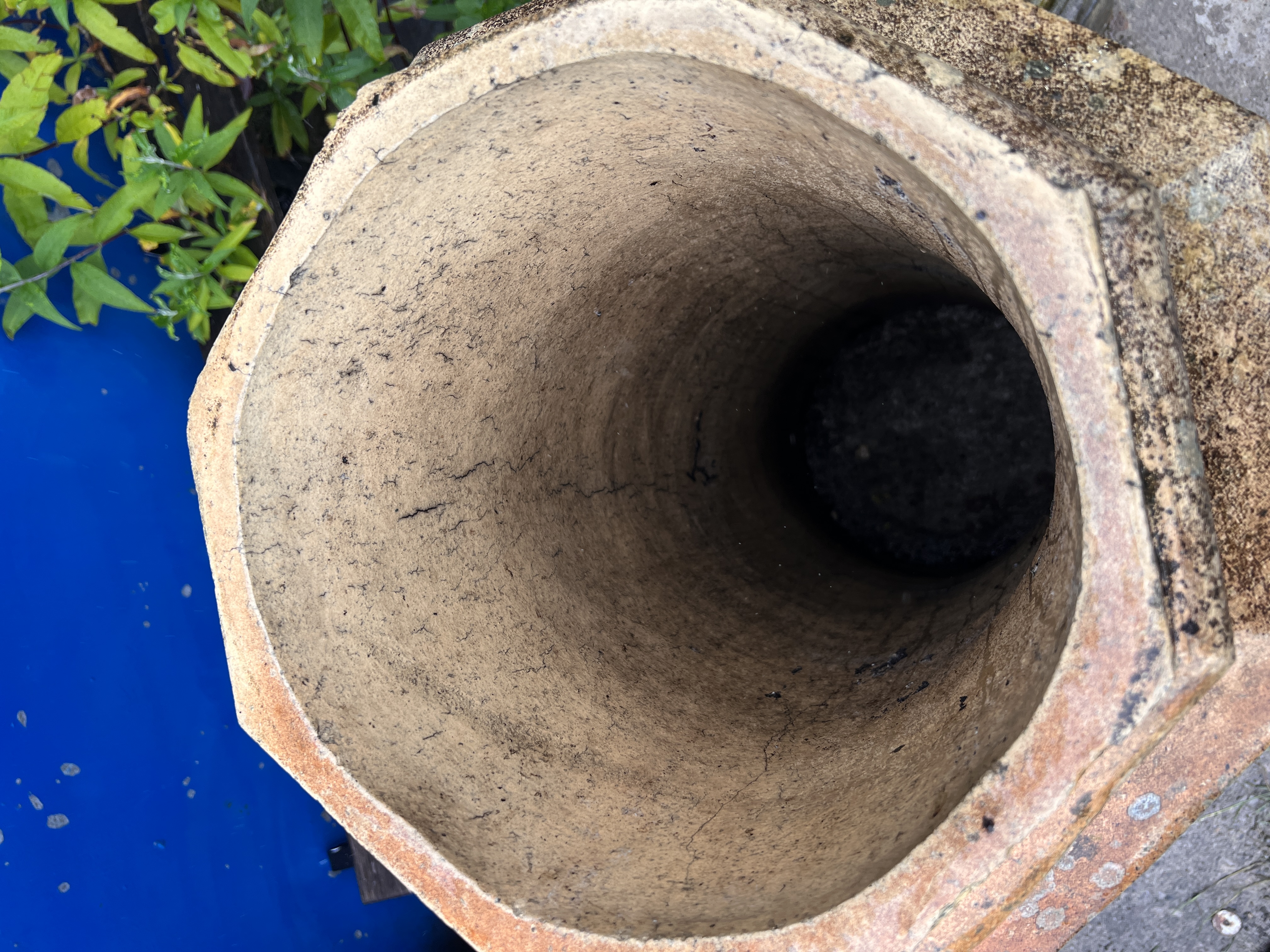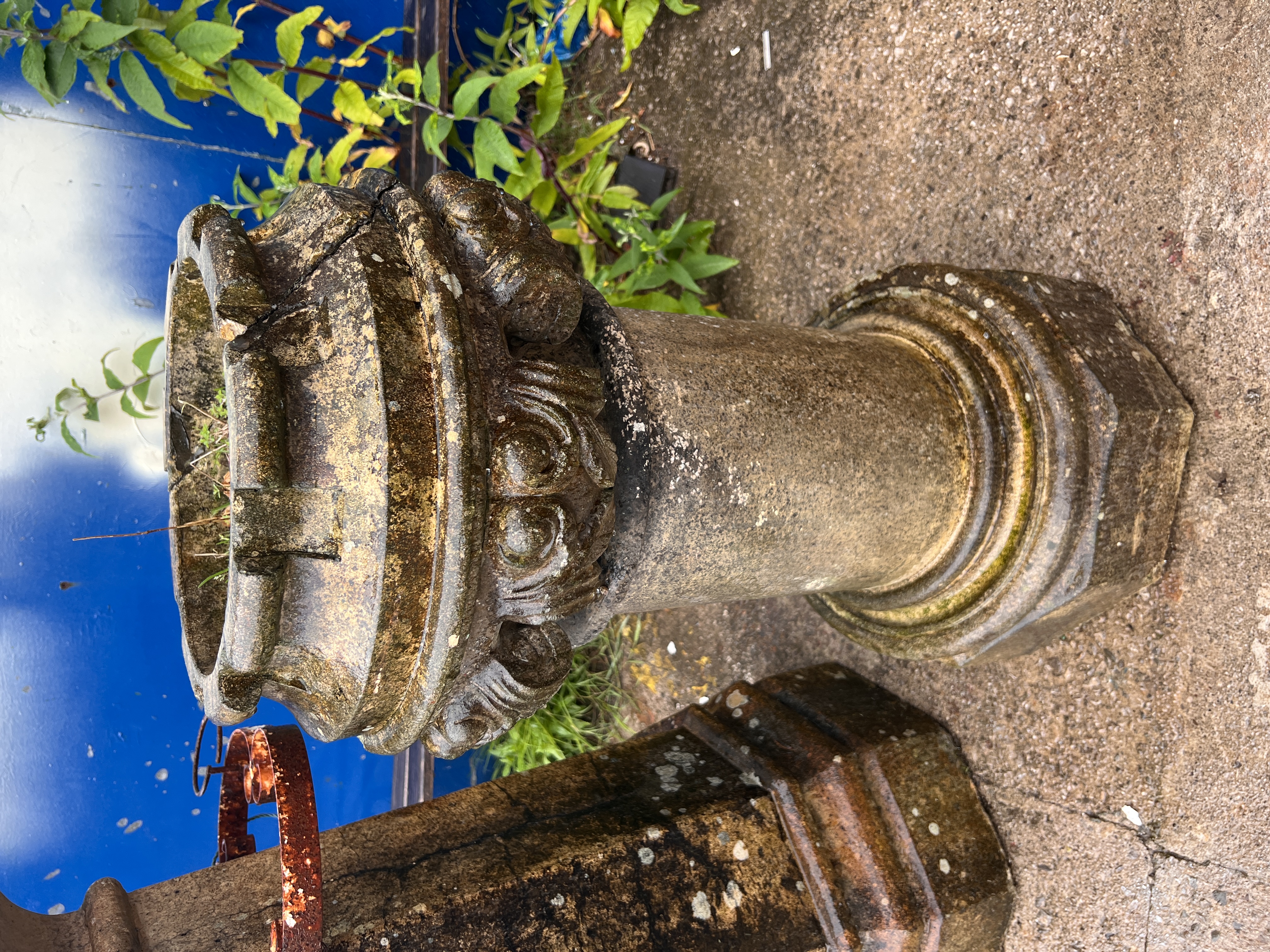 Two large architectural chimney pots, one having had repair. Largest pot 114cm tall.