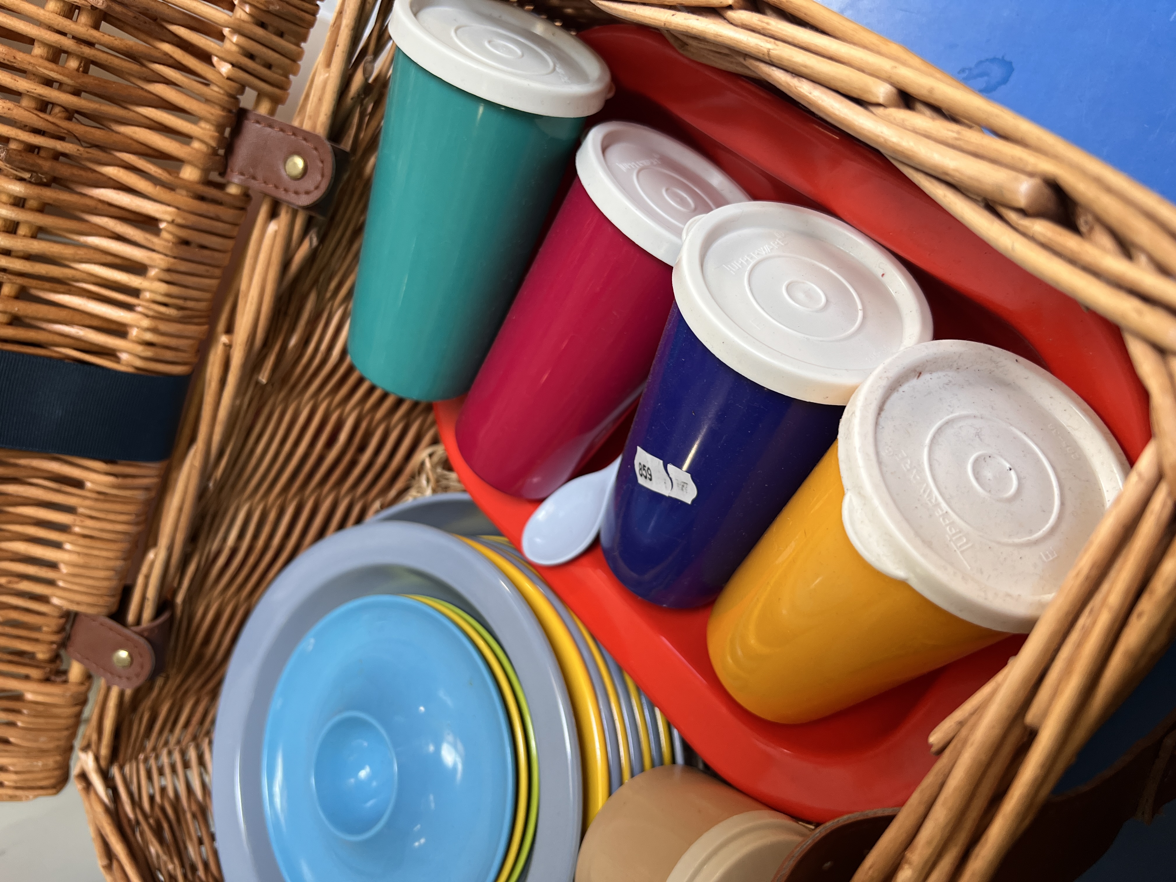 A vintage picnic set with Tupperware and Dallas ware.