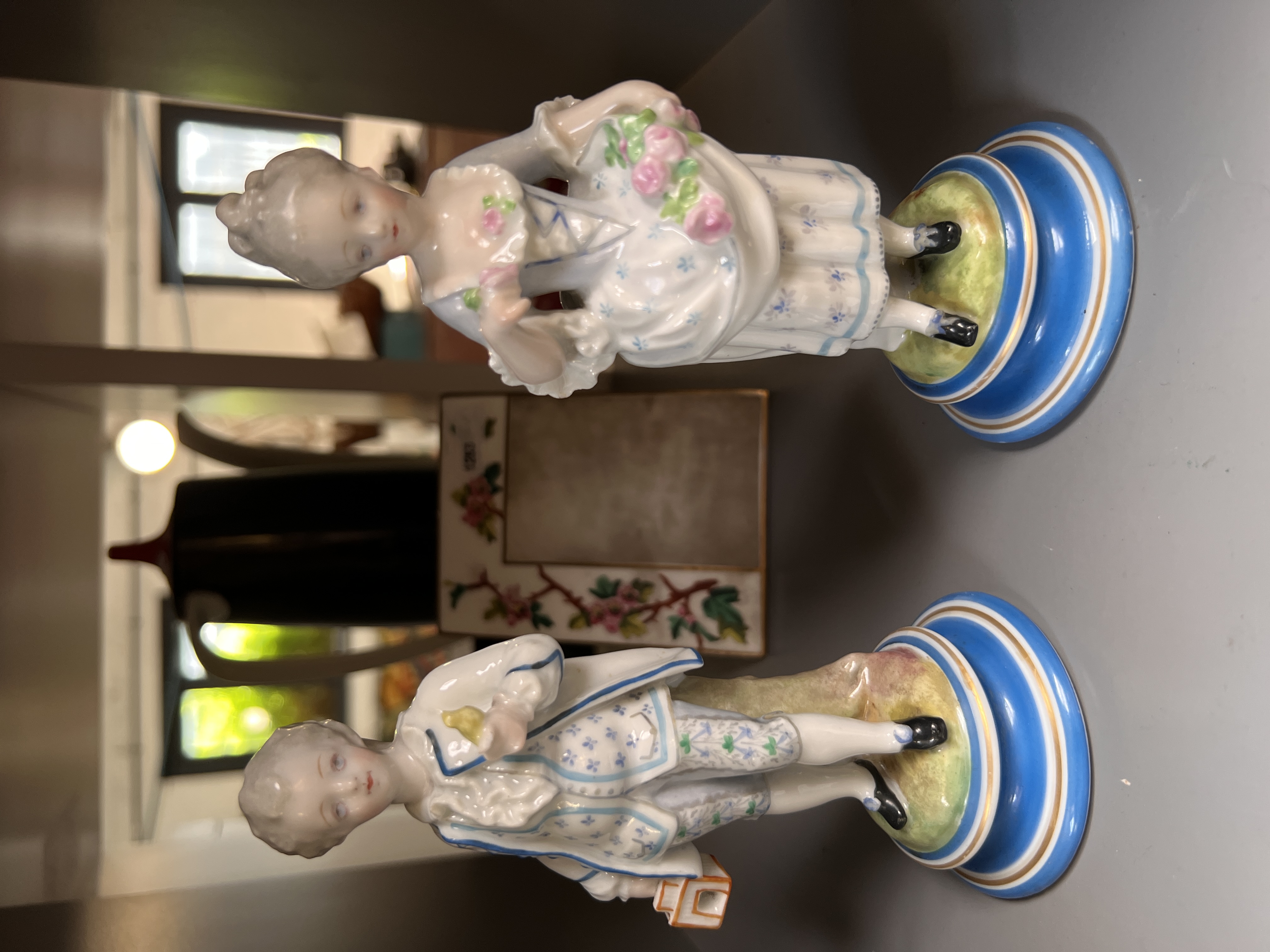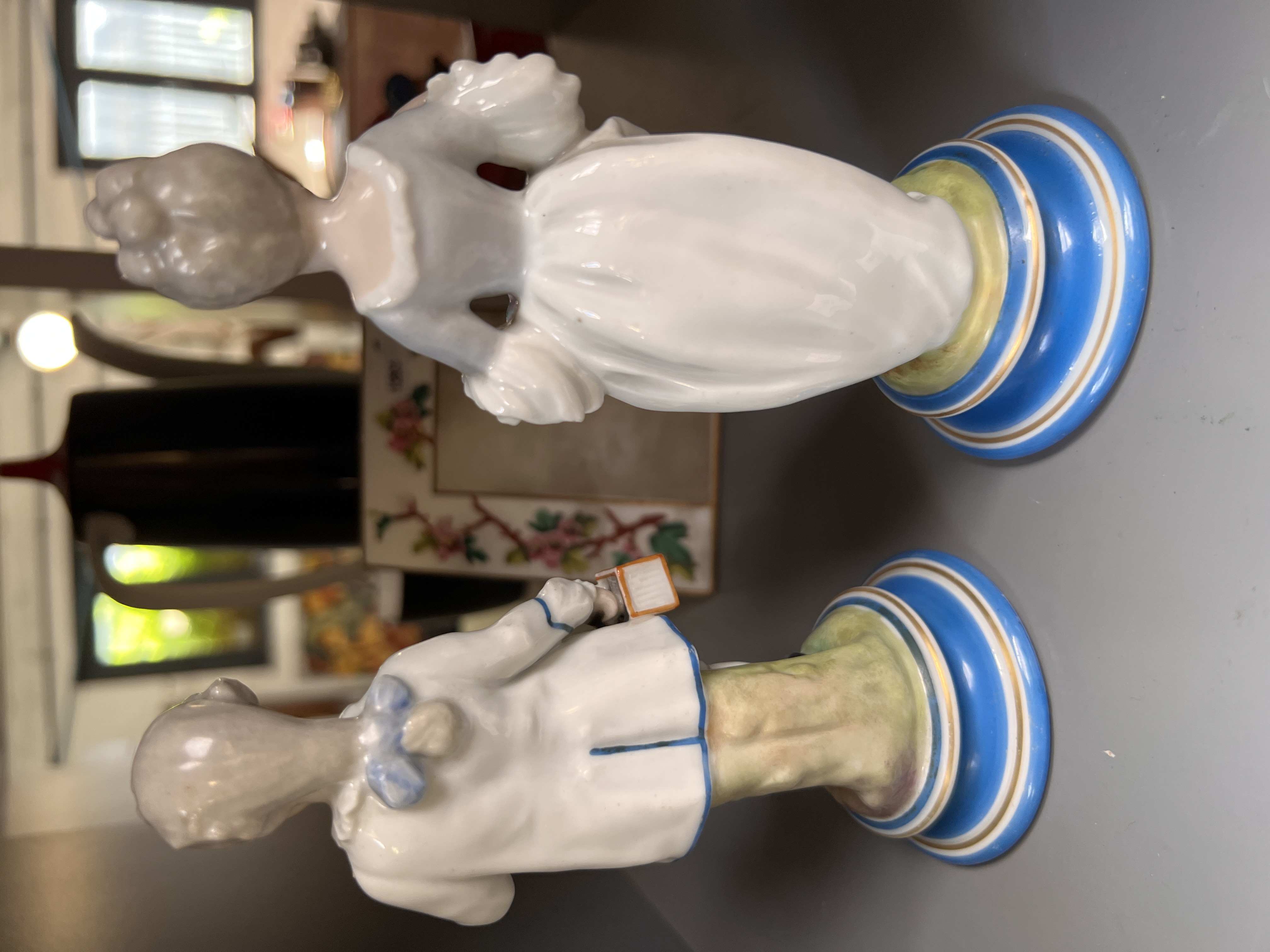 A pair of Victorian Dresden porcelain figures of bird catcher and flower picker. In perfect condition.
