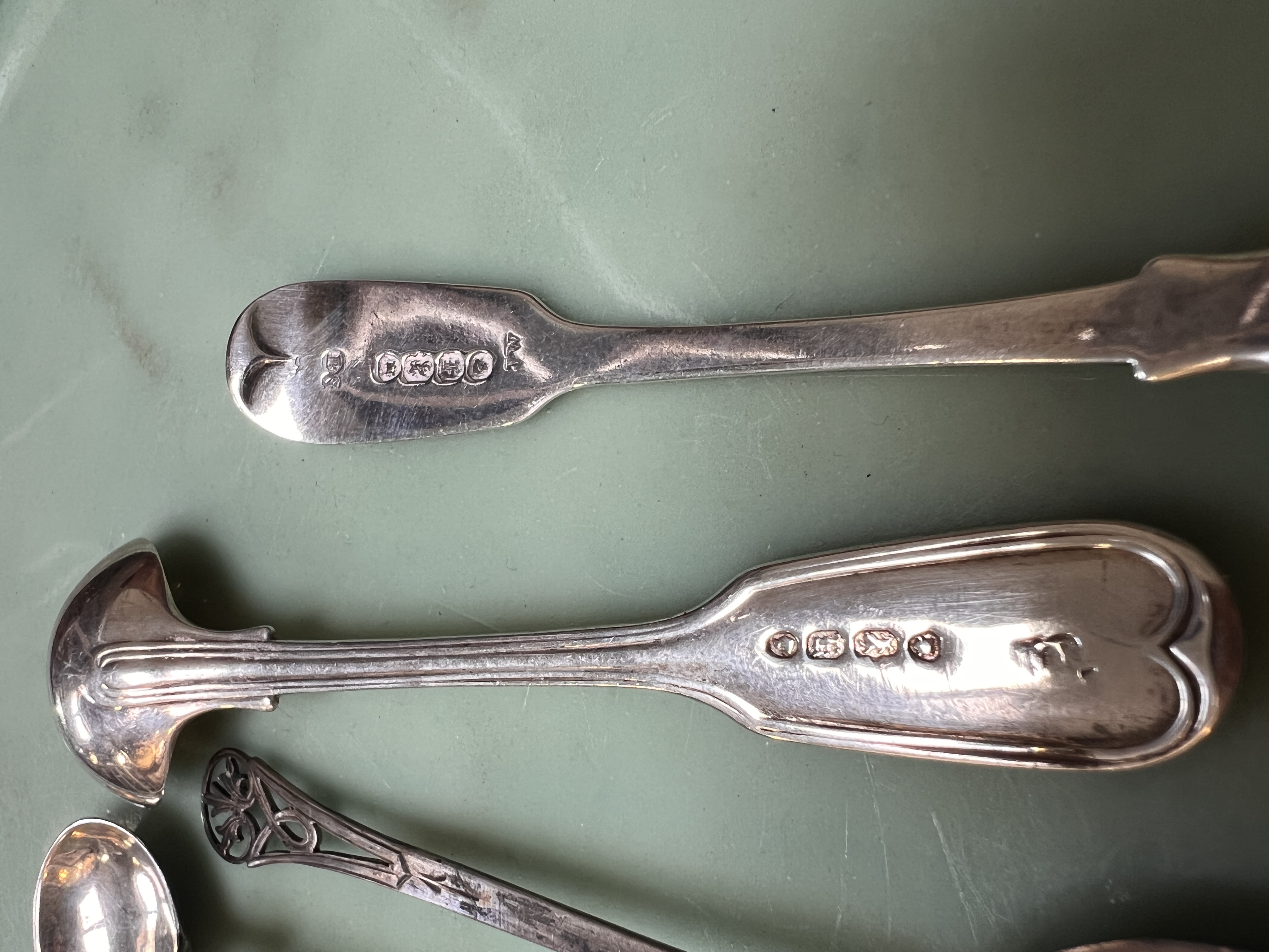 A selection of early 20th century HM silver tea and table salt spoons. 84g total.