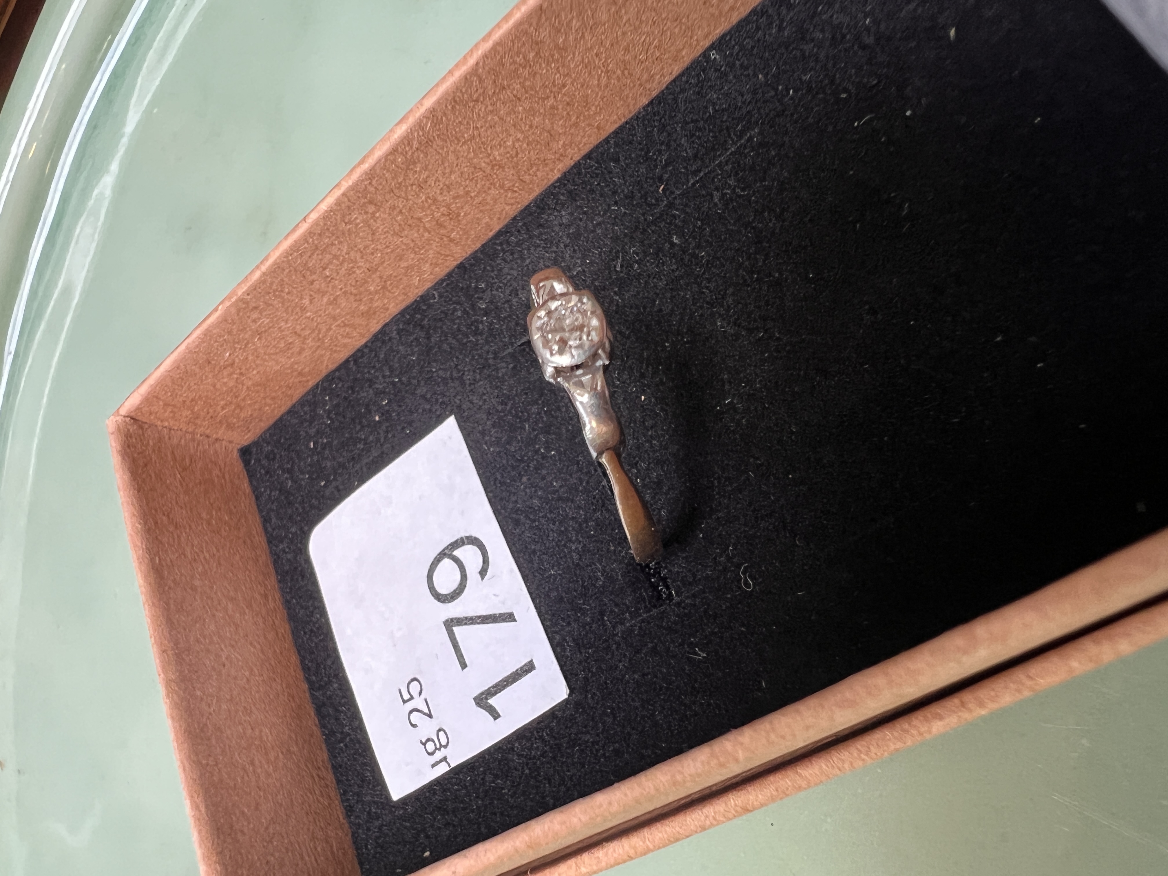 An early 20th century gold solitaire ring with old cut diamond, stamped 18kt. 1.83g total.