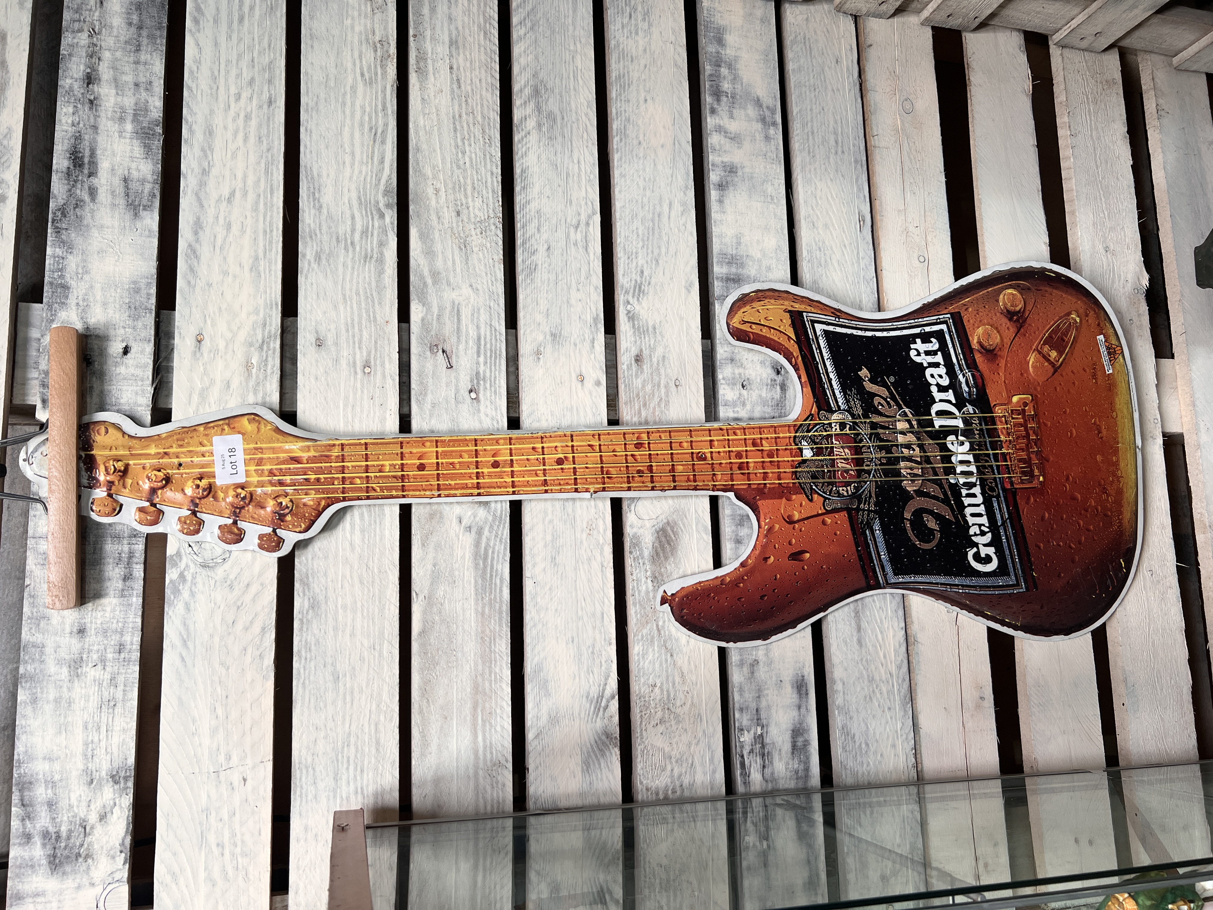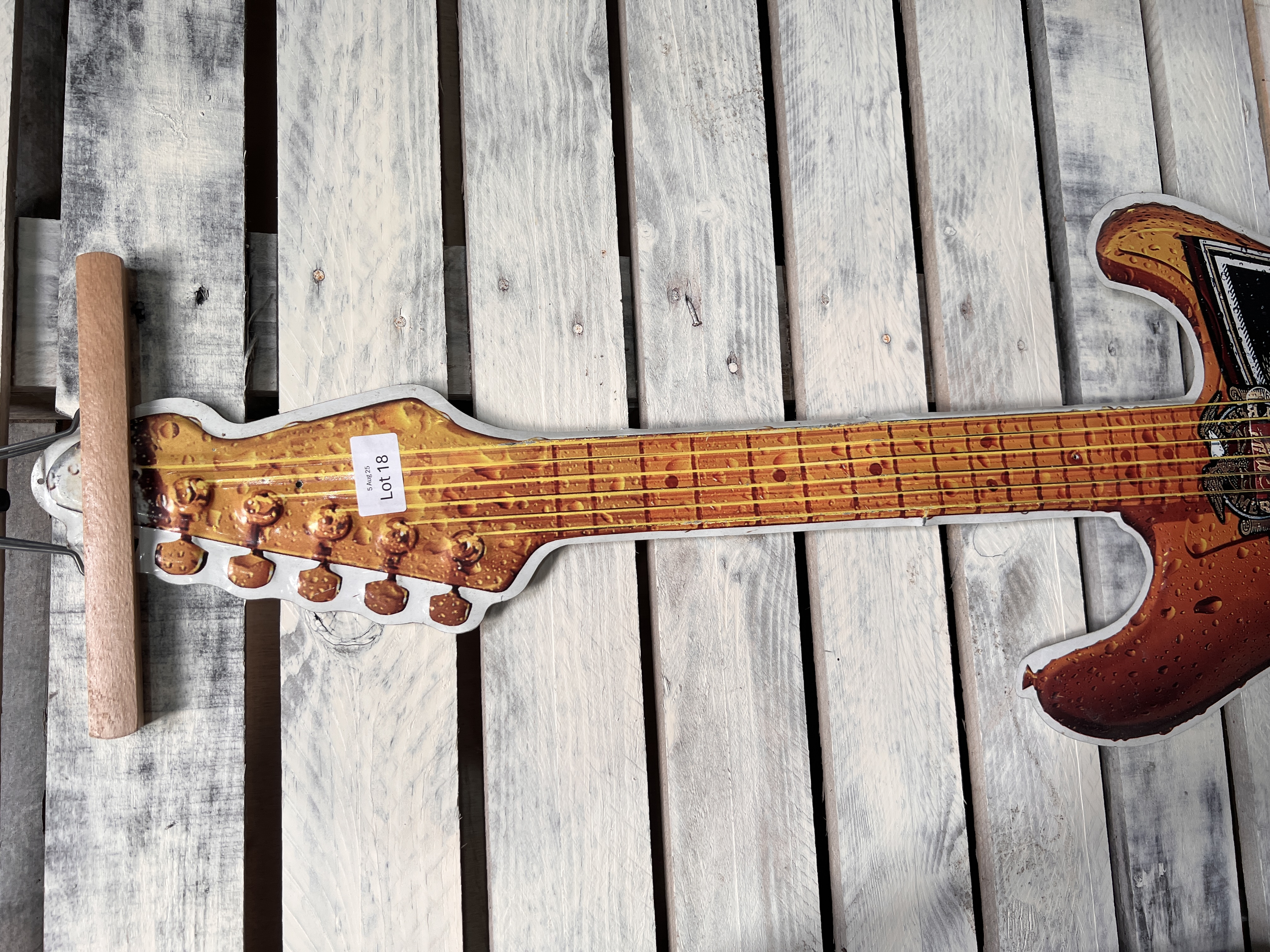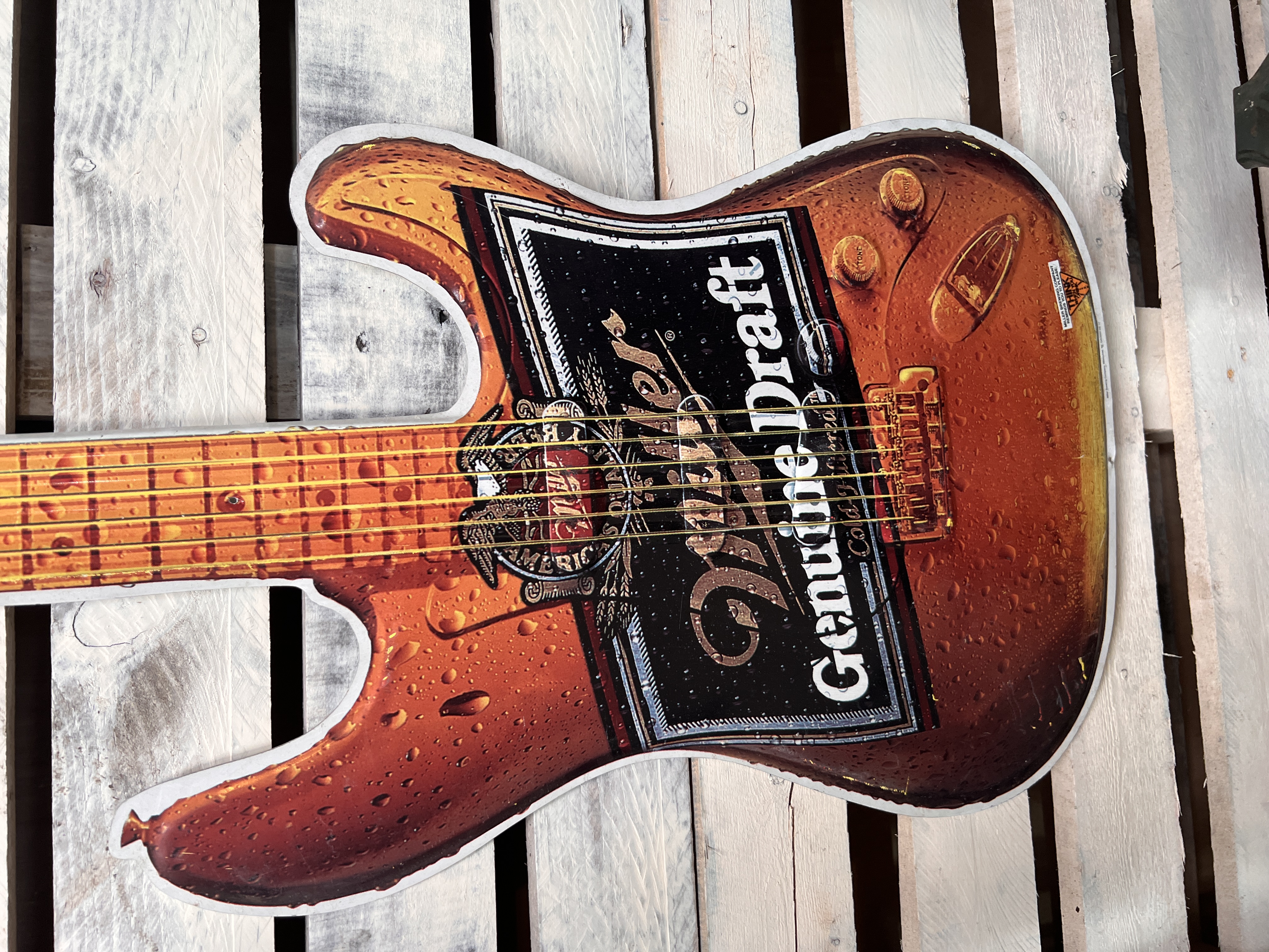 A Miller beer advertising sign pressed metal guitar. 120cm long
