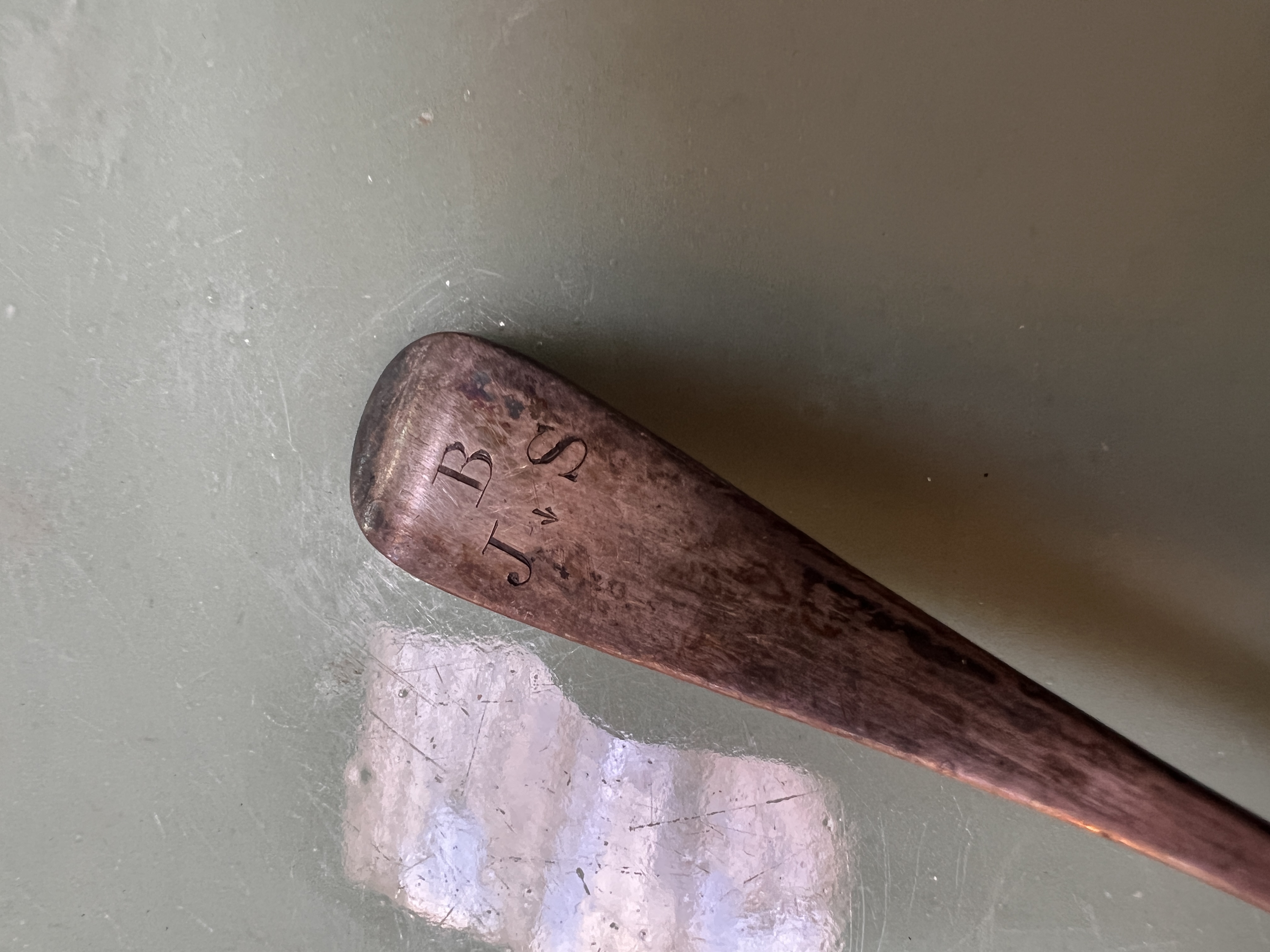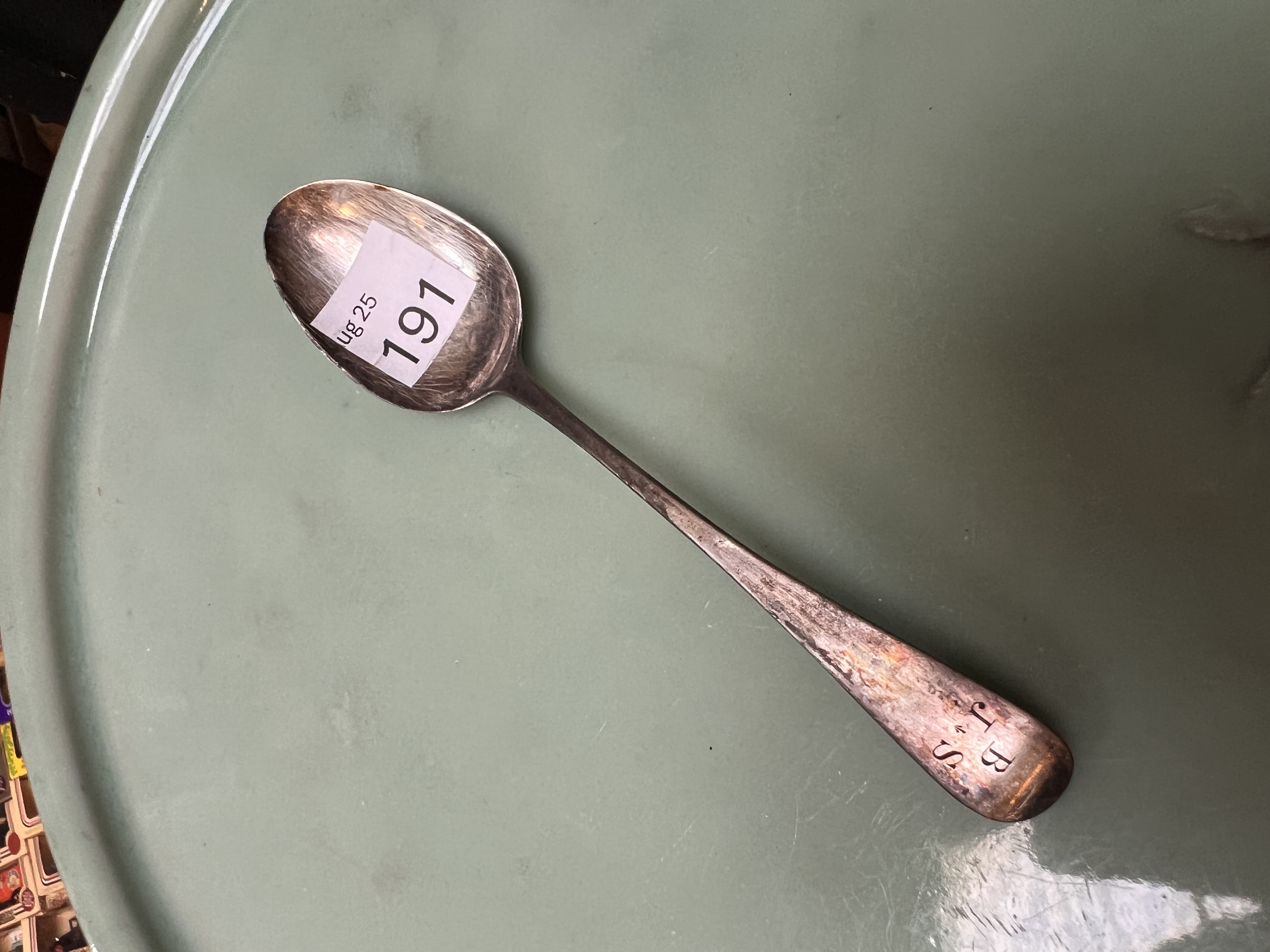 An early 20th century HM silver spoon bearing initials and military badge. 14g total
