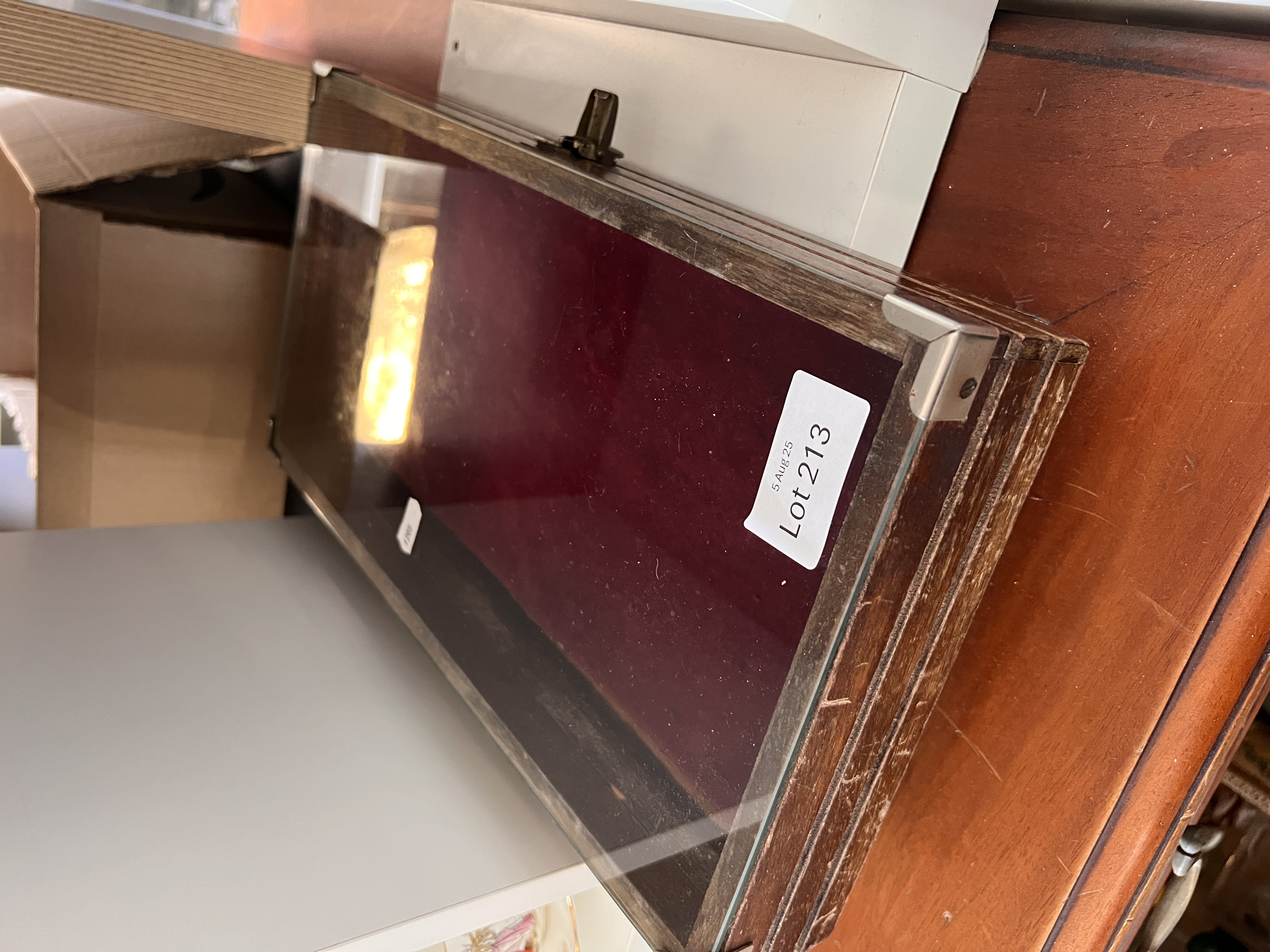 A vintage wood and glass top display case.
