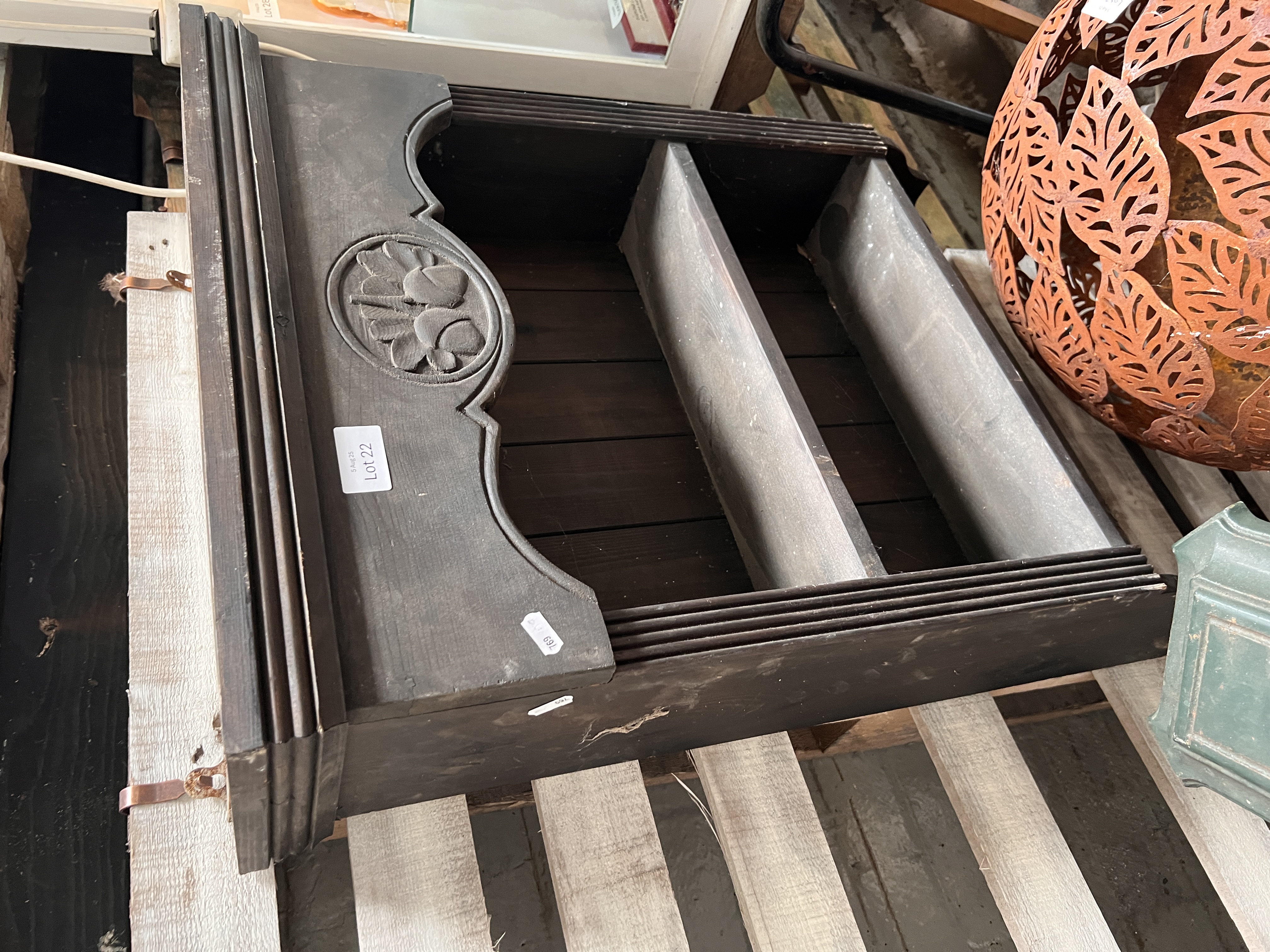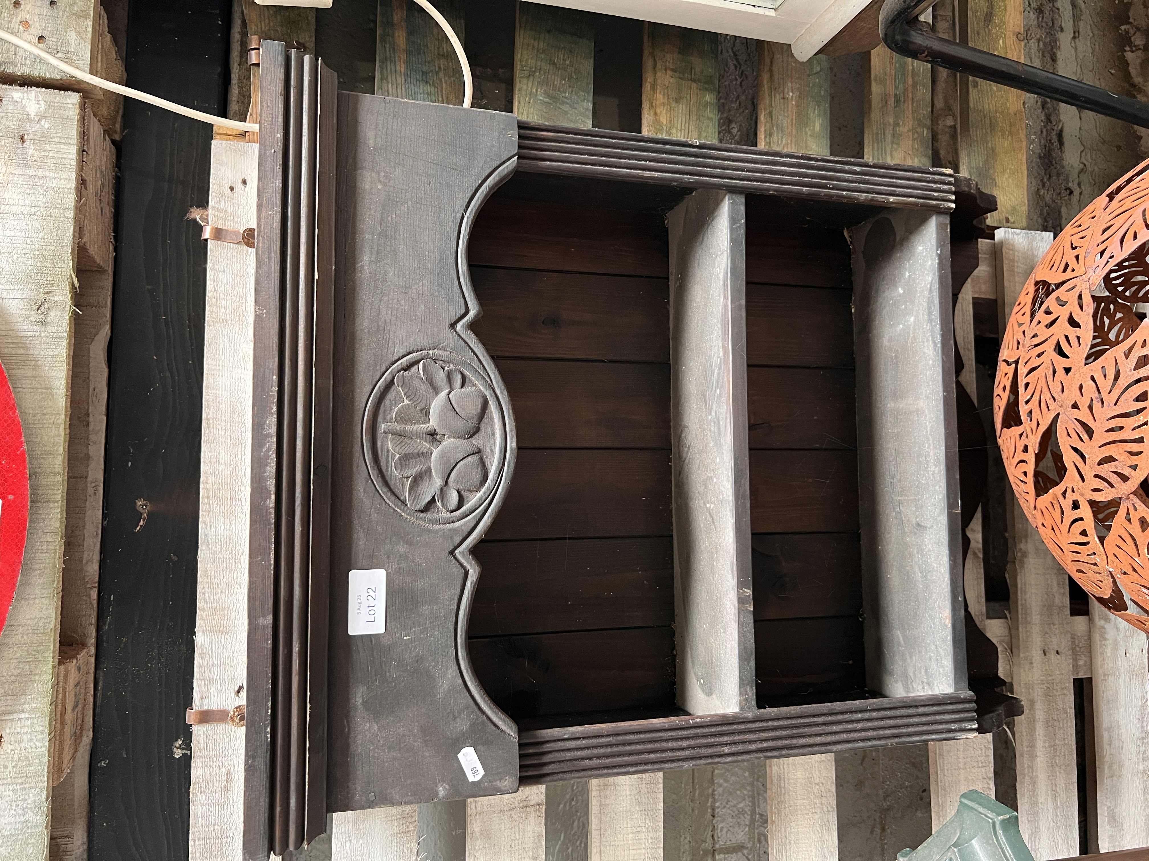 A vintage pine wall shelf 57cm wide 76cm tall.