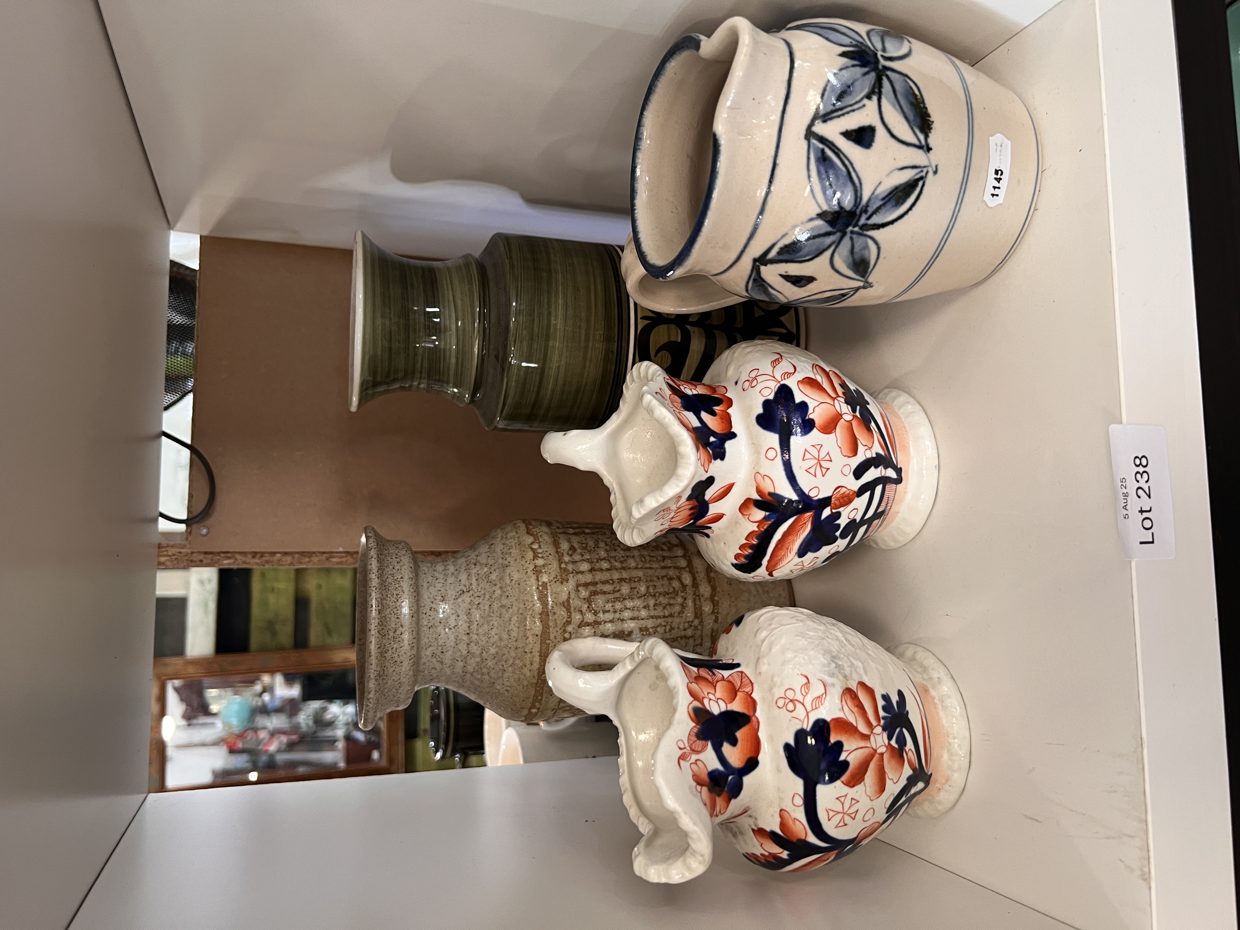 A selection of vintage jugs and vase including Jersey pottery.