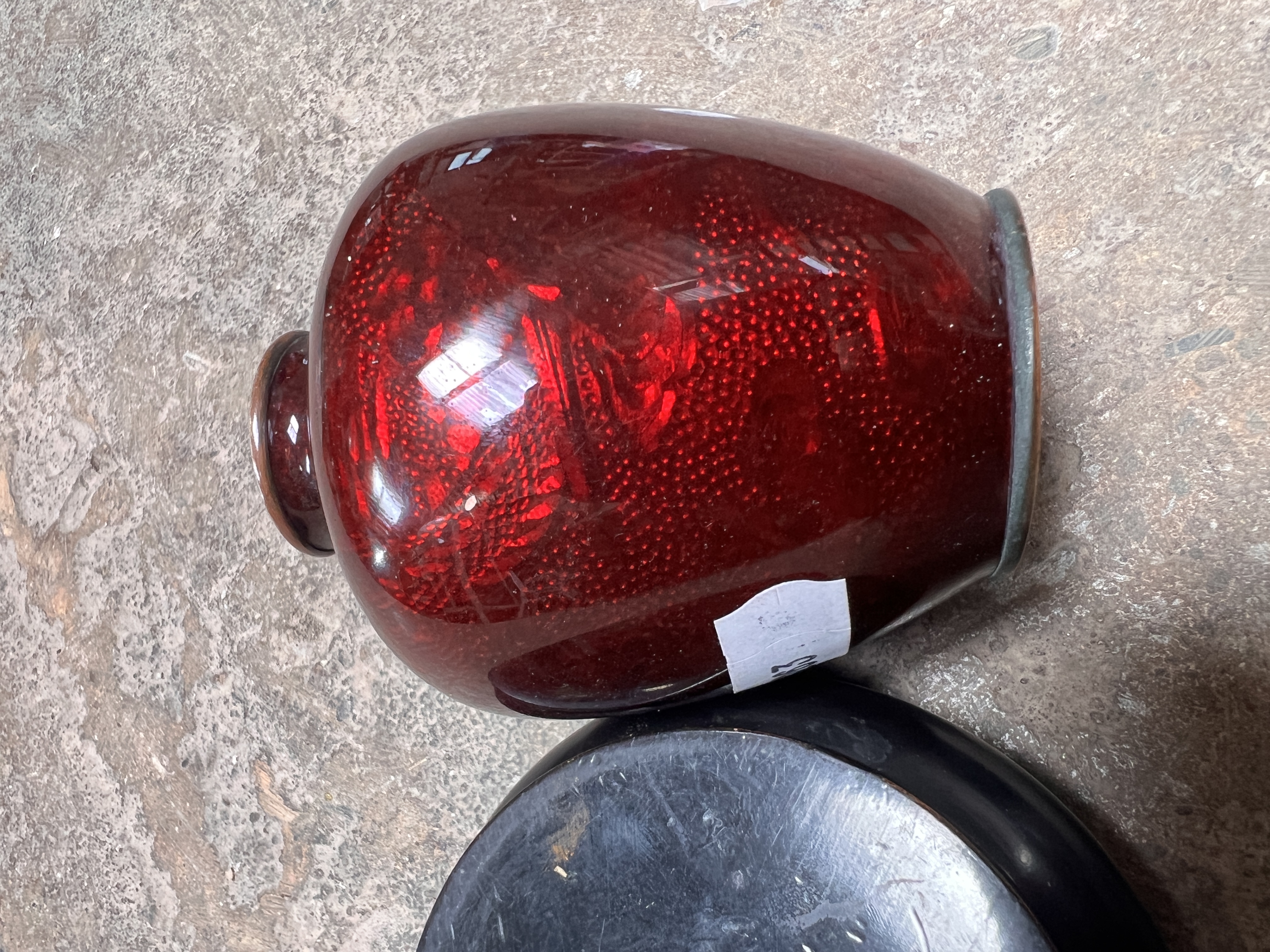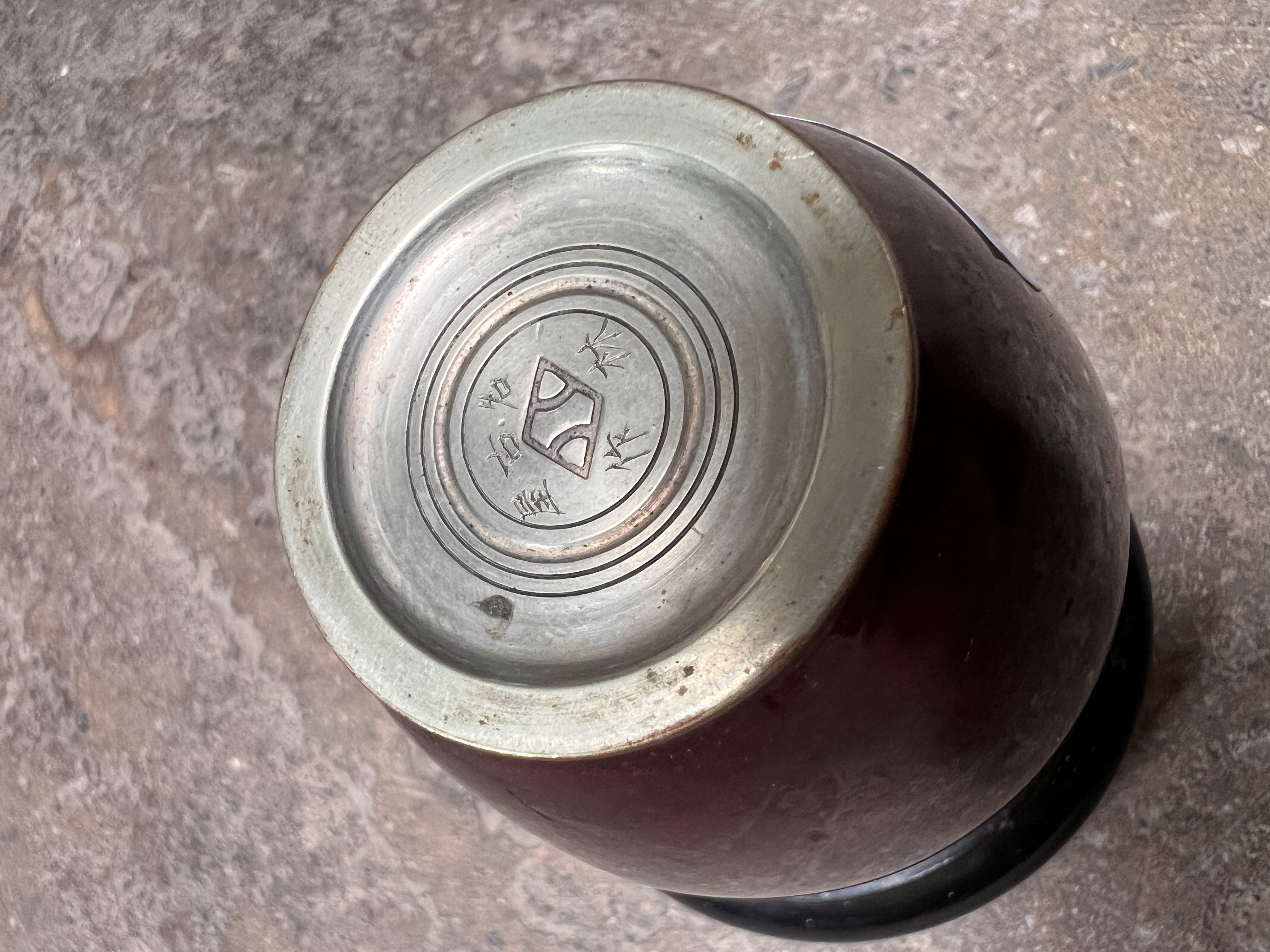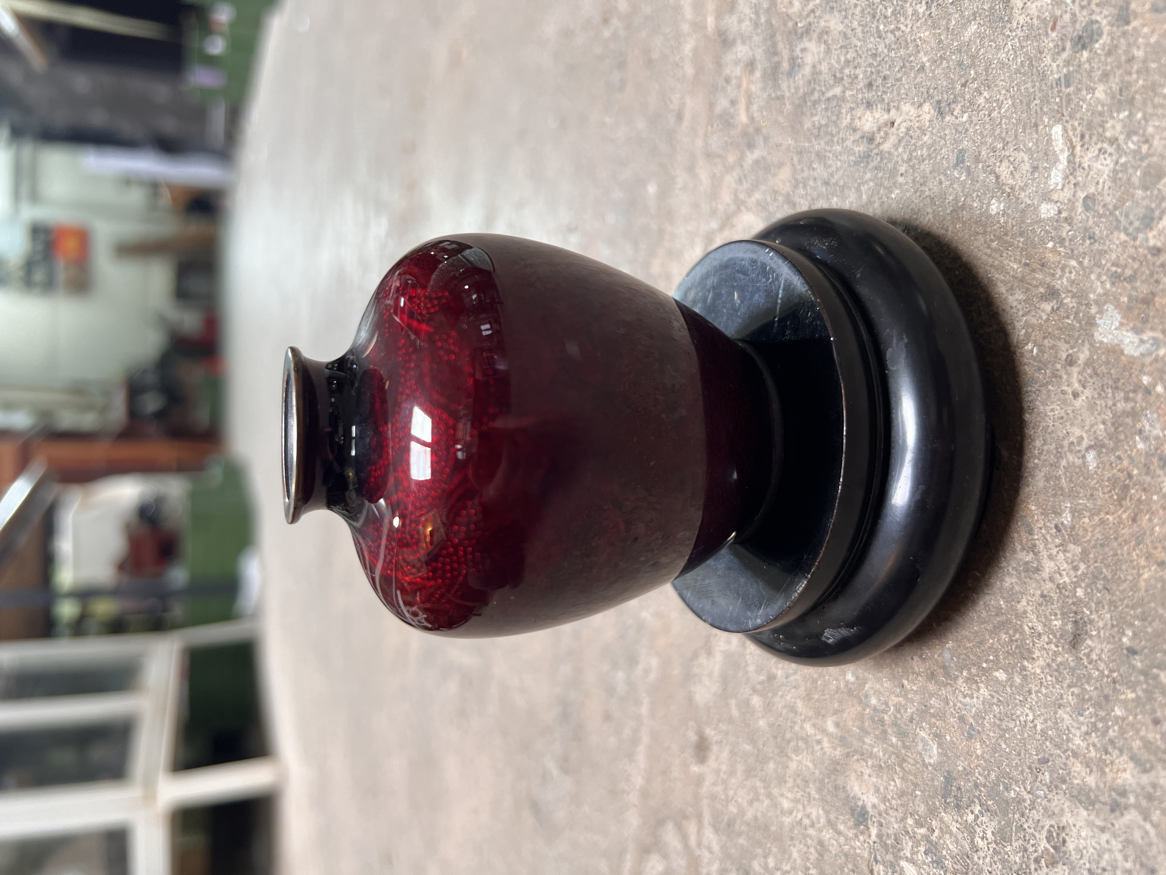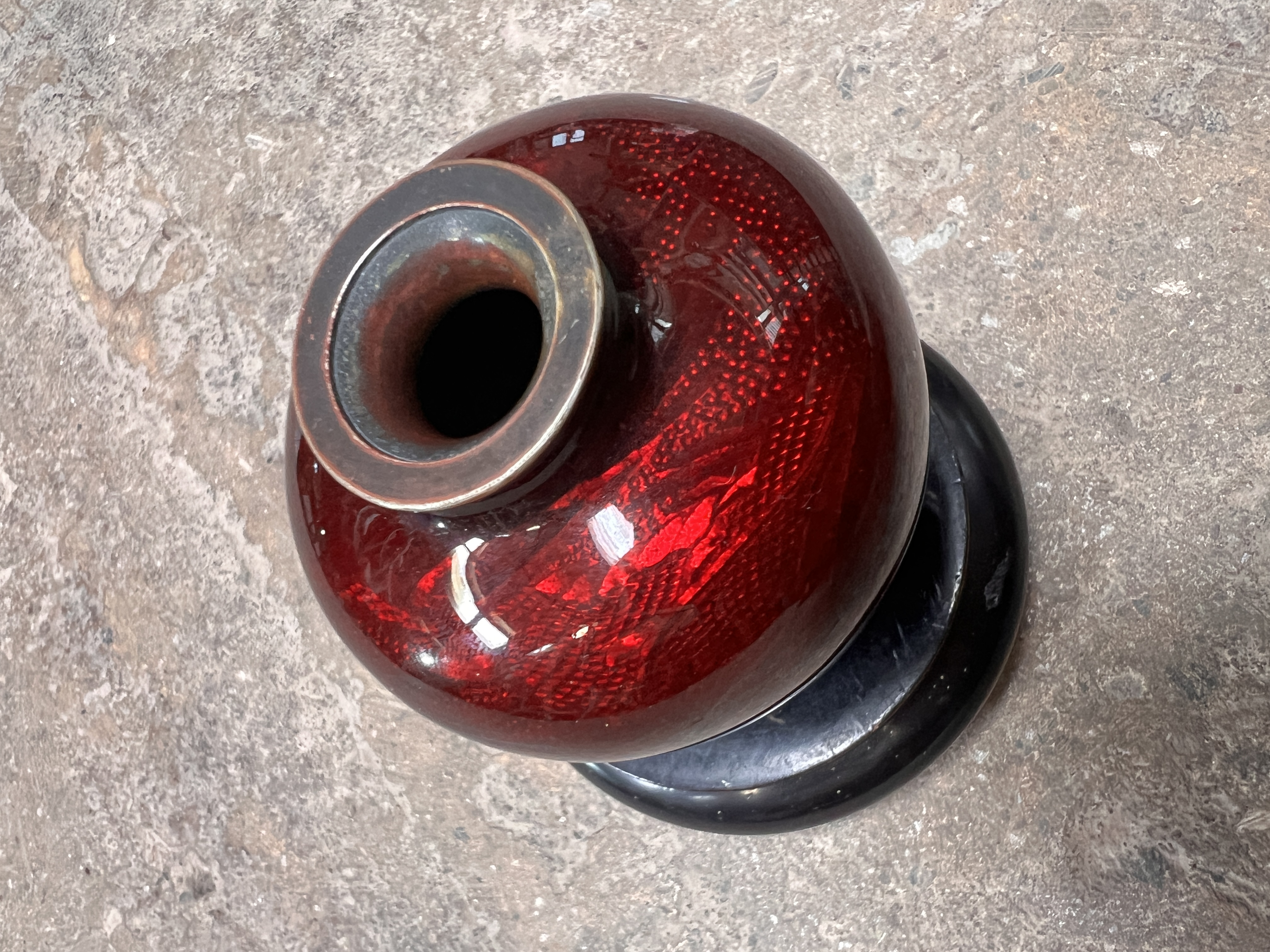 An antique Japanese Akasuke Ginbari Cloisonne squat vase bearing seal mark to base. Decorated with double dragons. 8cm tall.