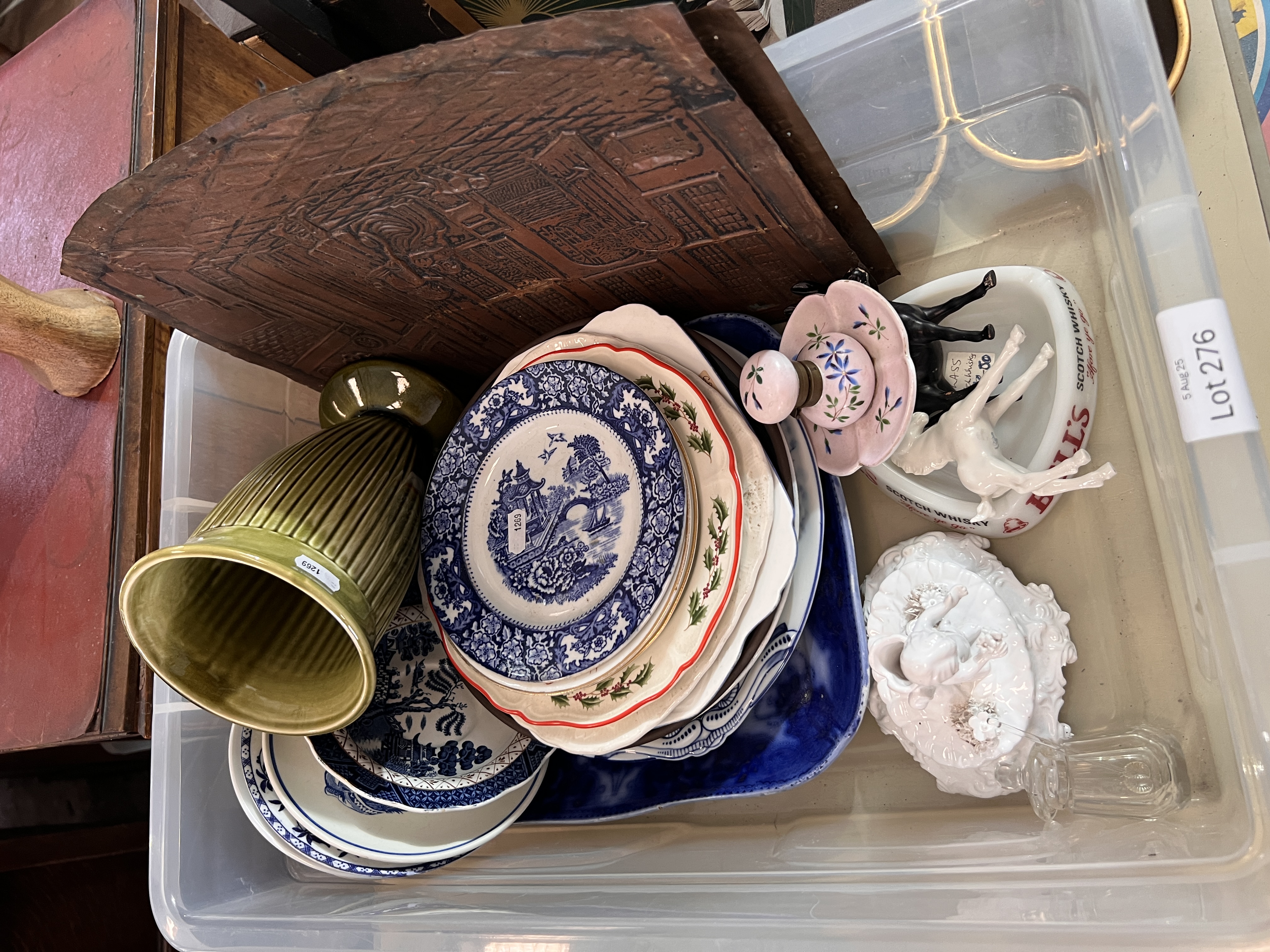 A selection of ceramics and pressed copper plaques.