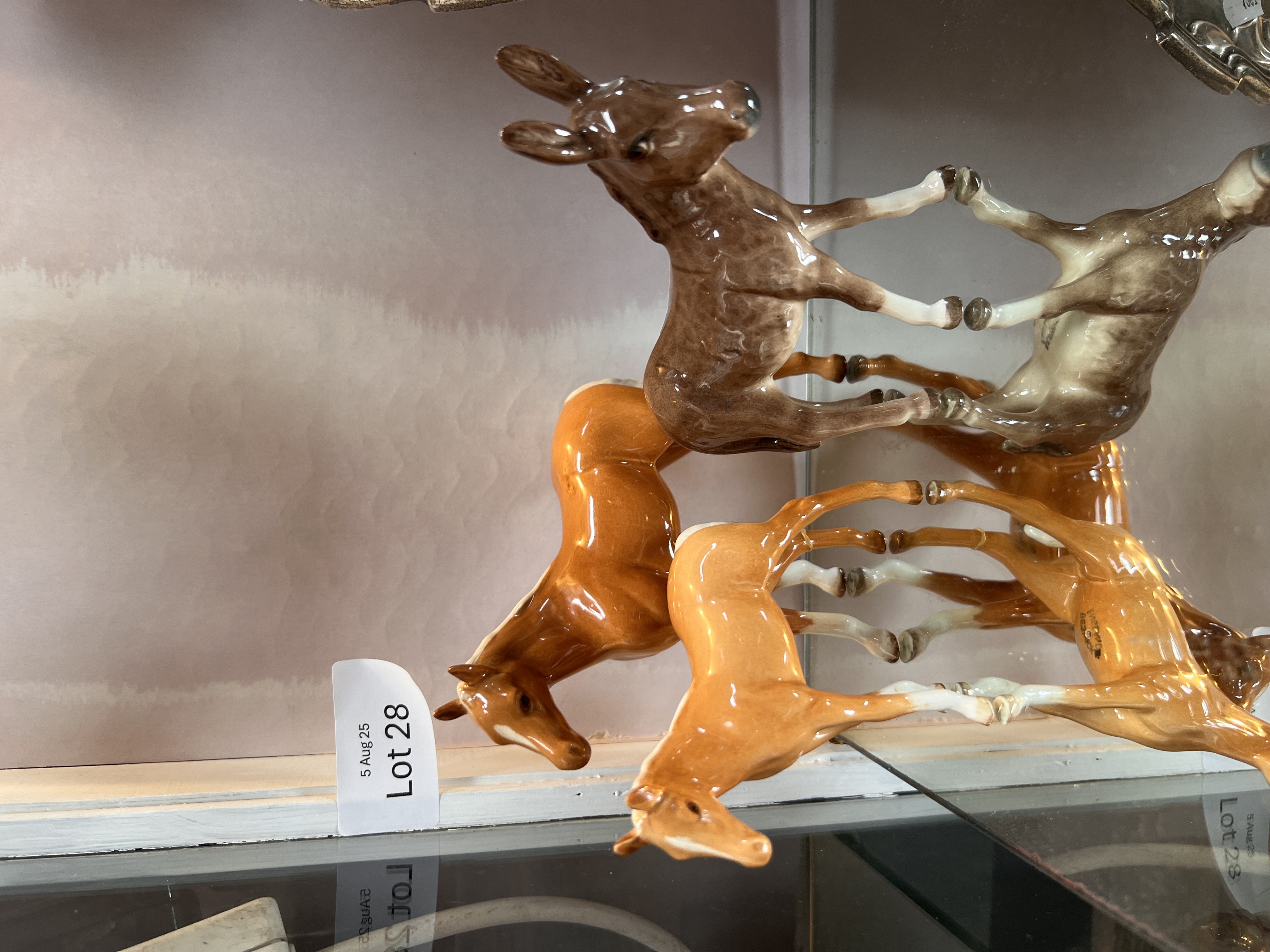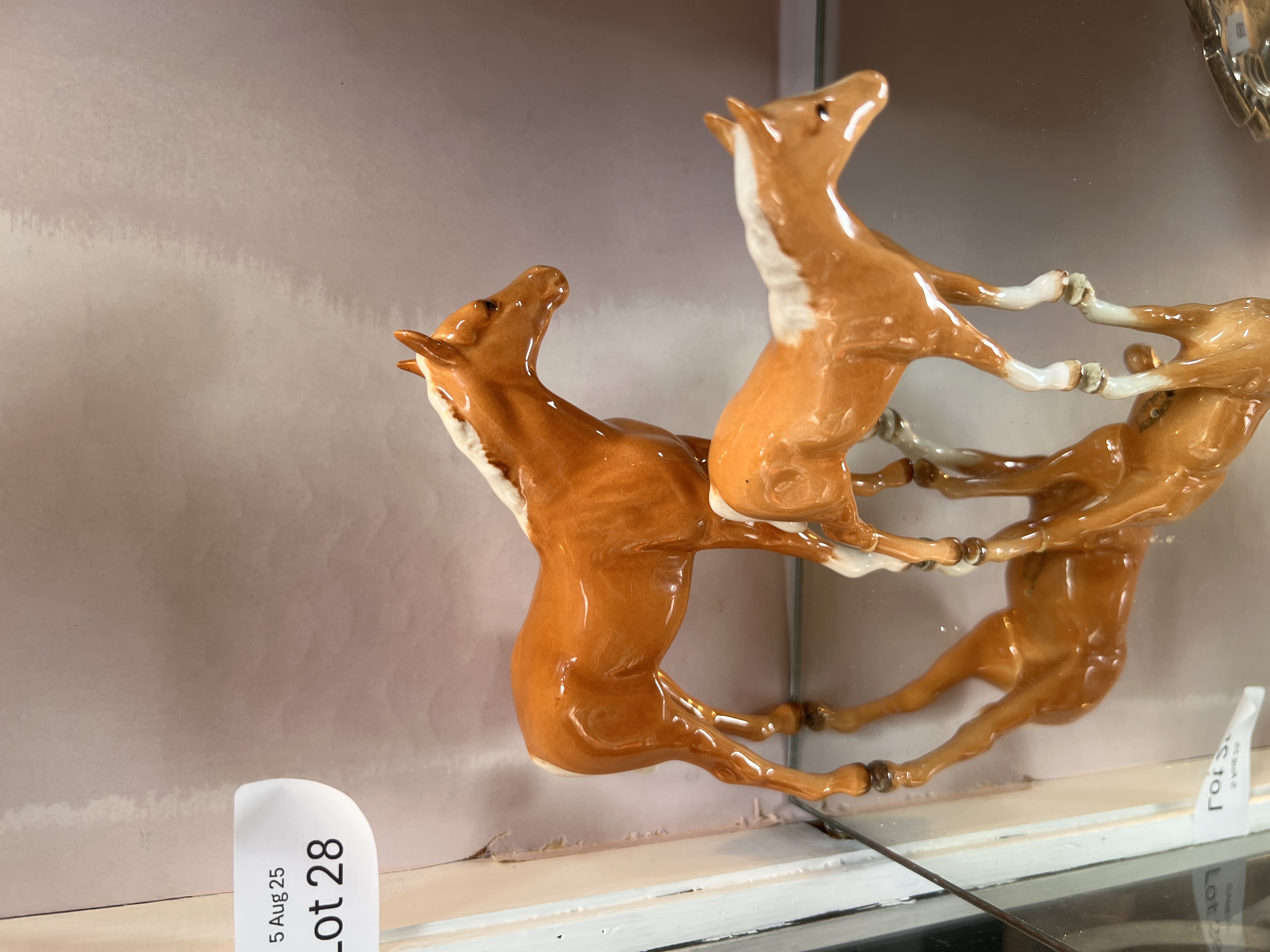Three Beswick figure studies including Palomino pony, Donkey and Foal having had repair to leg.