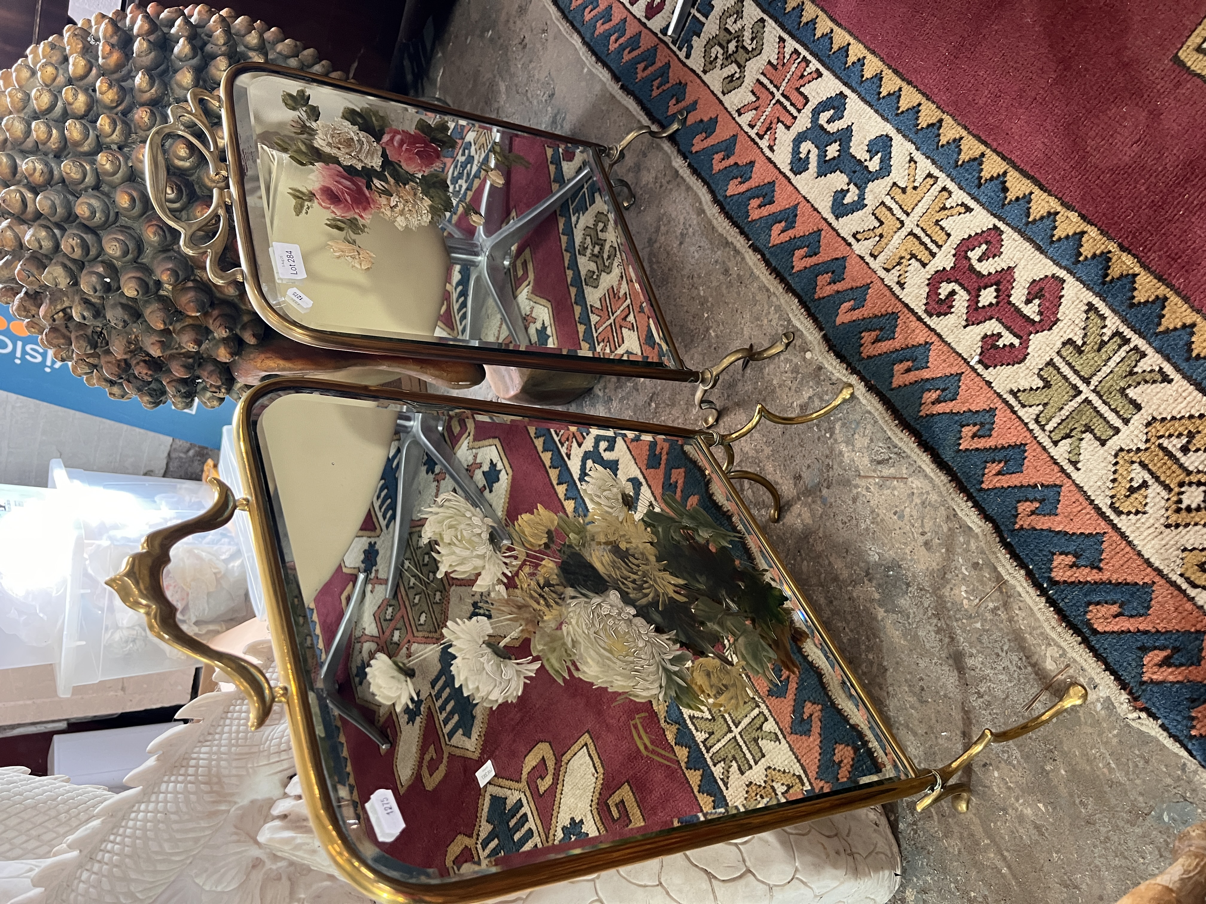 A pair of Victorian Art Nouveau mirror back and brass fire screens.