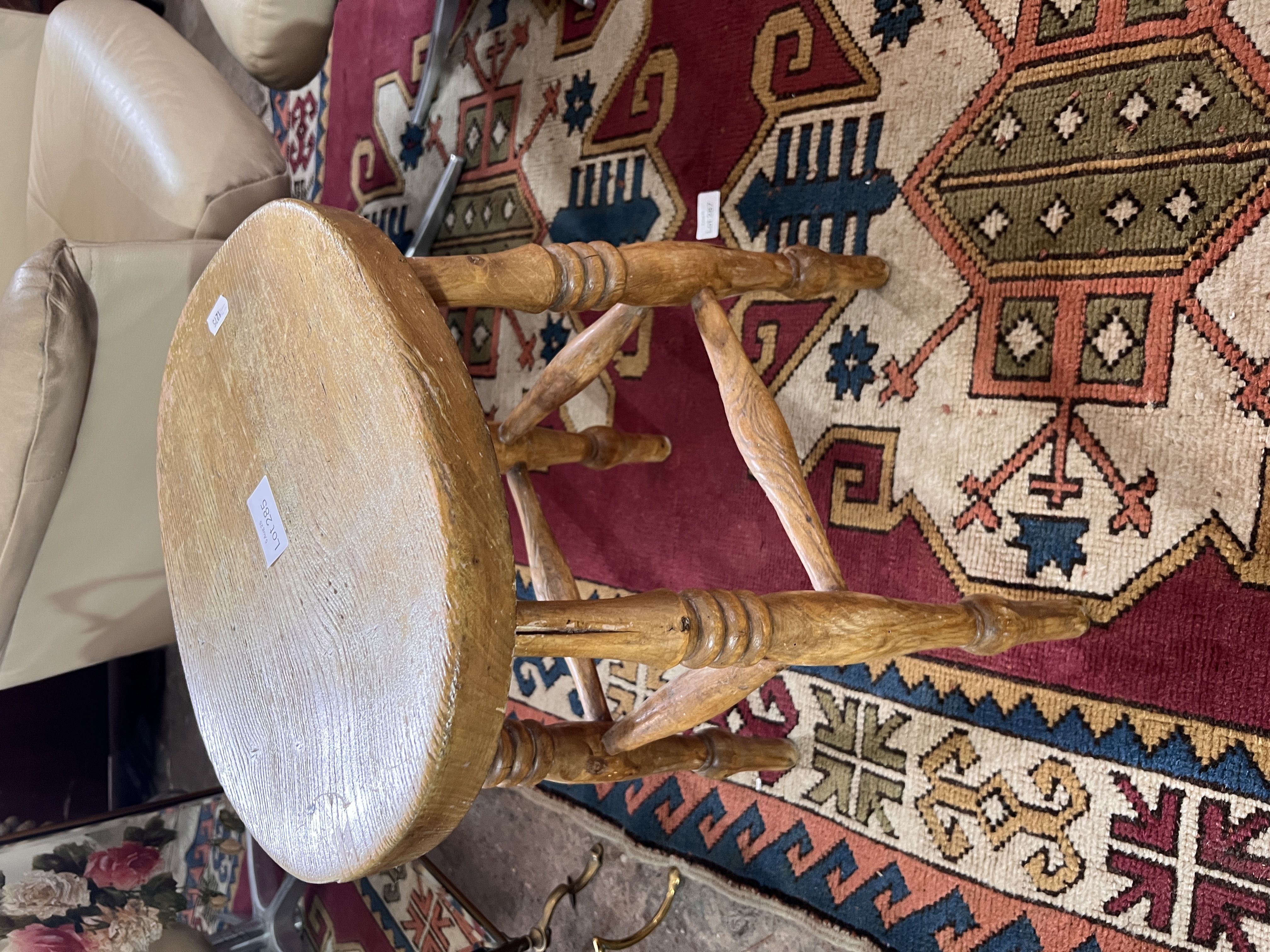 A vintage limed oak stool.