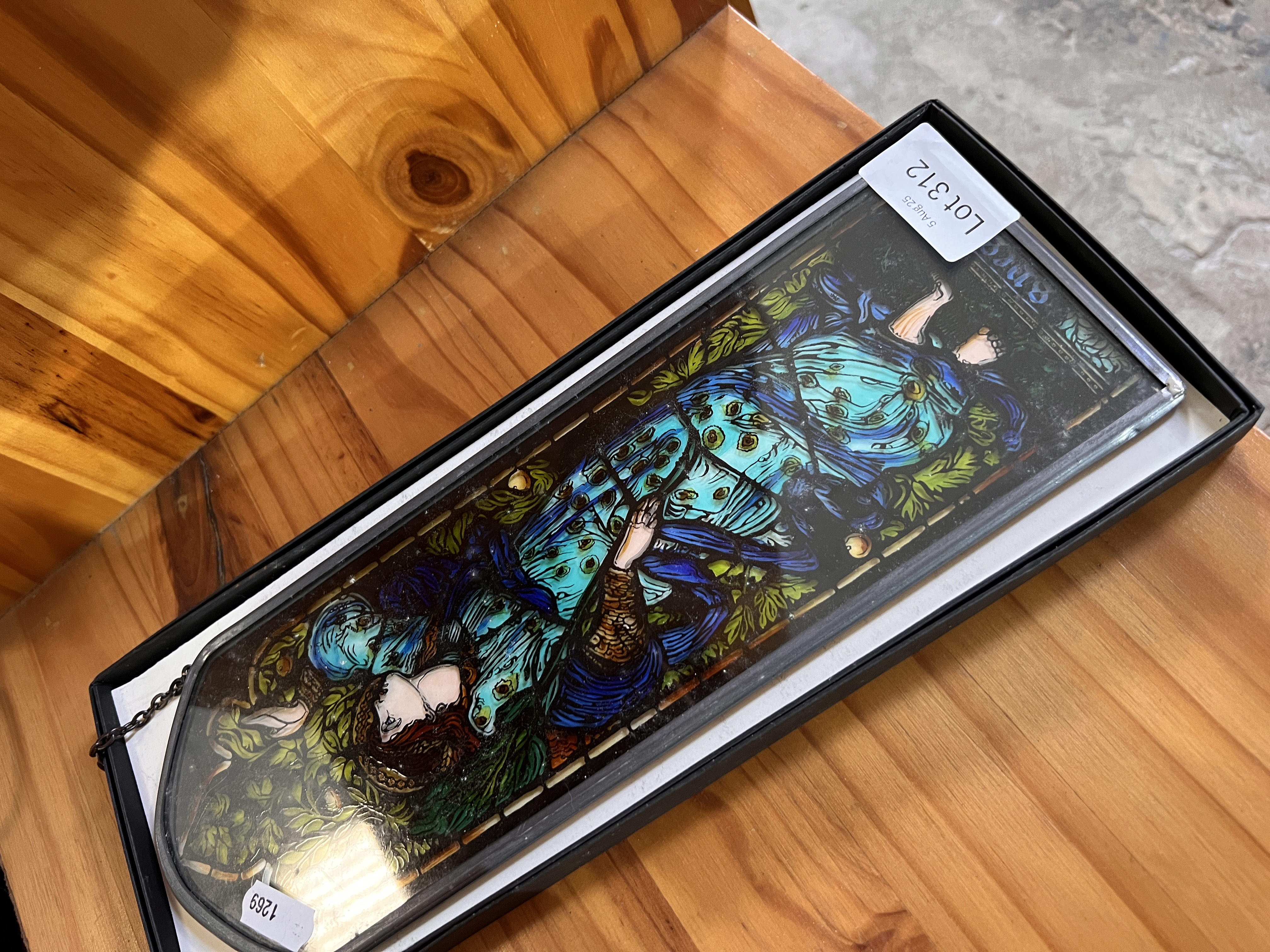 A modern small stained glass window panel.