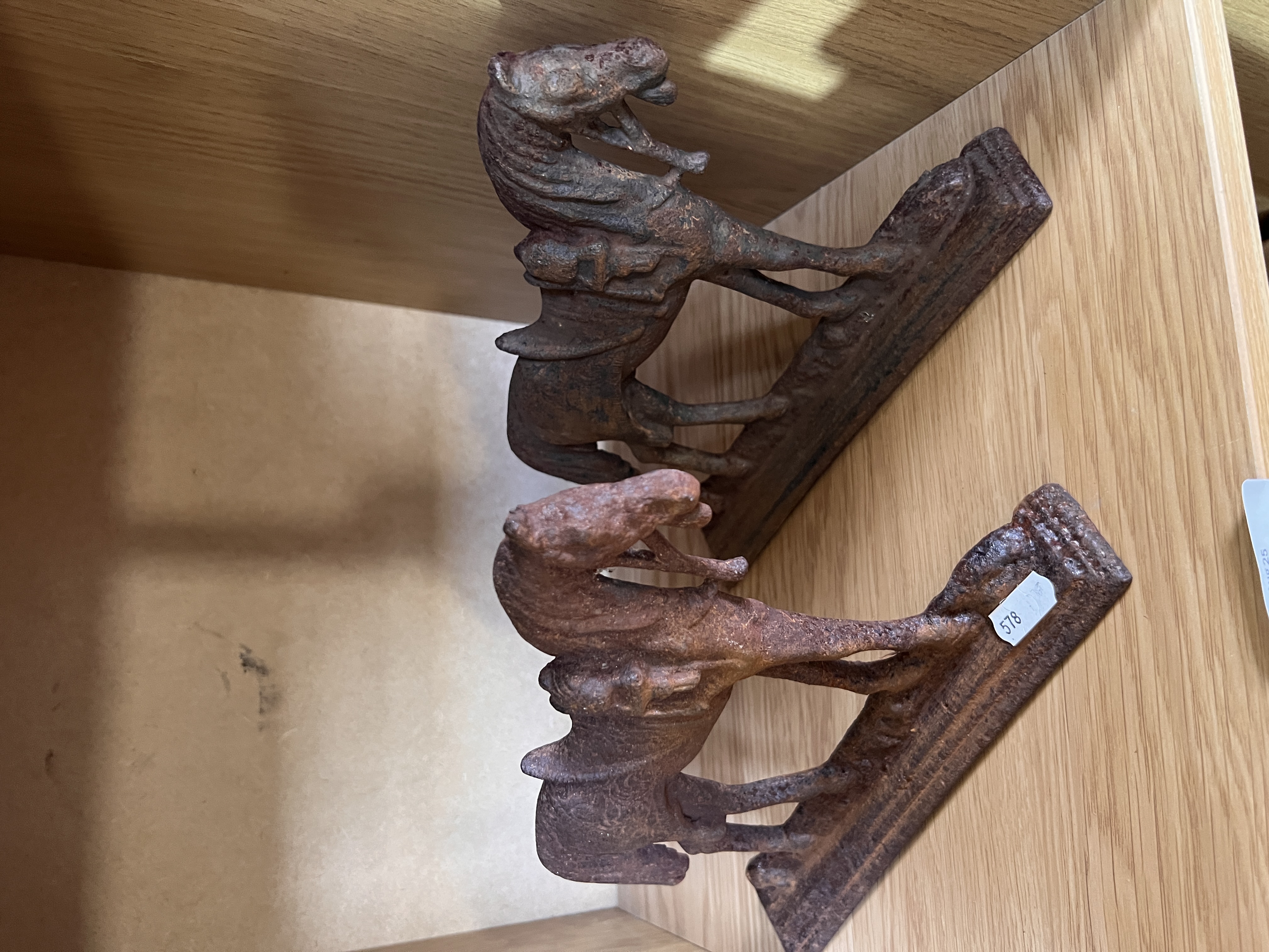 A pair of cast iron horse figure door stops.