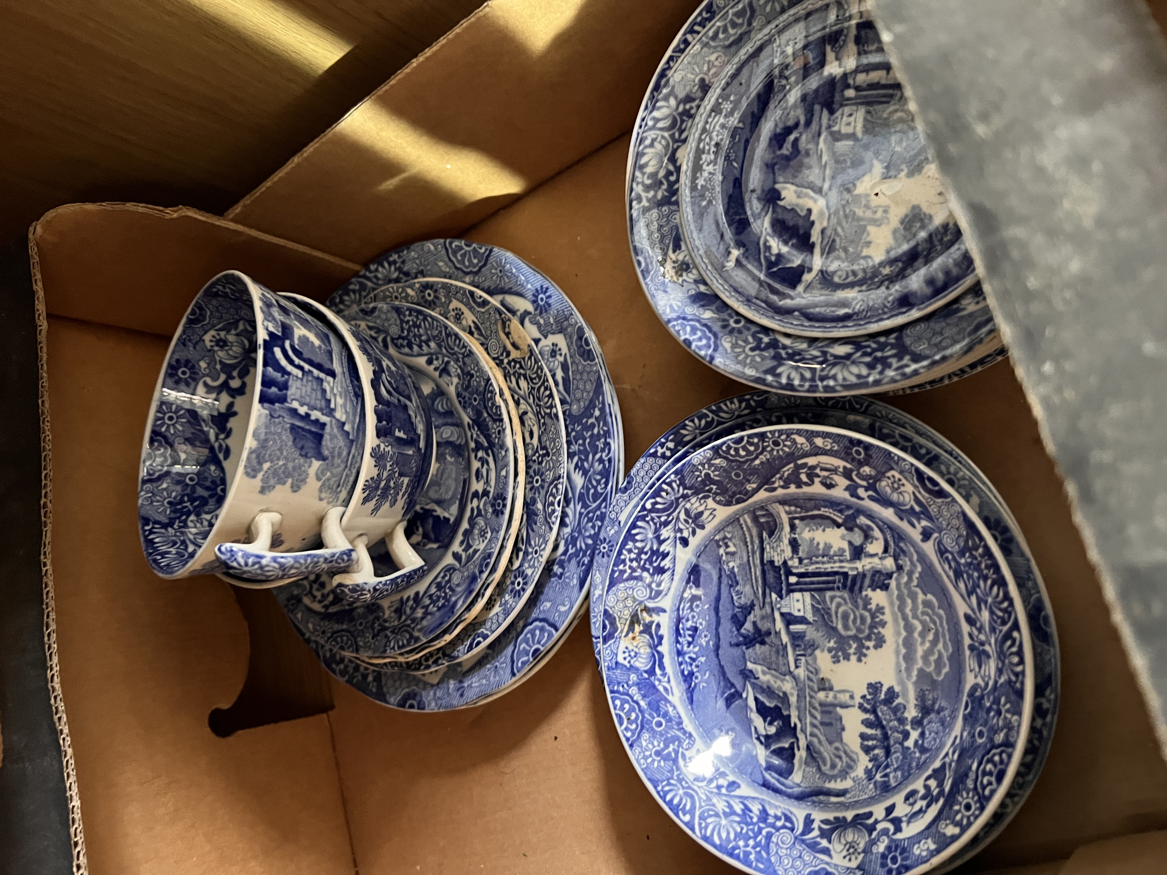 A selection of Spode Italian pattern cups and saucers.