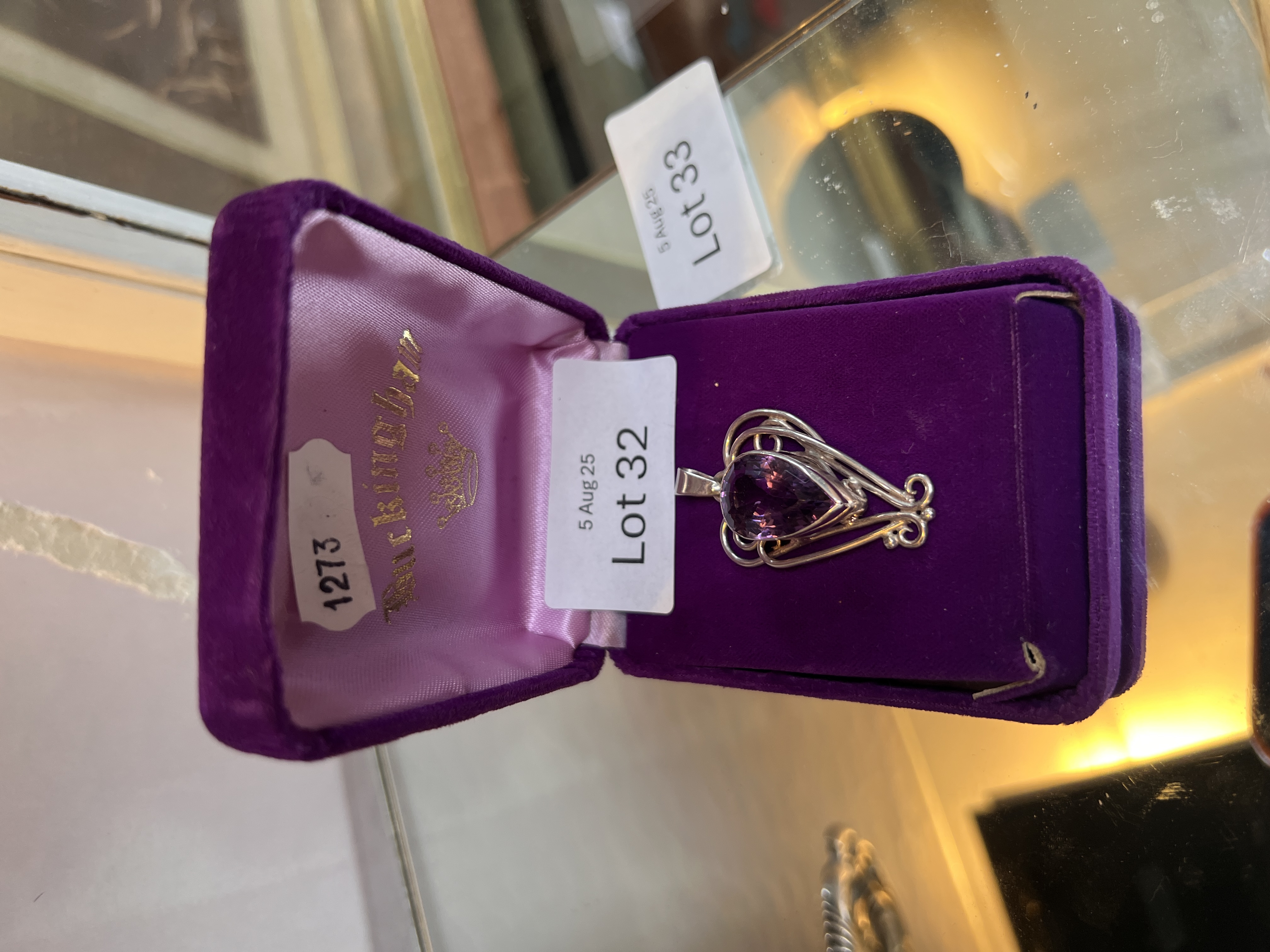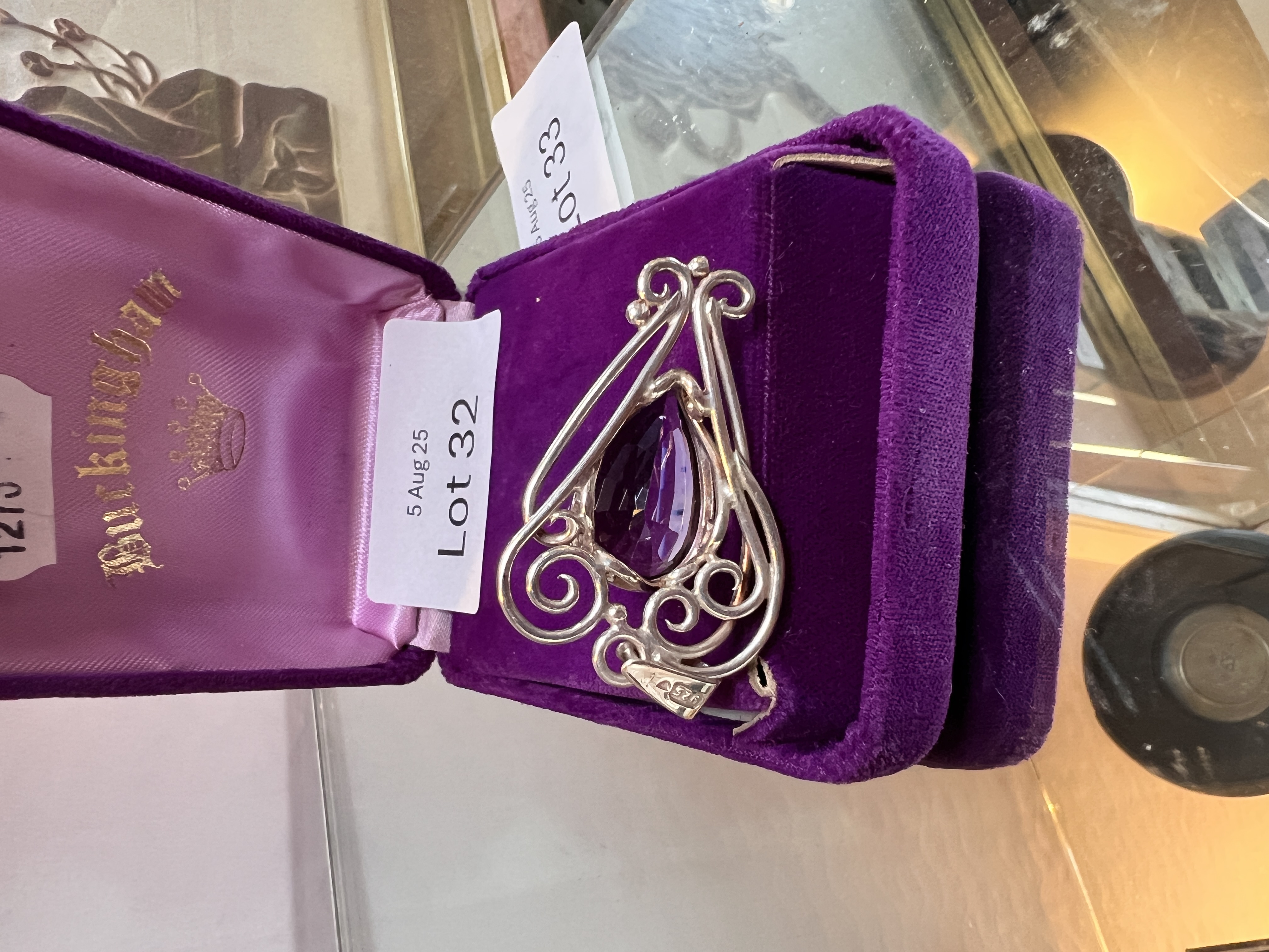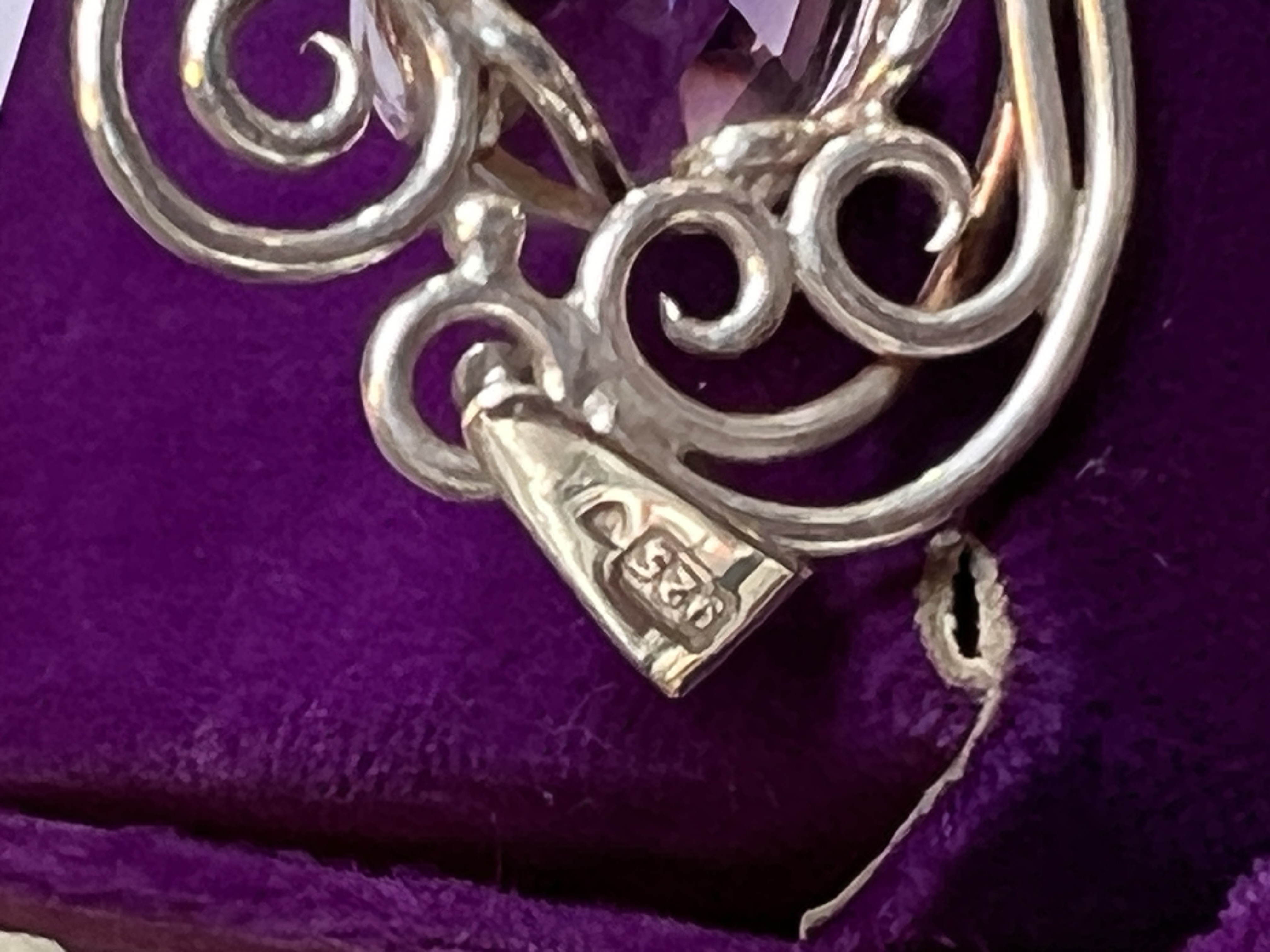 A 925 silver necklace pendant with large amethyst.