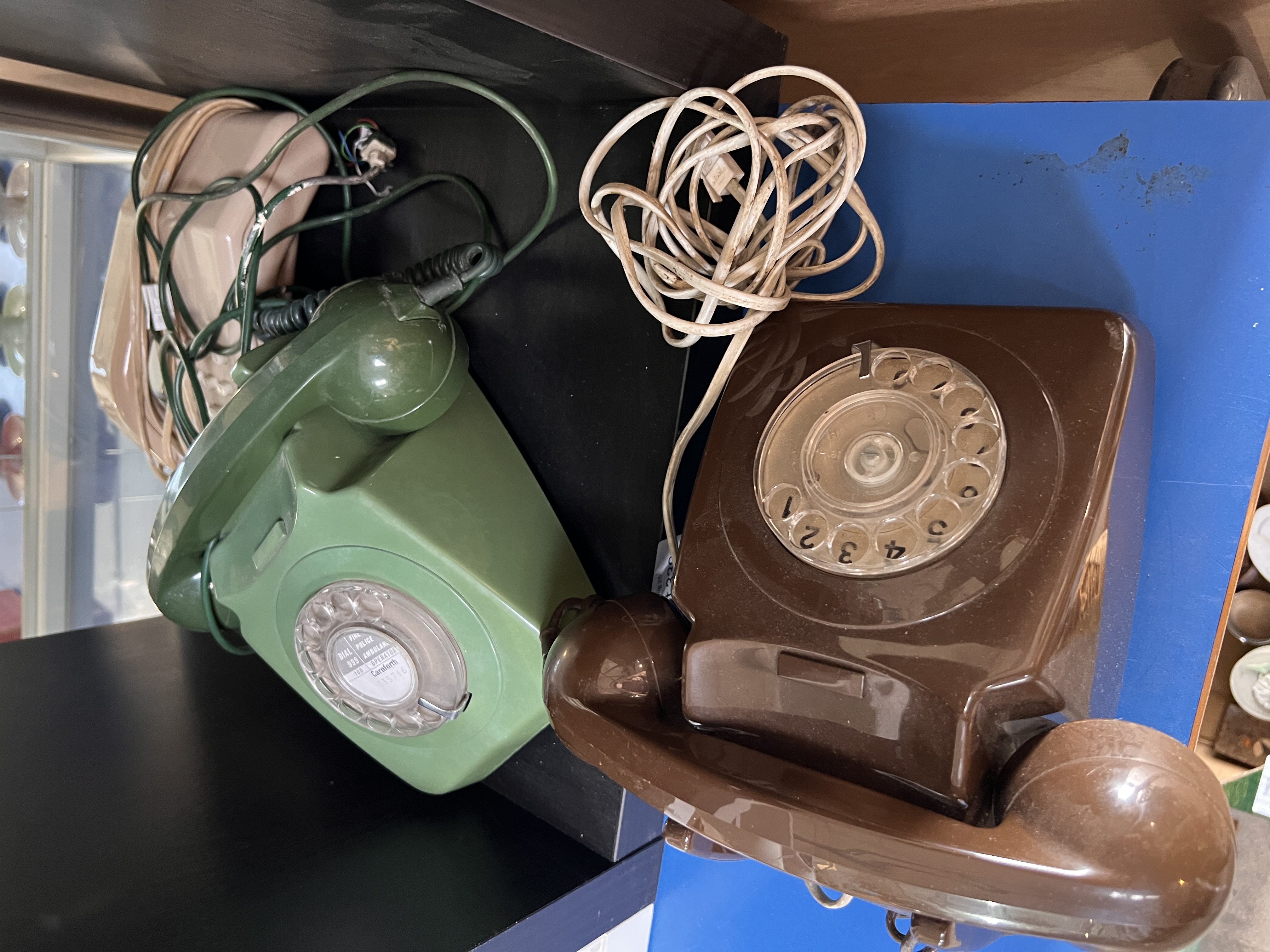 Three vintage telephone sets.