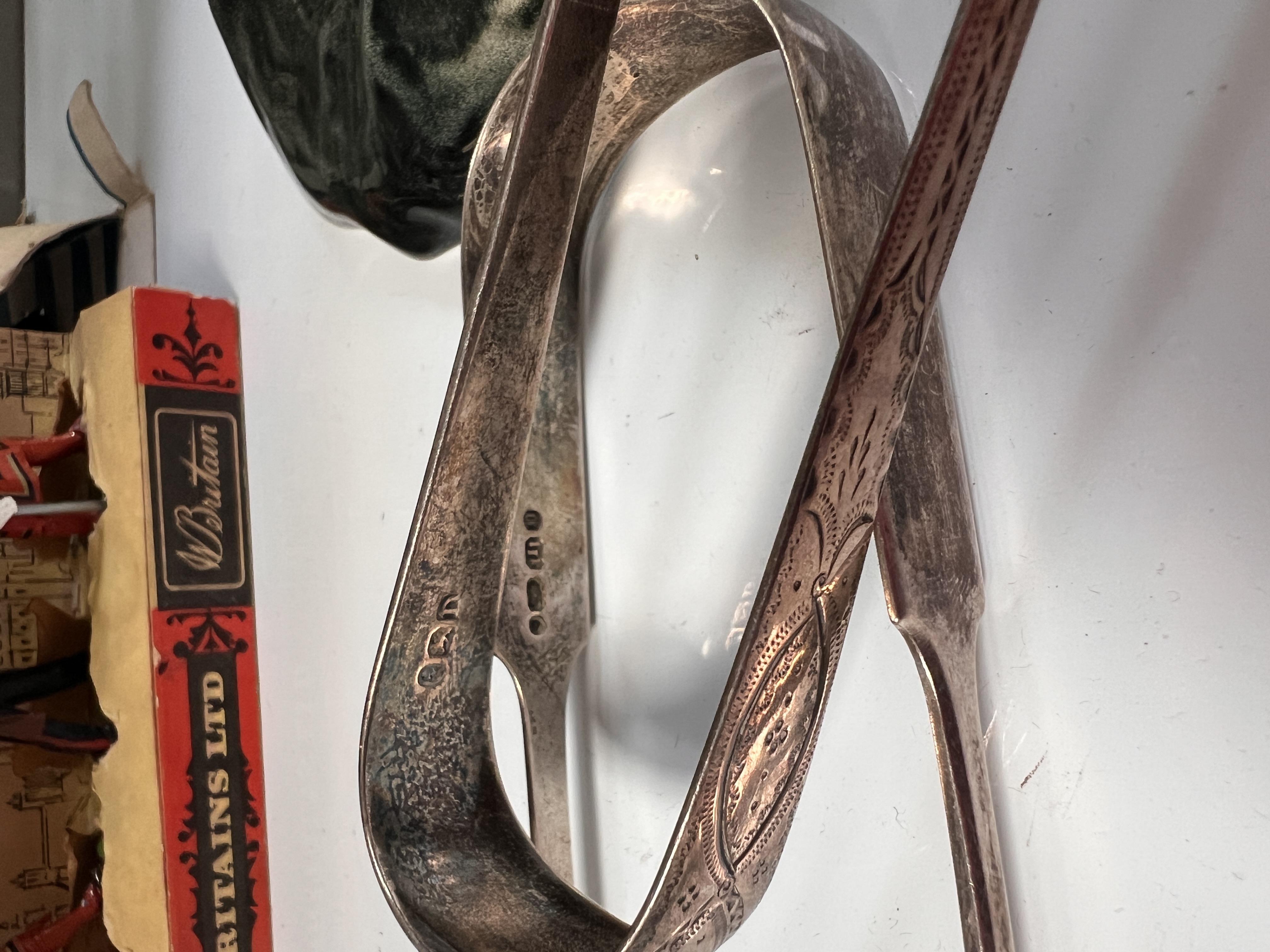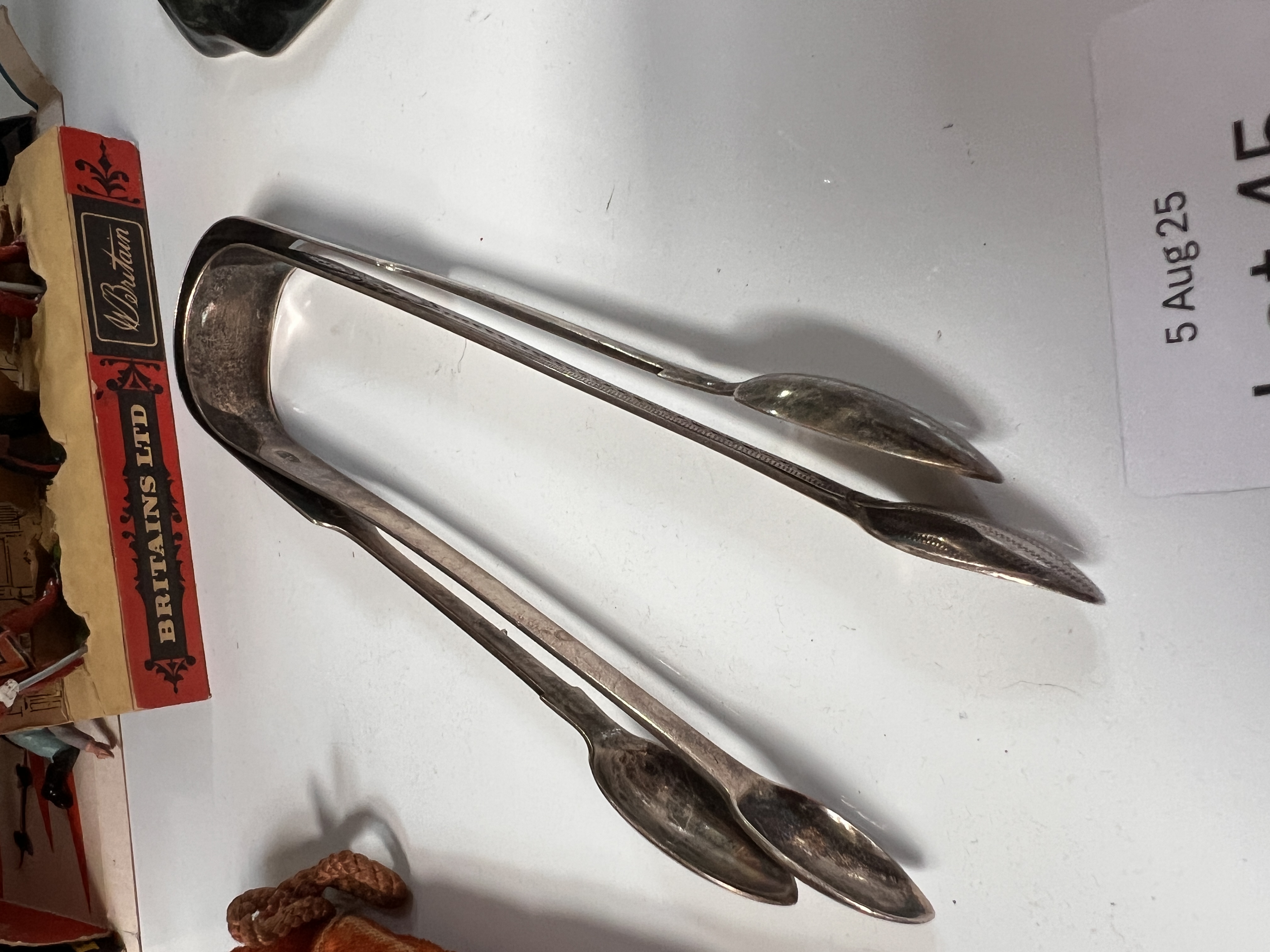 Two pairs of HM silver sugar nips, one plain form and one chase worked. 70g total.