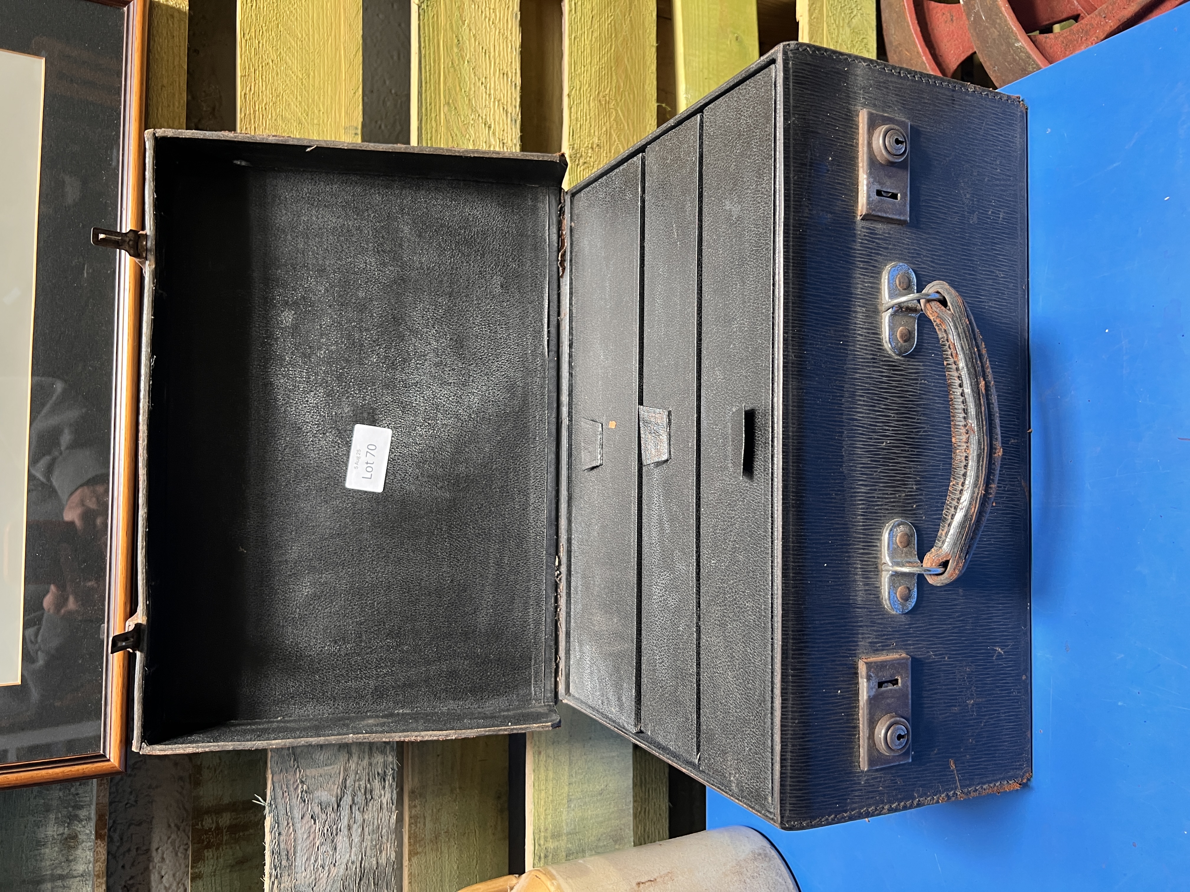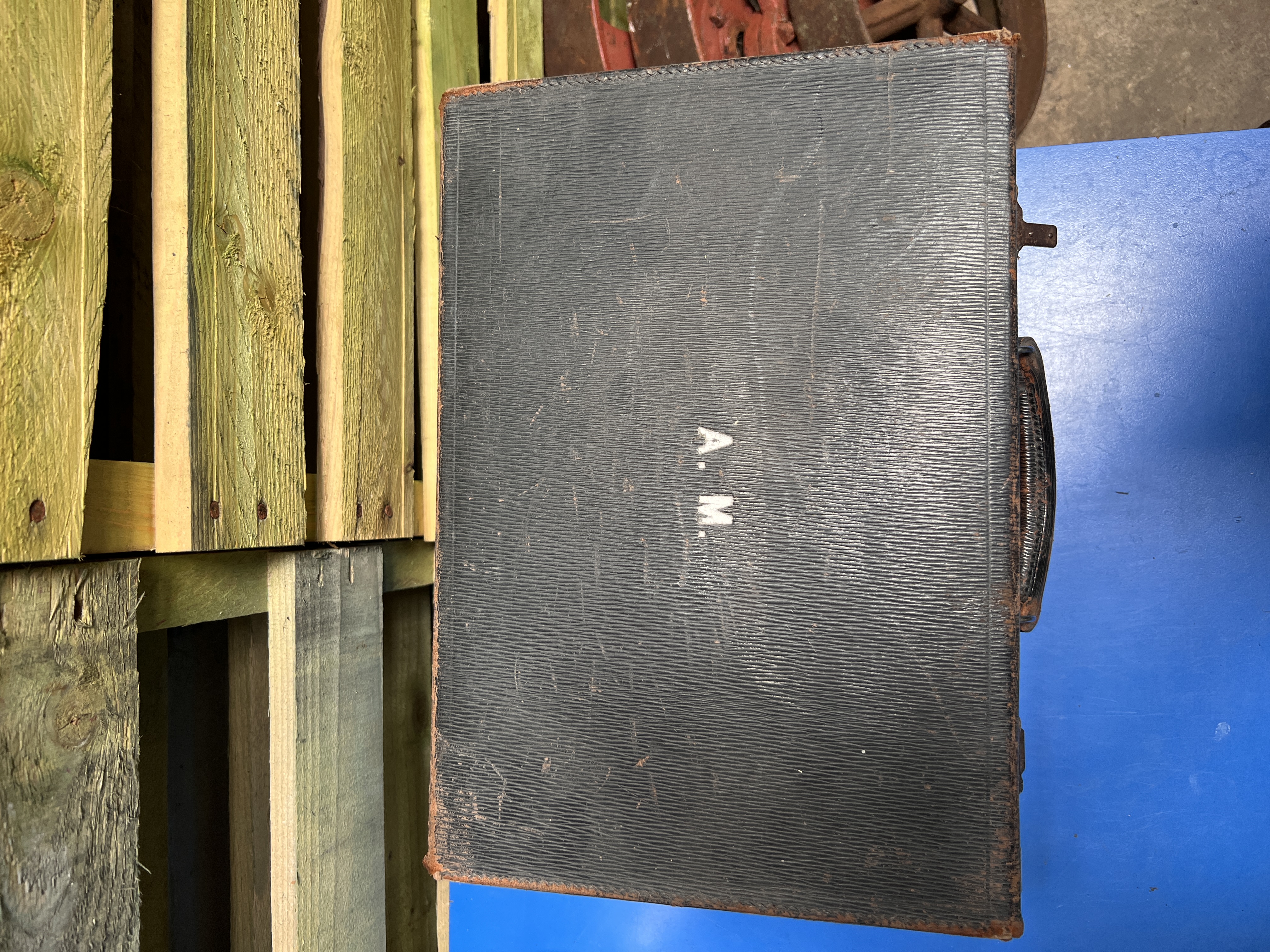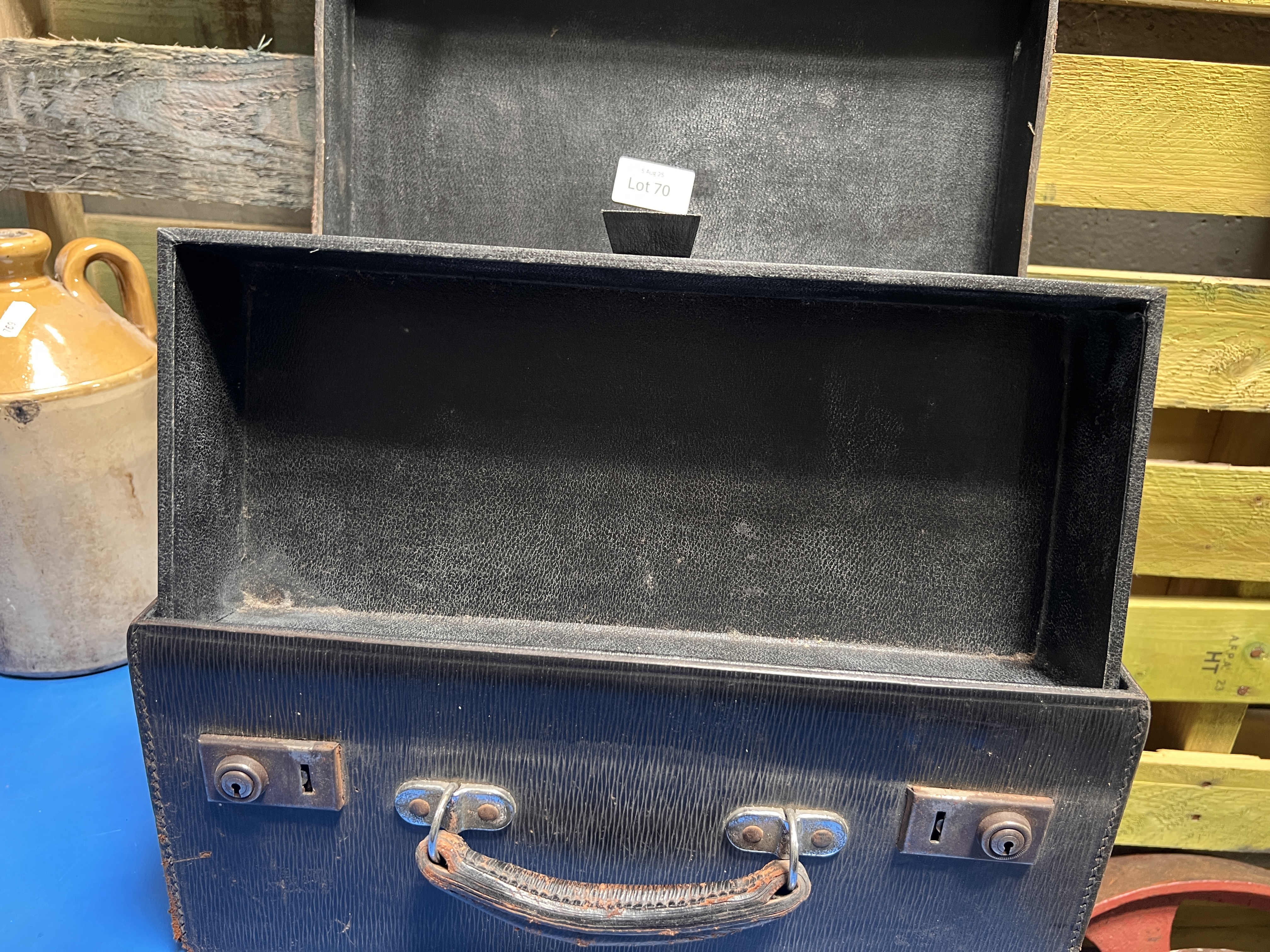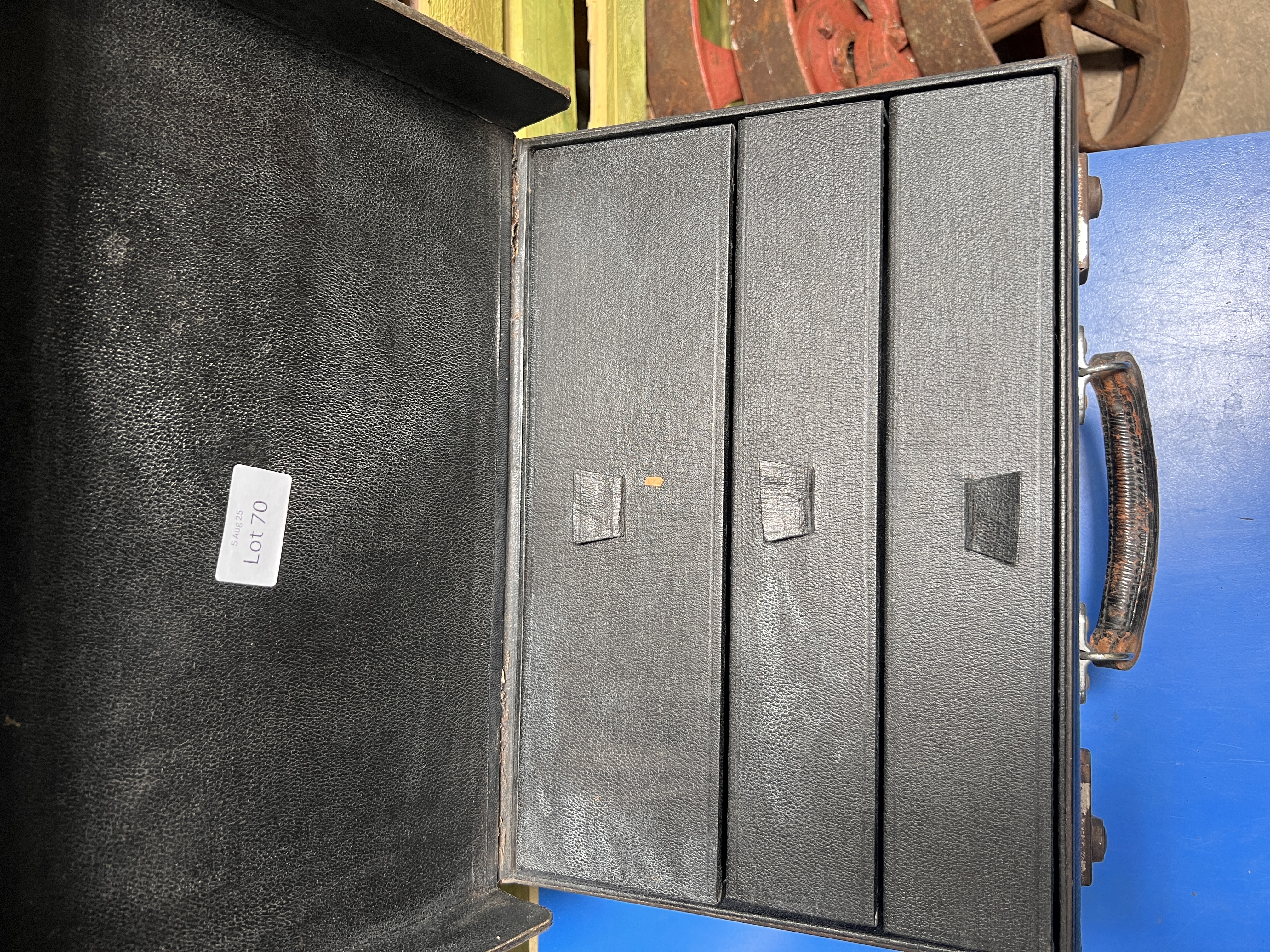 An early 20th century doctor’s-style compartmentalised leather bound trunk. 38cm wide.