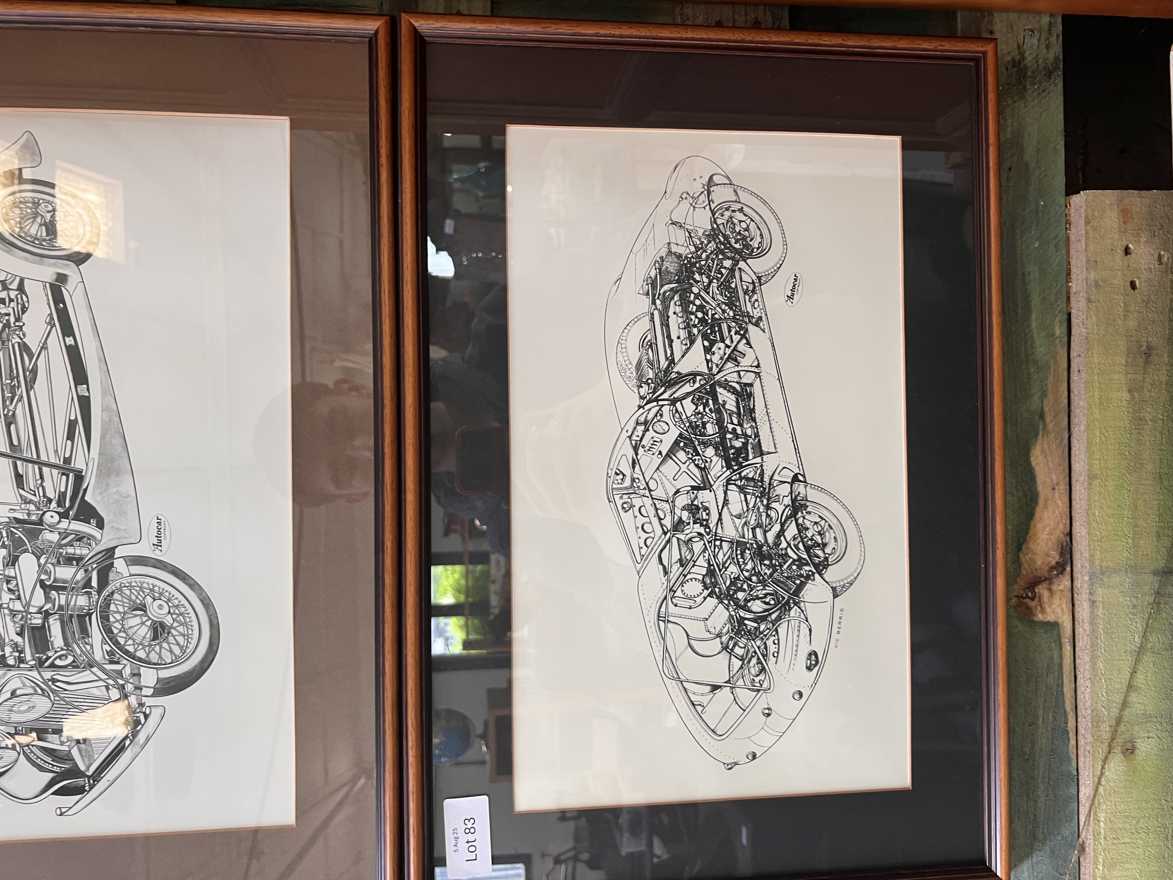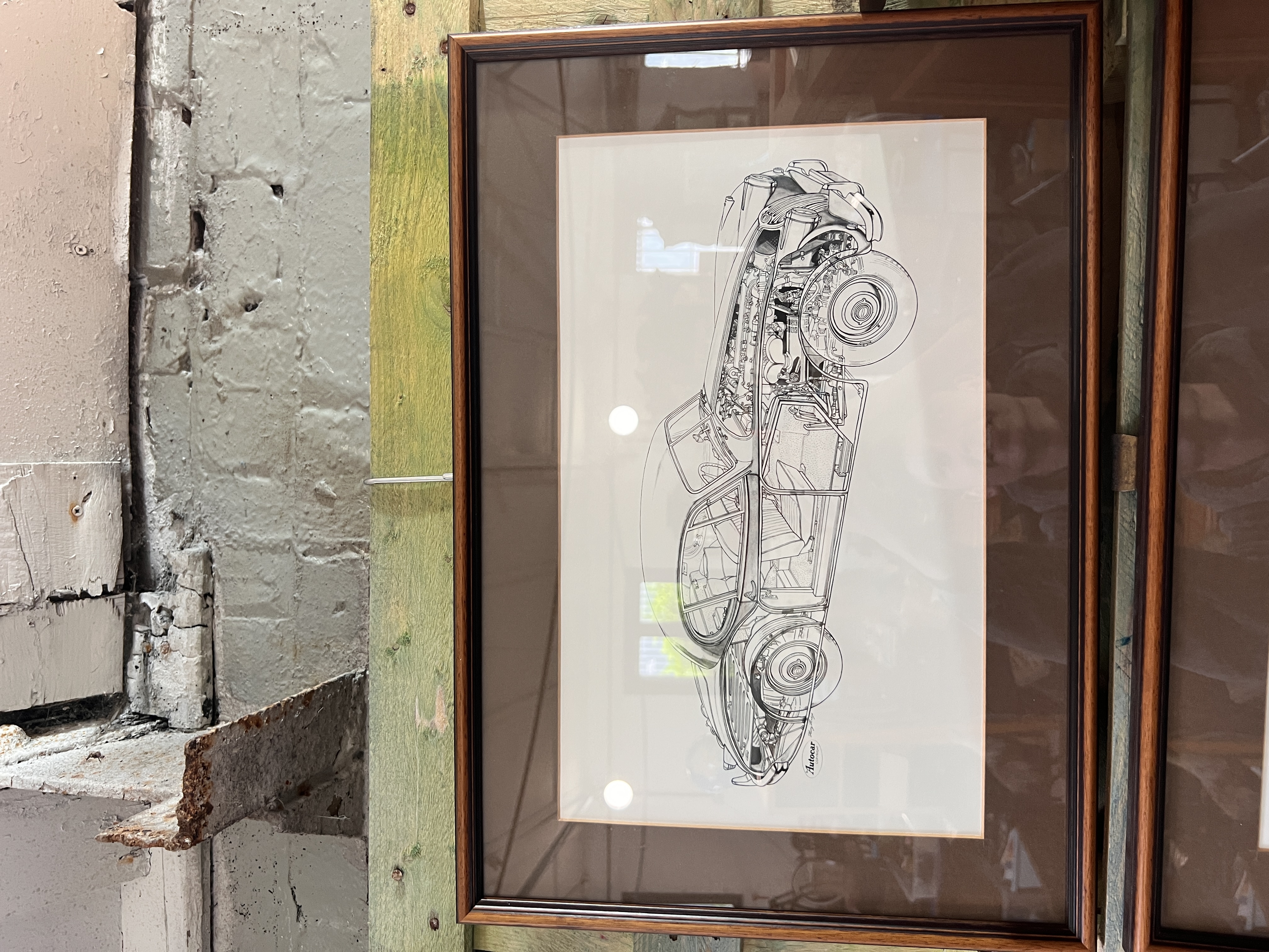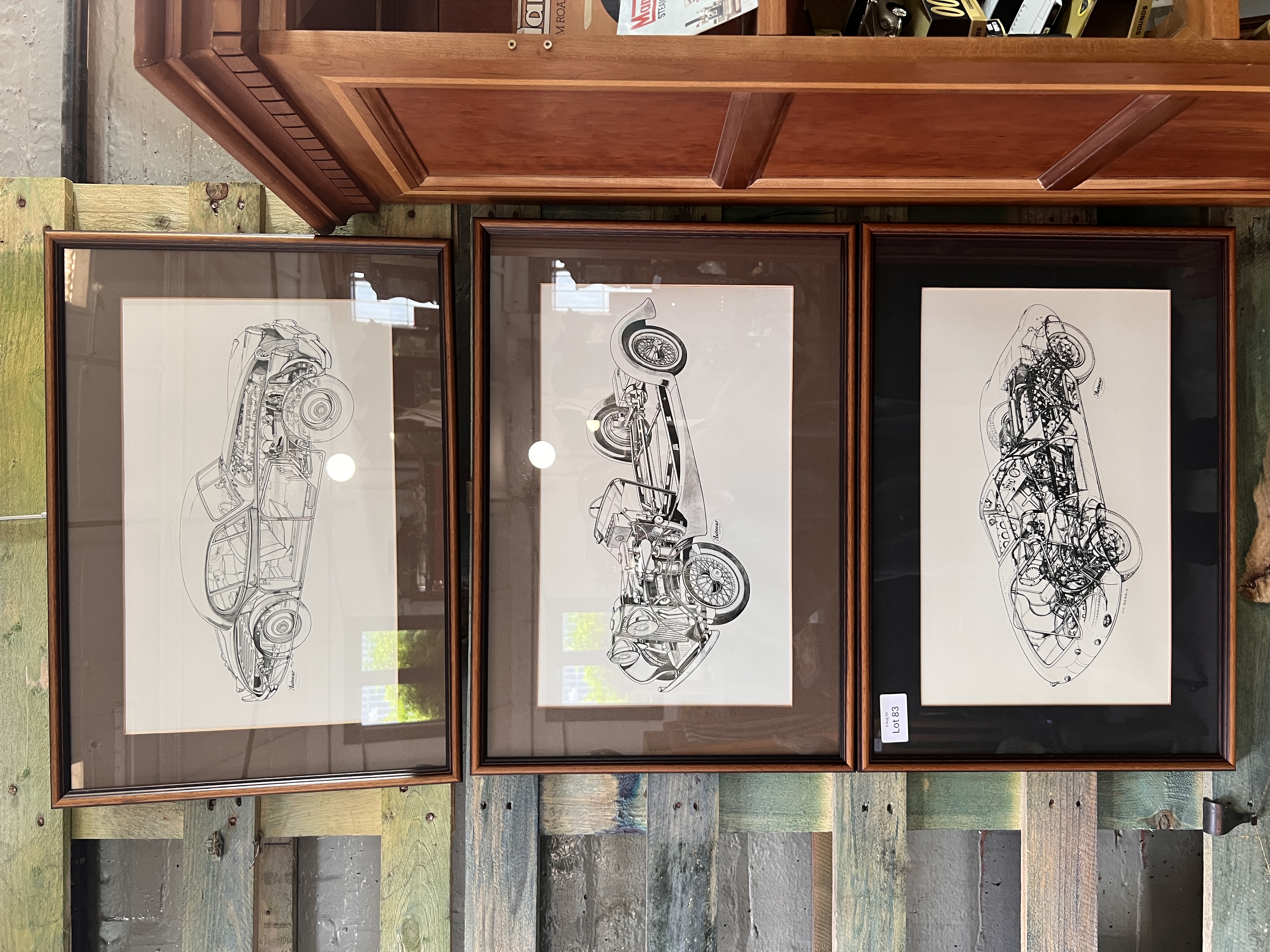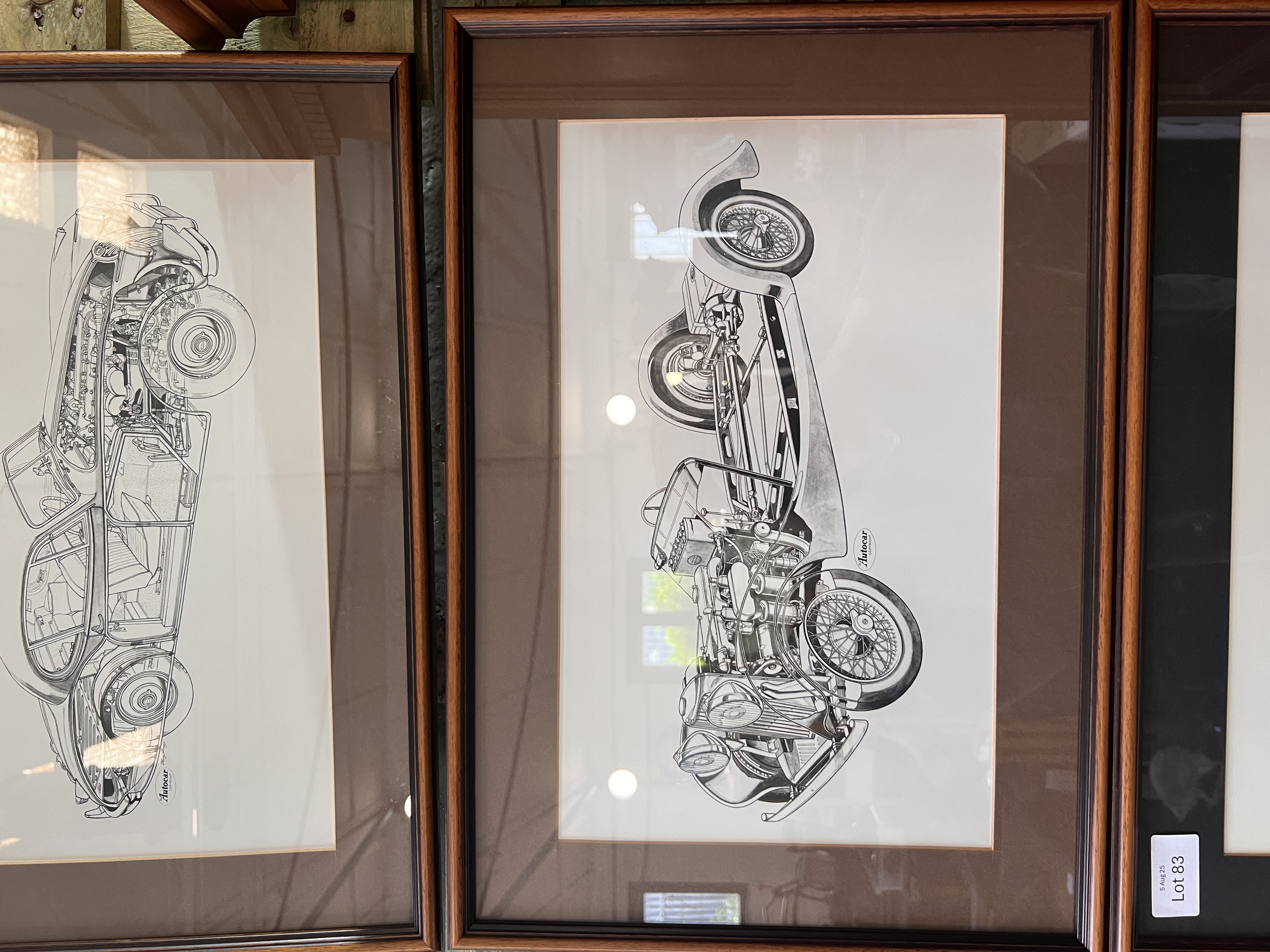A set of three vintage Autocar cut-away Jaguar car prints.
