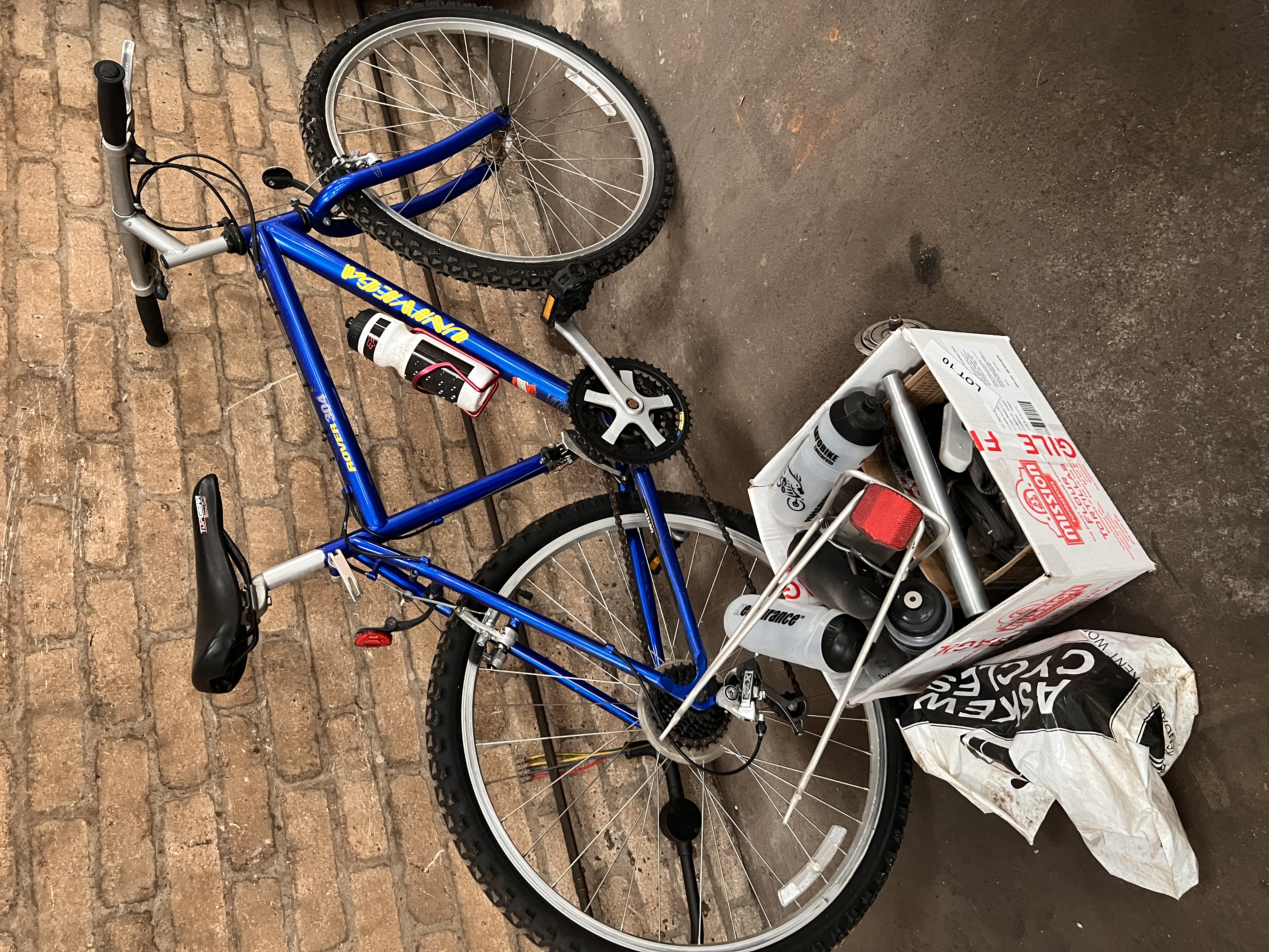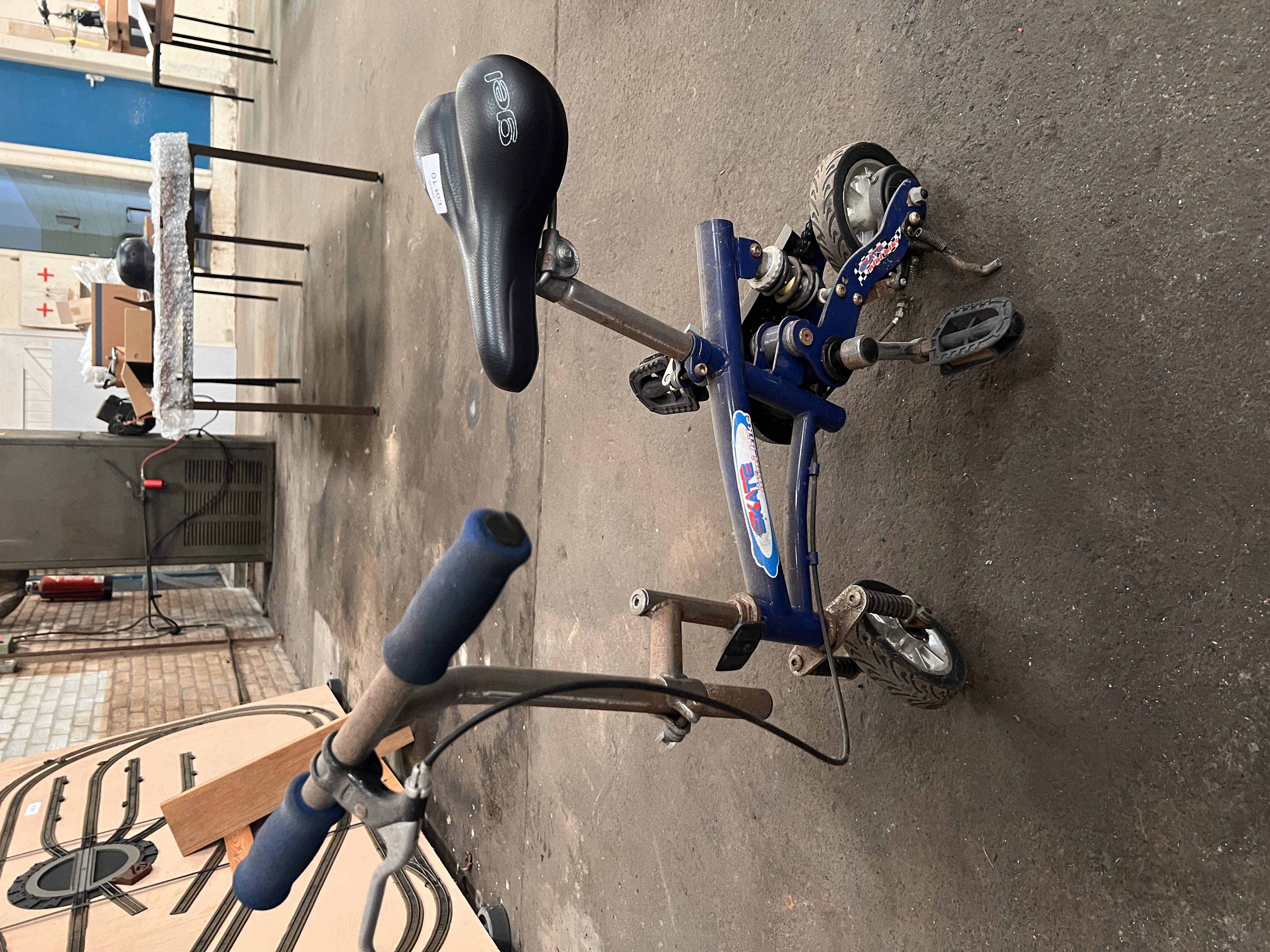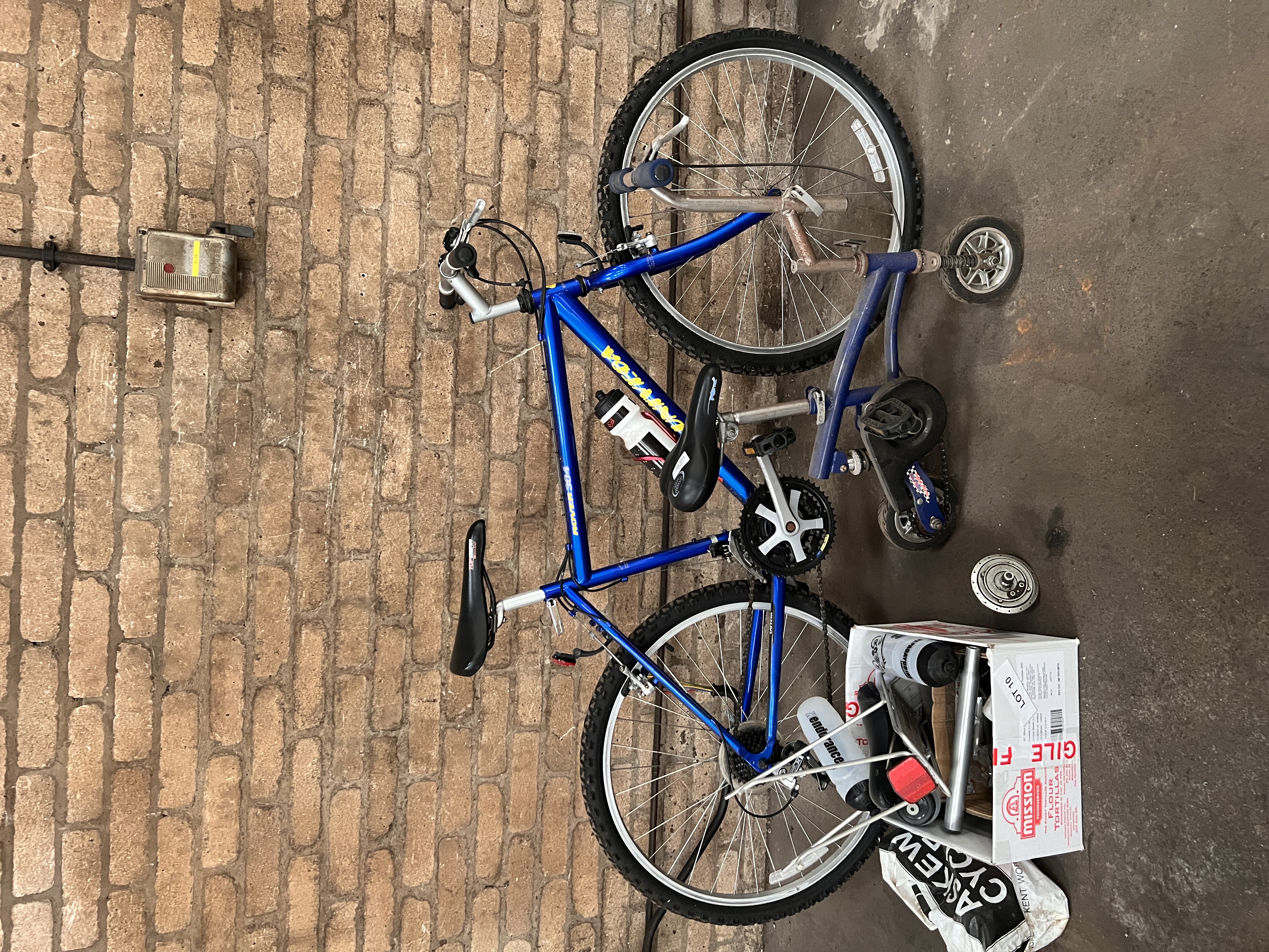 A mountain bike, skate or monkey bike and accessories.
