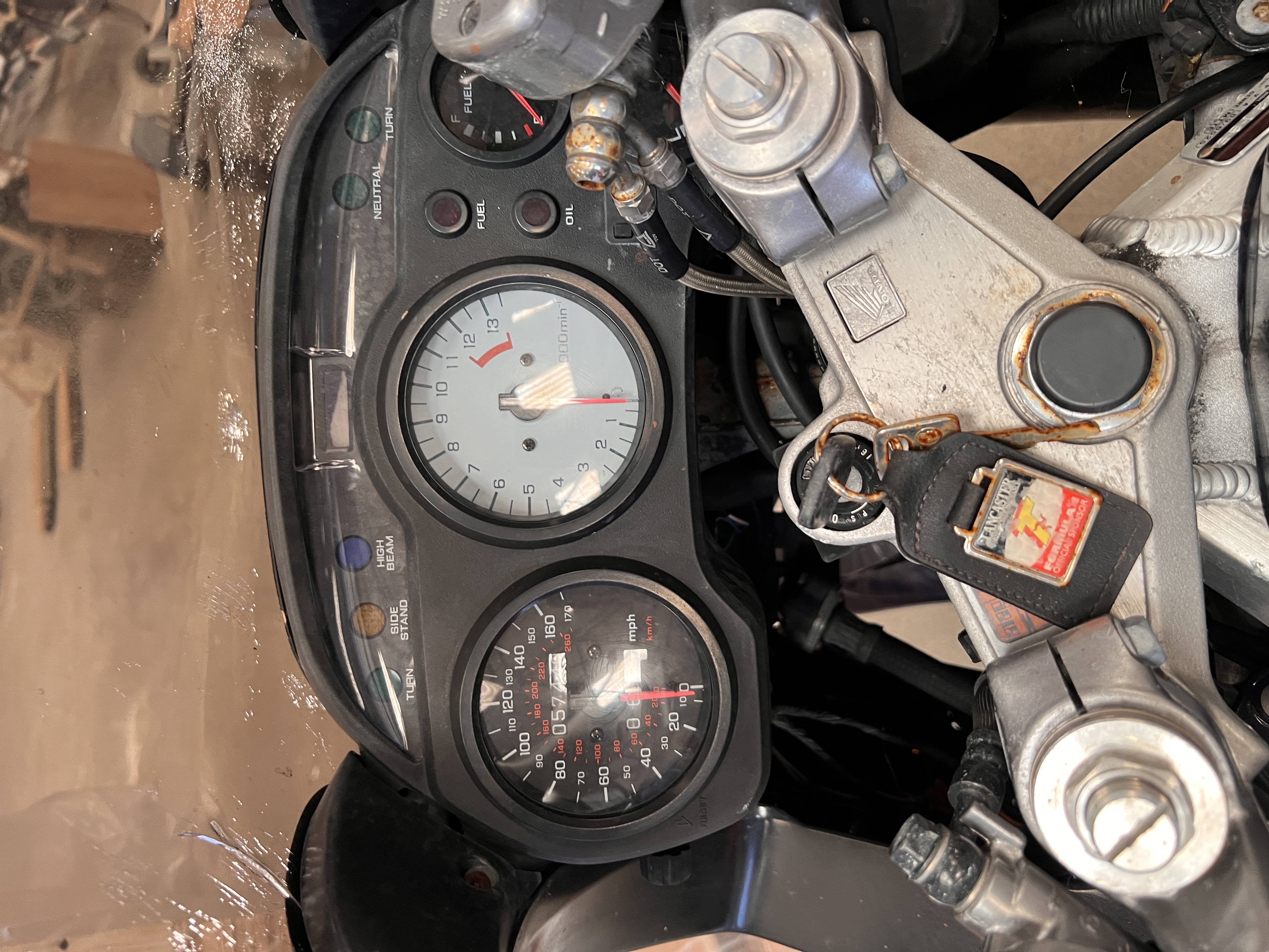 Honda VFR 750F V4 motorcycle – first registered 4/12/1996, MOT expired 7/8/2014, recorded mileage 53,700. Local deceased estate, Has been running recently.