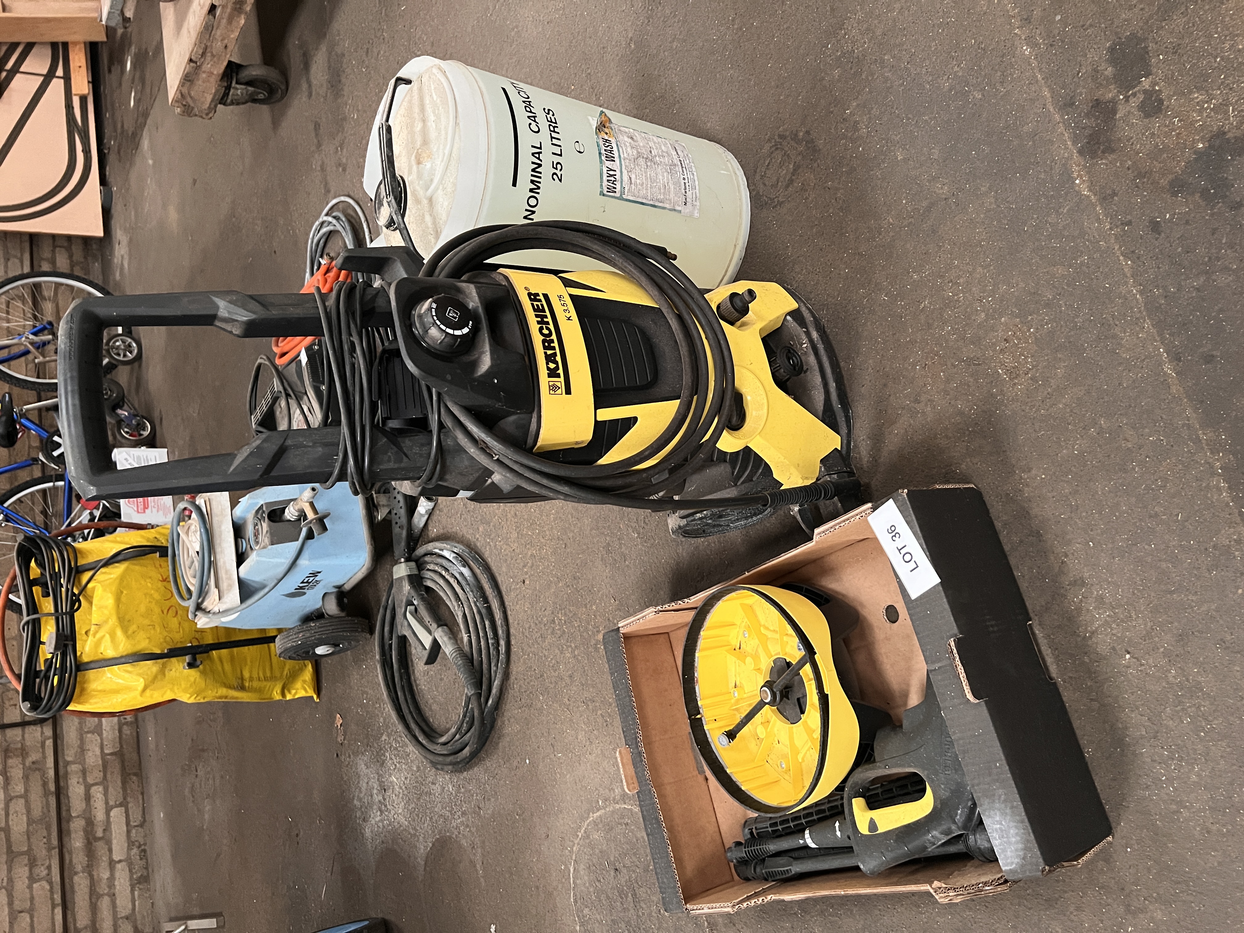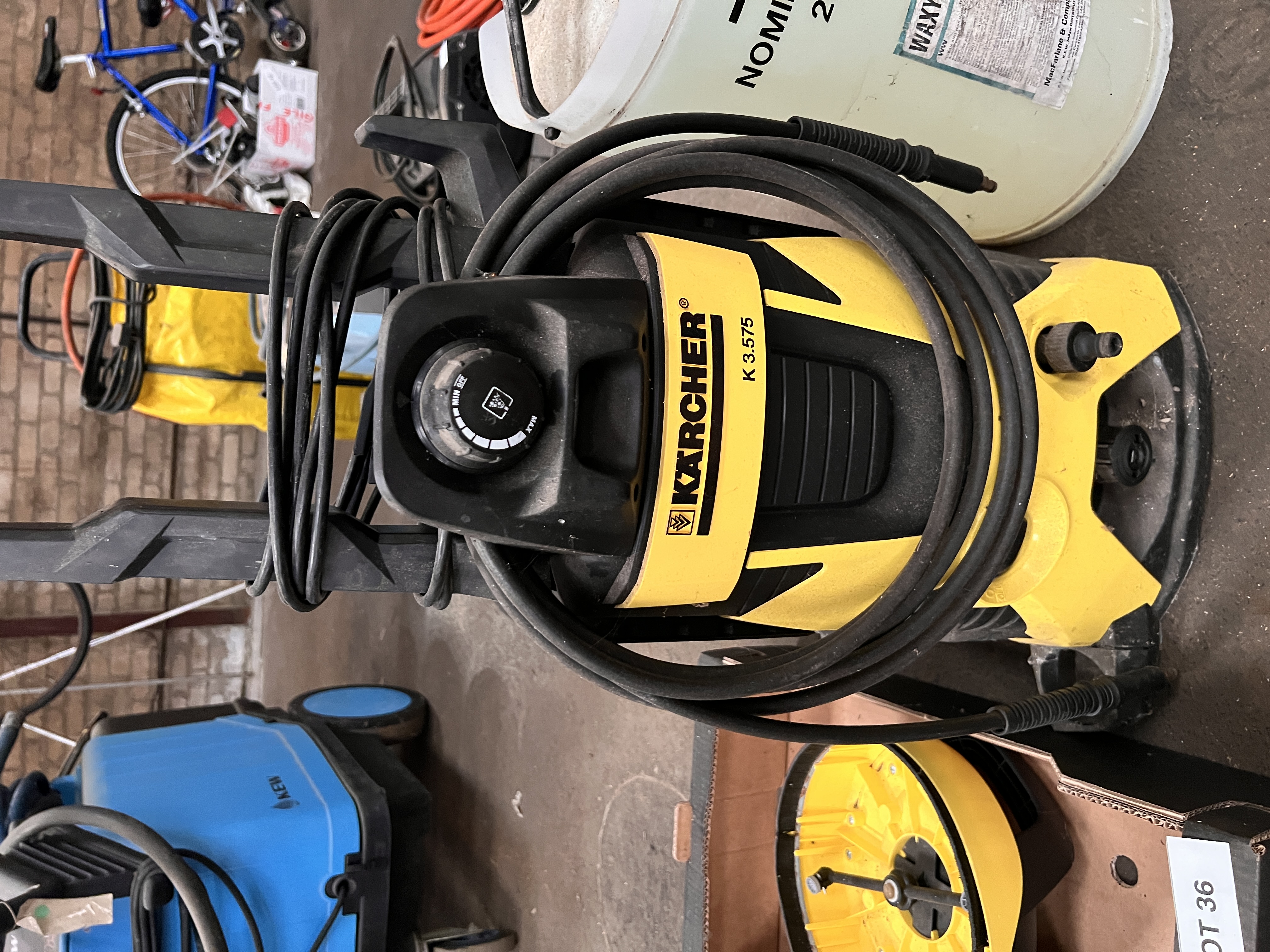 A Karcher K3.575 cold water pressure washer + patio kit and chemicals