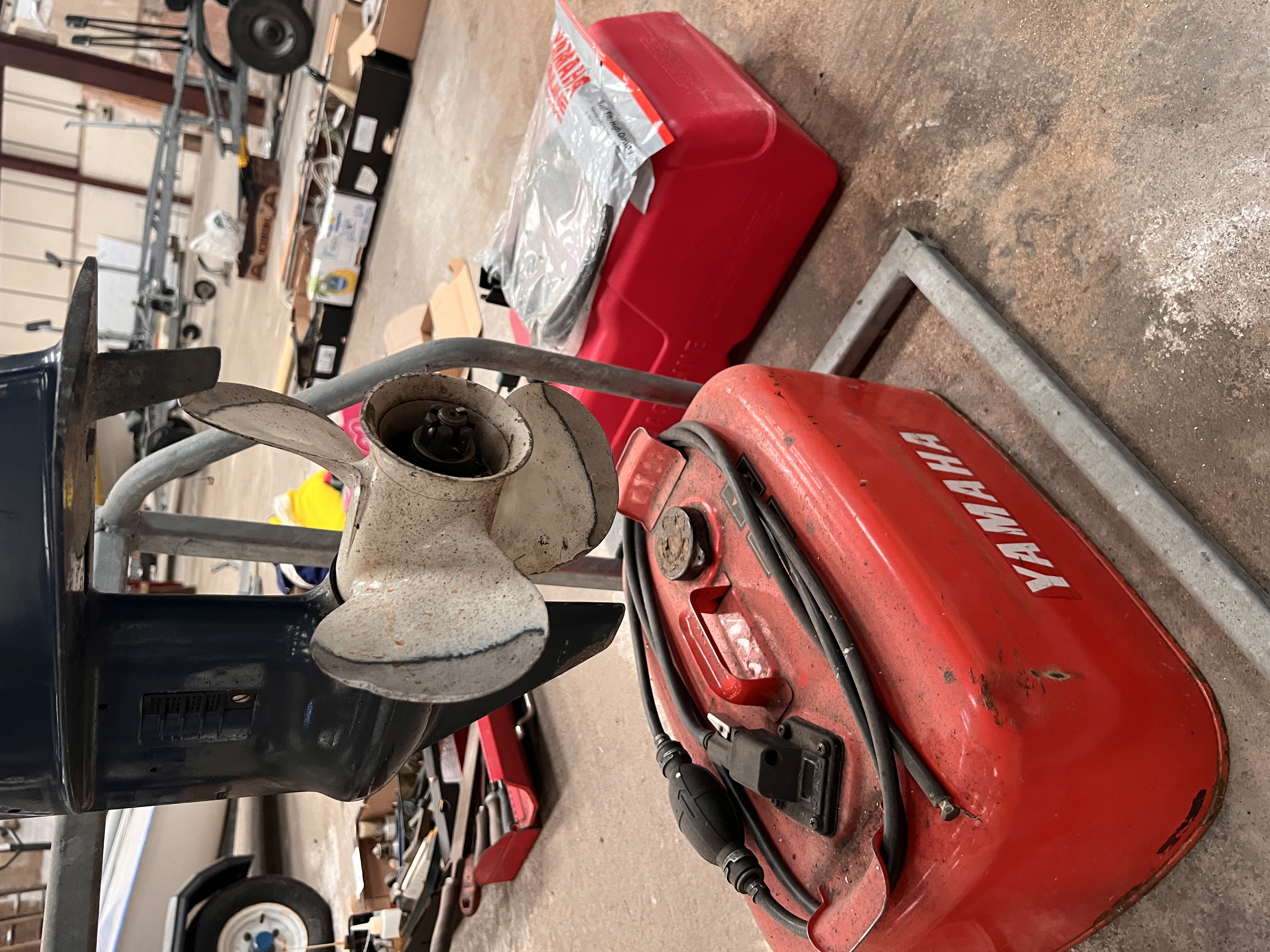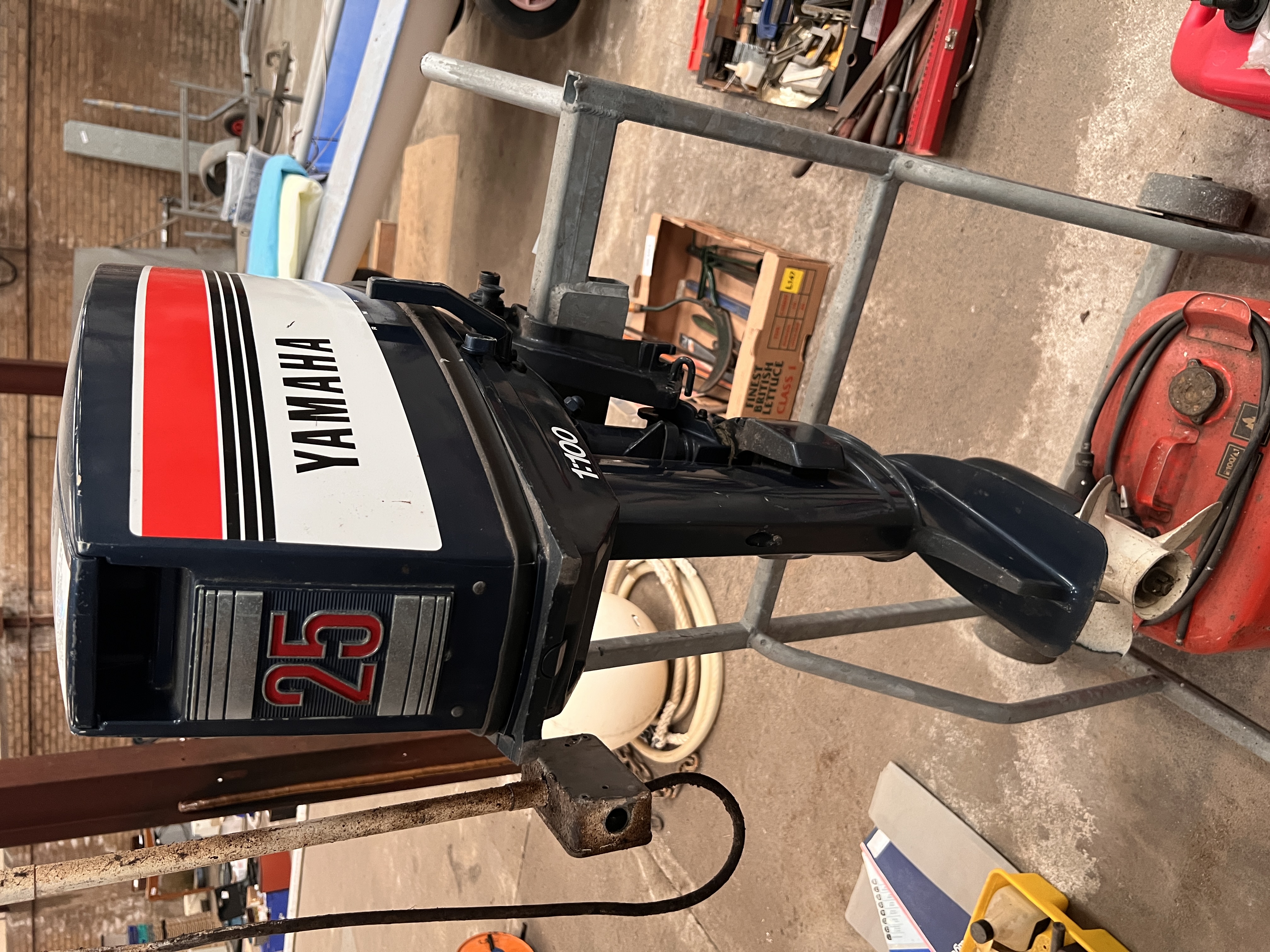 A Yamaha 25BHP 2 stroke outboard 1980 standard shaft + tank and stand