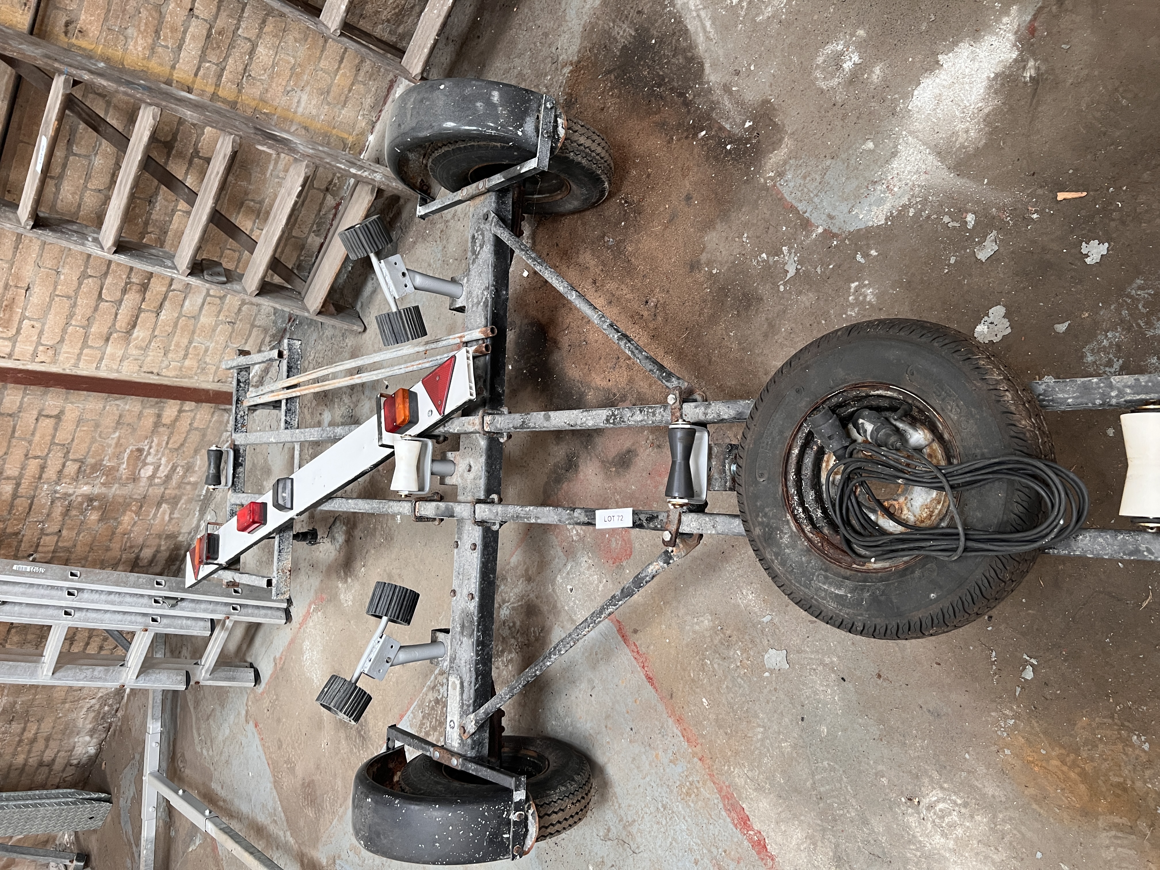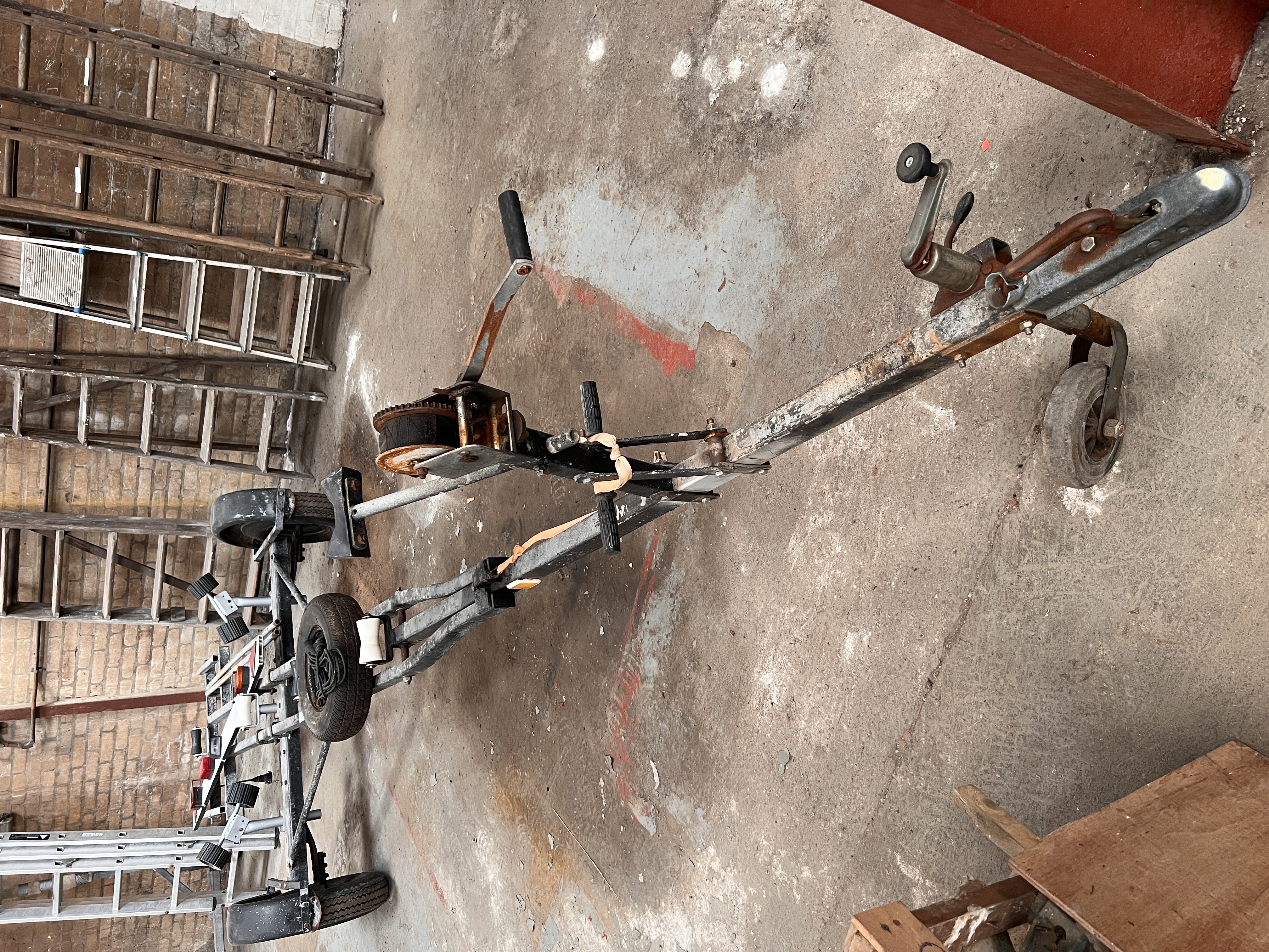 Snipe boat trailer transverse spring suspension, spare wheel and trailer board