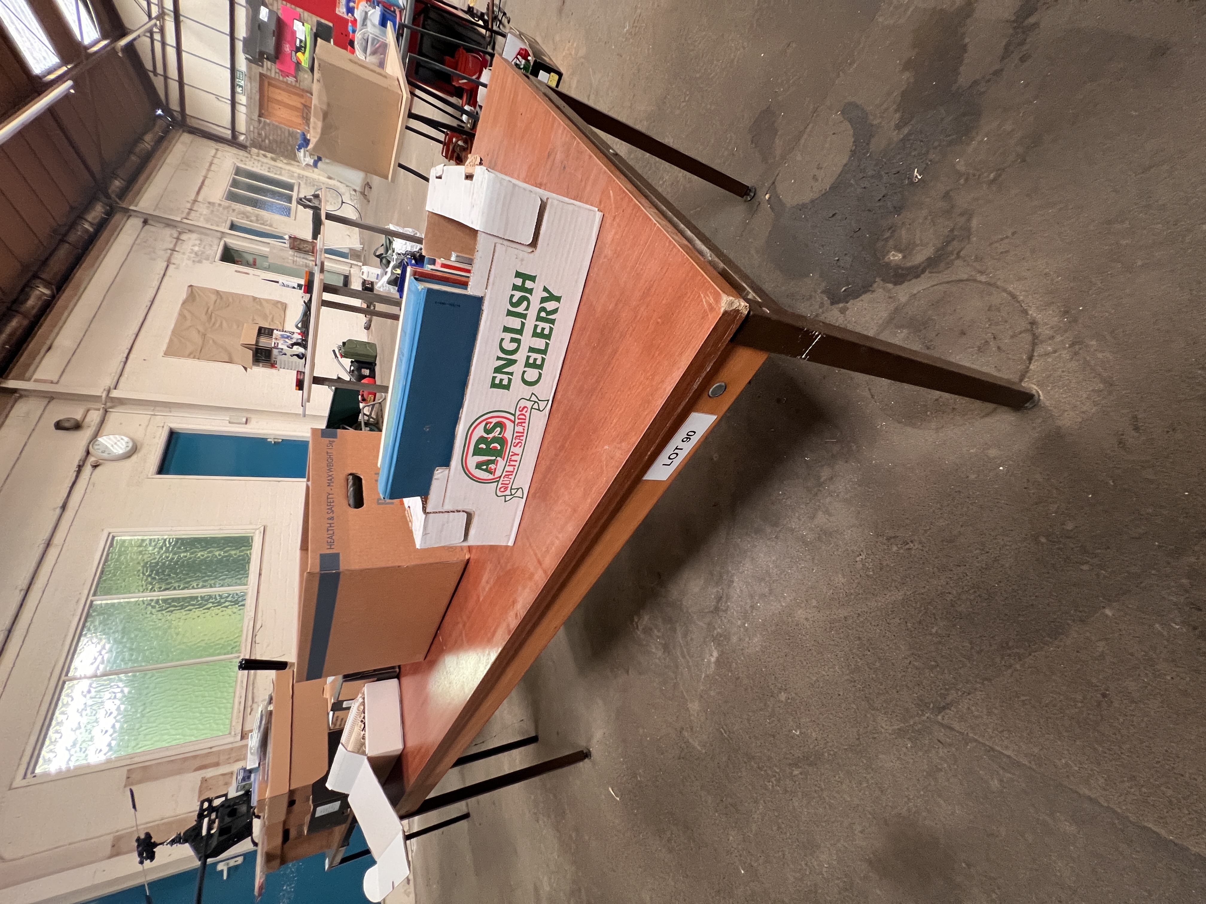 A steel-legged table 72 inch L x 36 inch W x 28.5 inch H