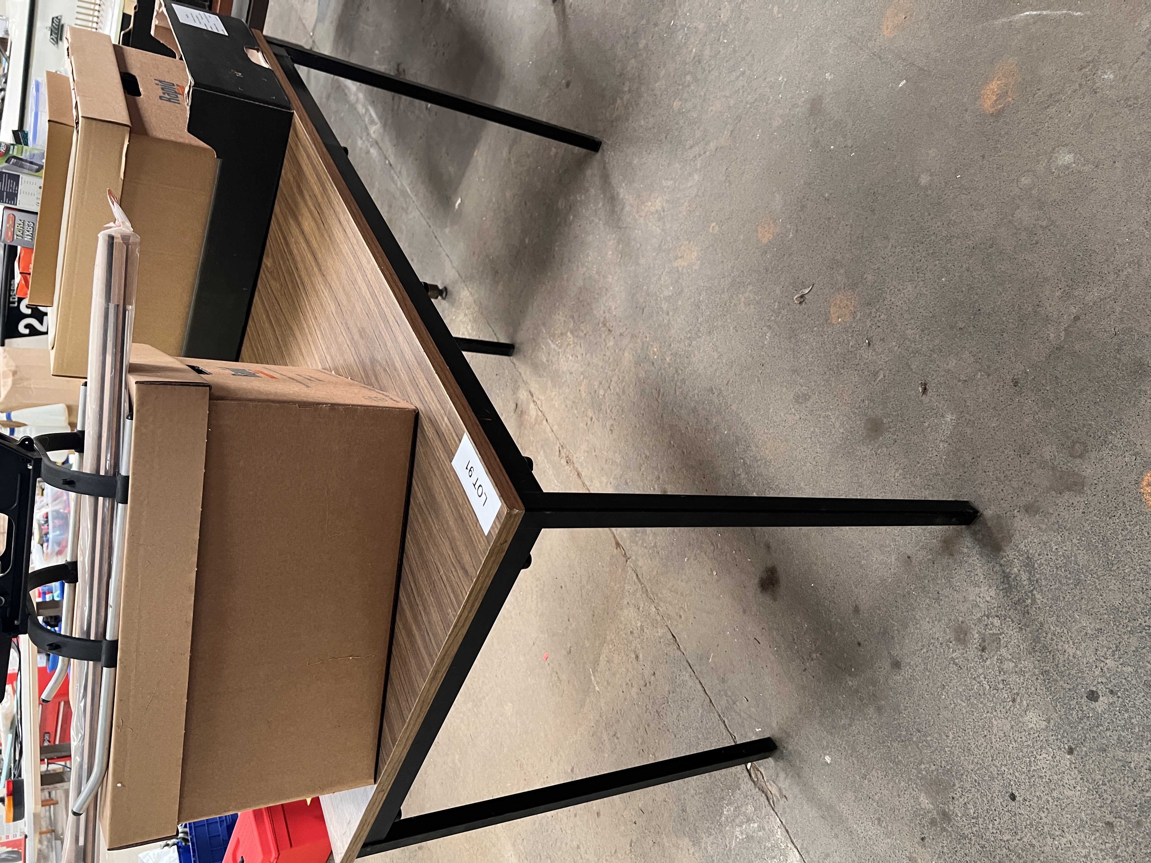 A steel-legged table 48 inch L x 24 ich W x 29.5 inch H