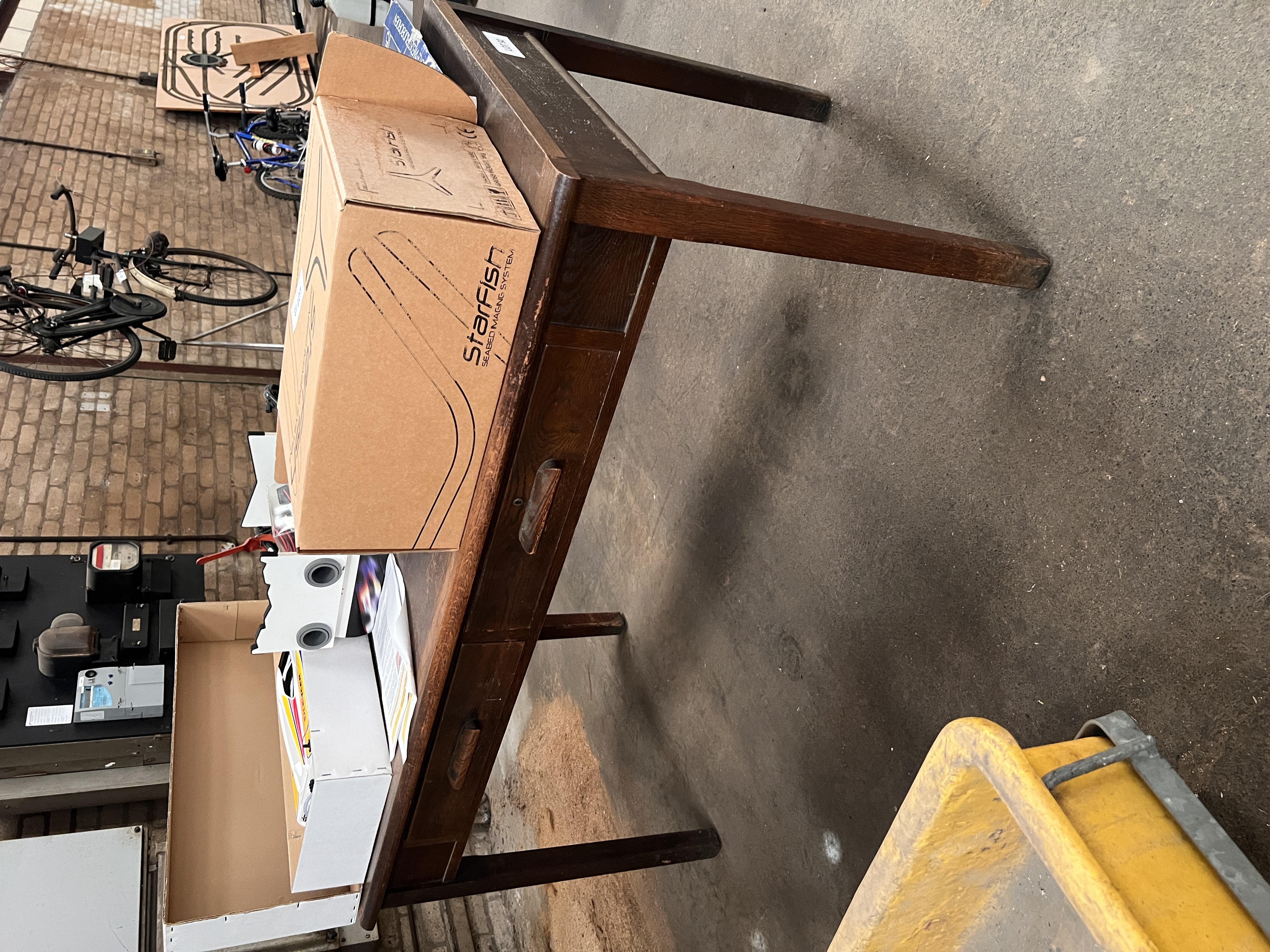 Lot 92: Wooden home office tables, double drawer 57 inch...