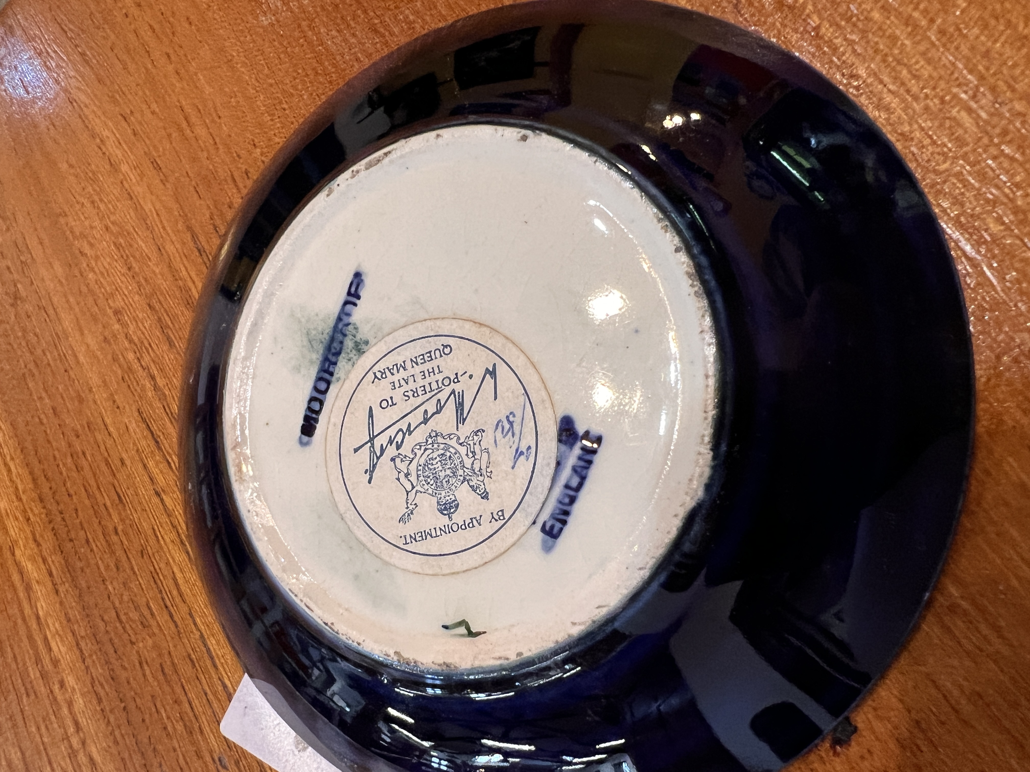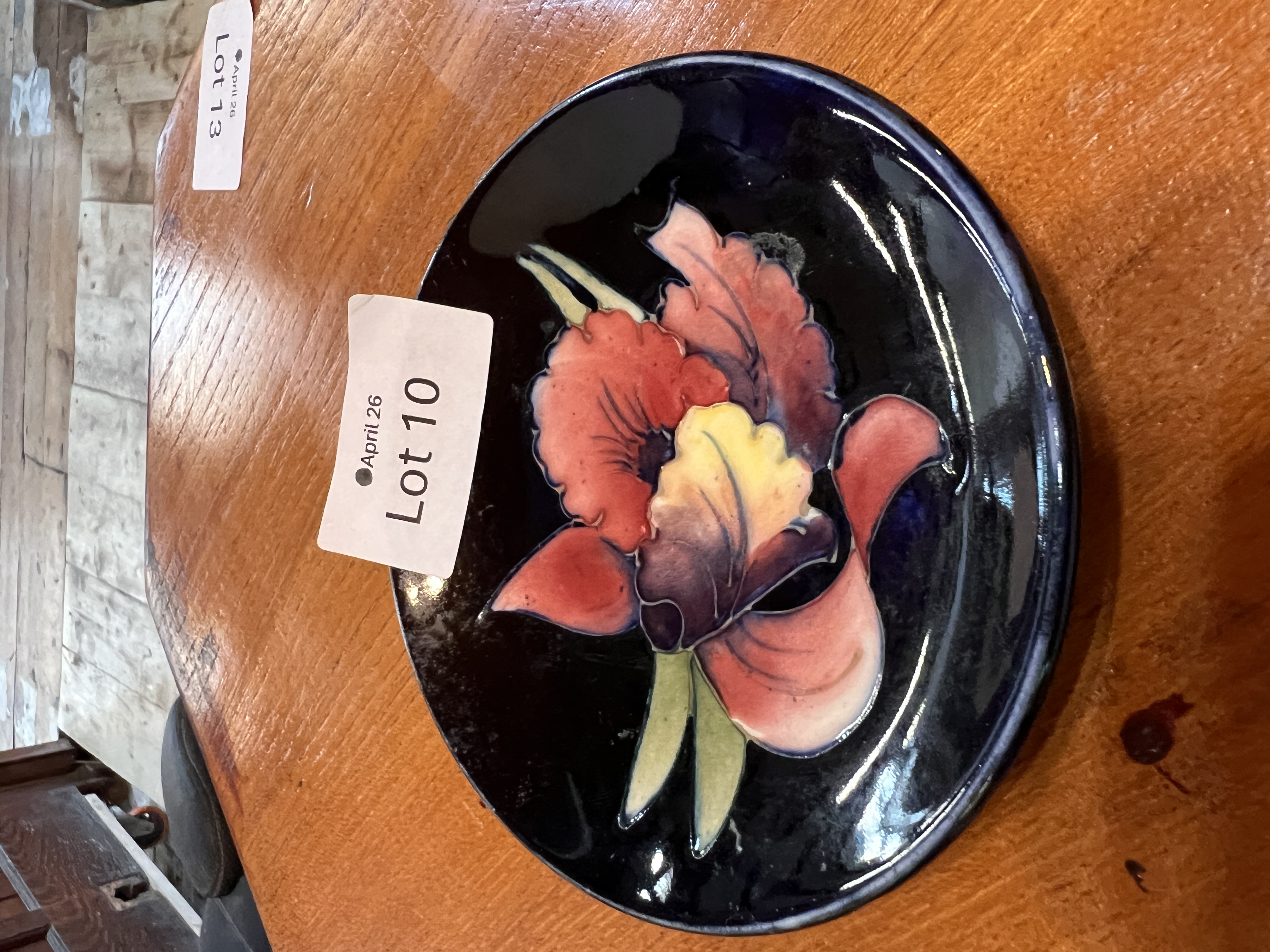 An early 20th century Moorcroft pin dish having deep blue ground decorated with anemone.