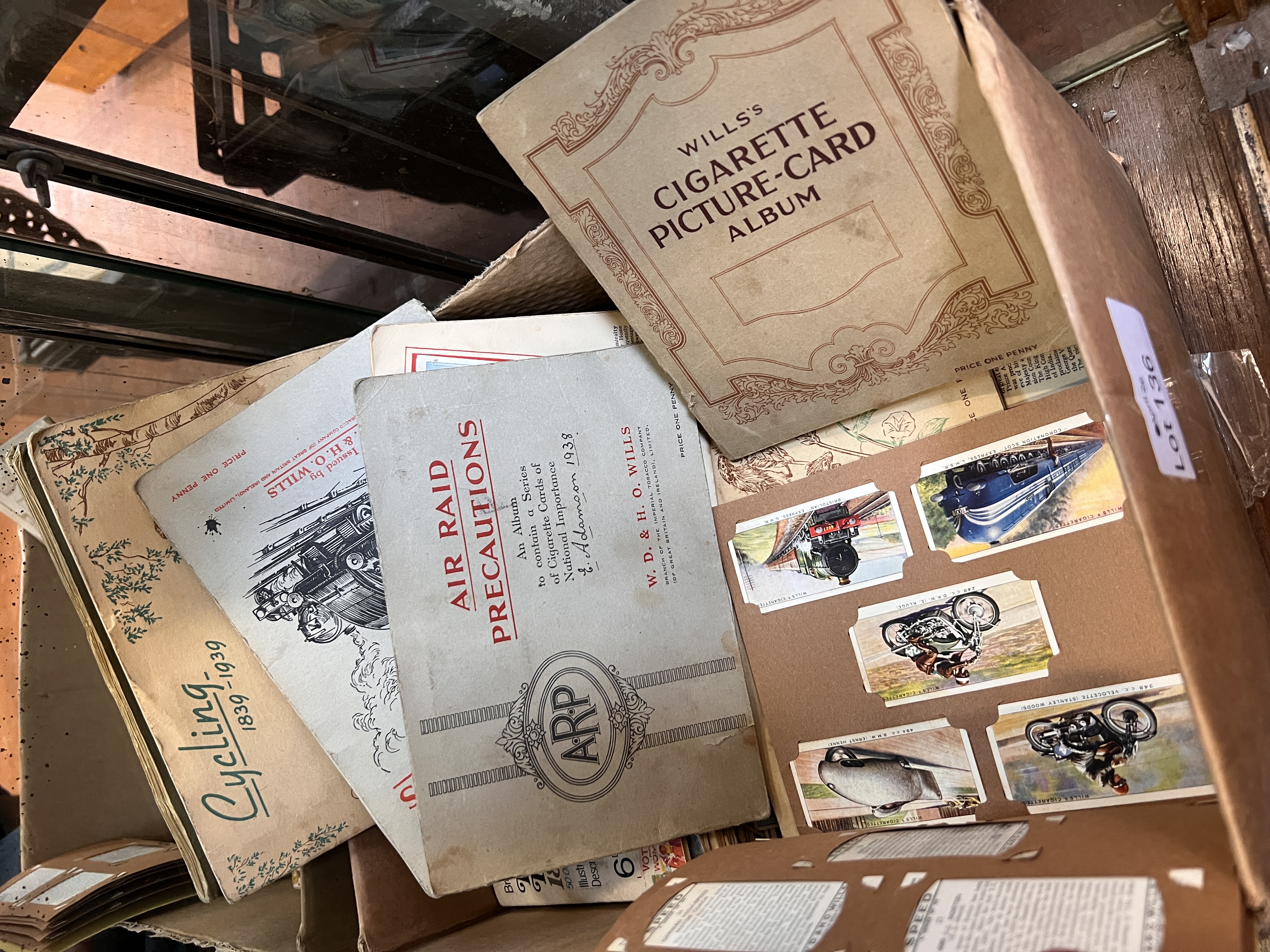 A selection of vintage cigarette and tea cards including sporting, military and transportation interest